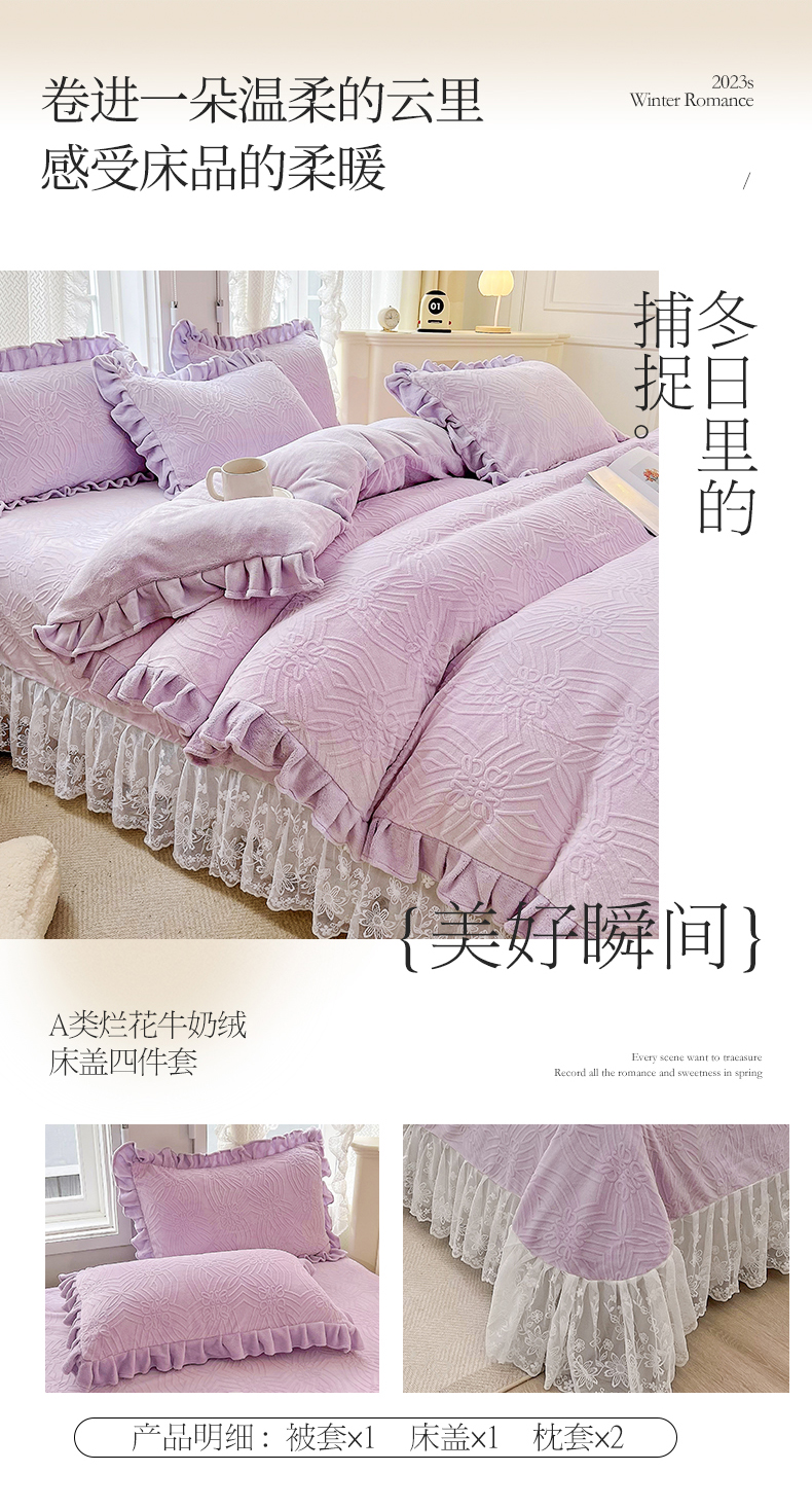 商品名称:宜凡 2023新款烂花牛奶绒床盖四件套 蝶语-魅紫色
