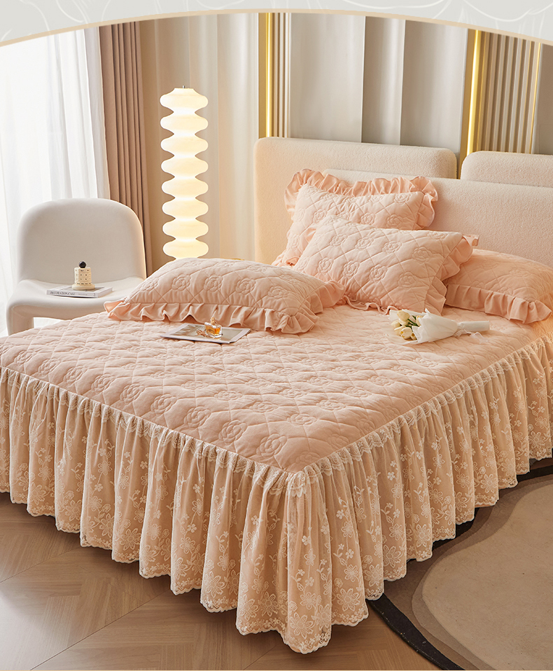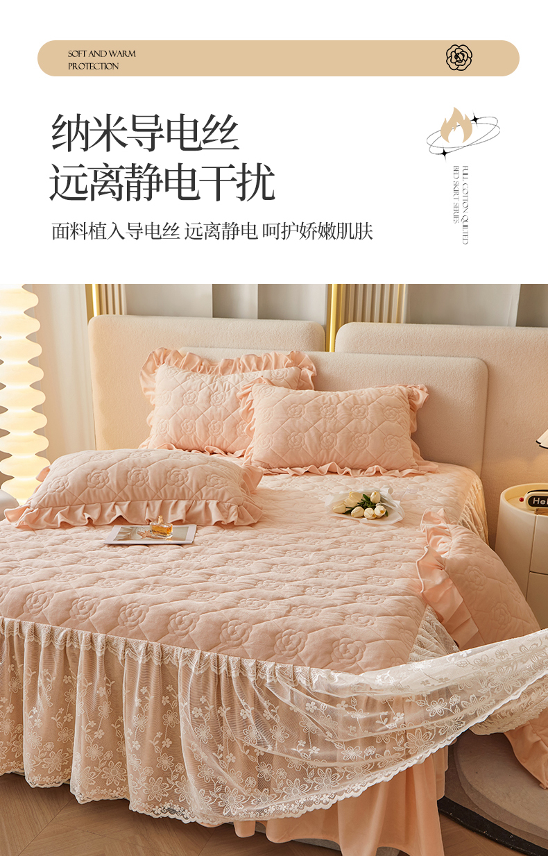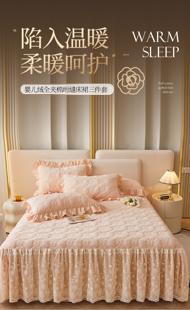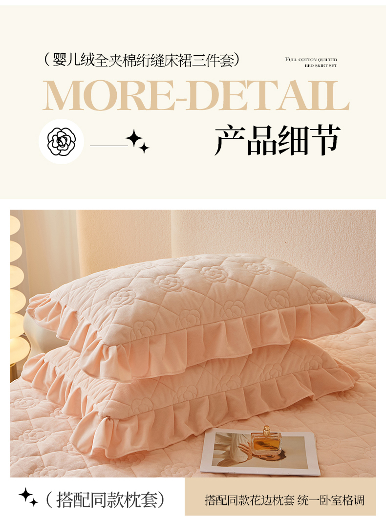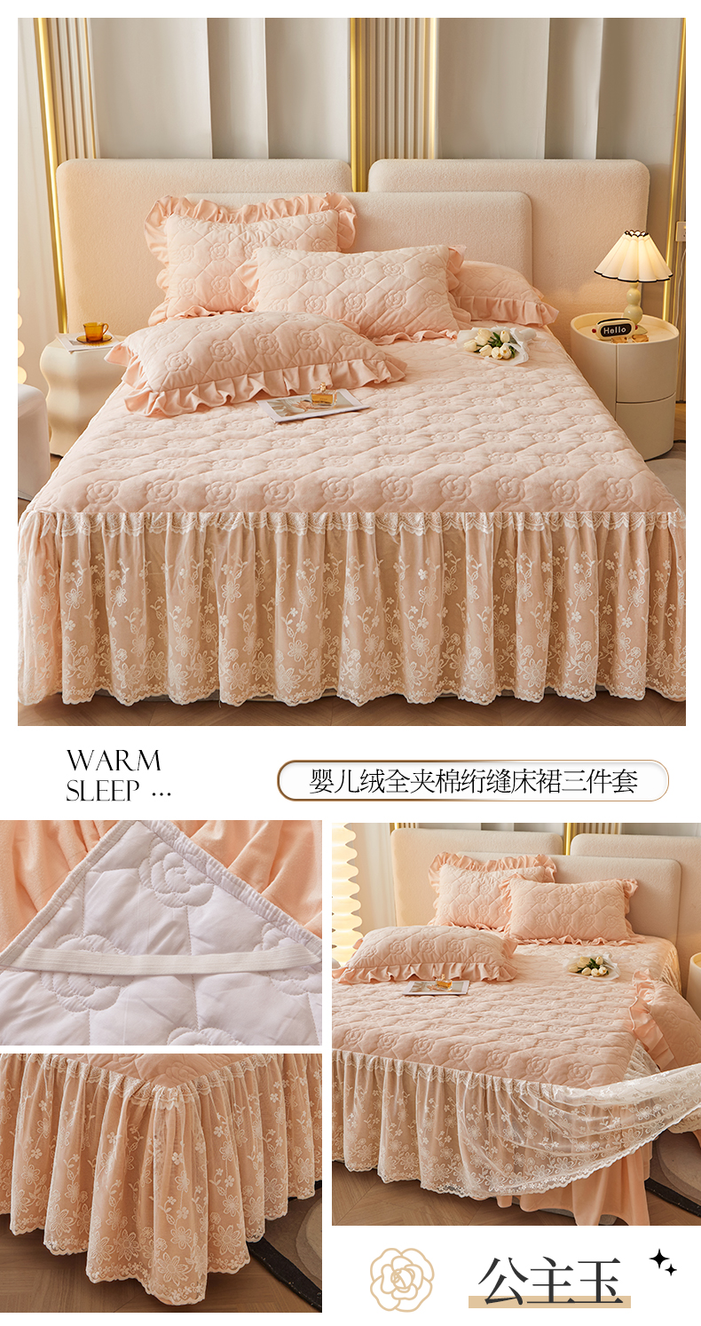 宜凡2023新款婴儿绒全夹棉床裙三件套 公主玉