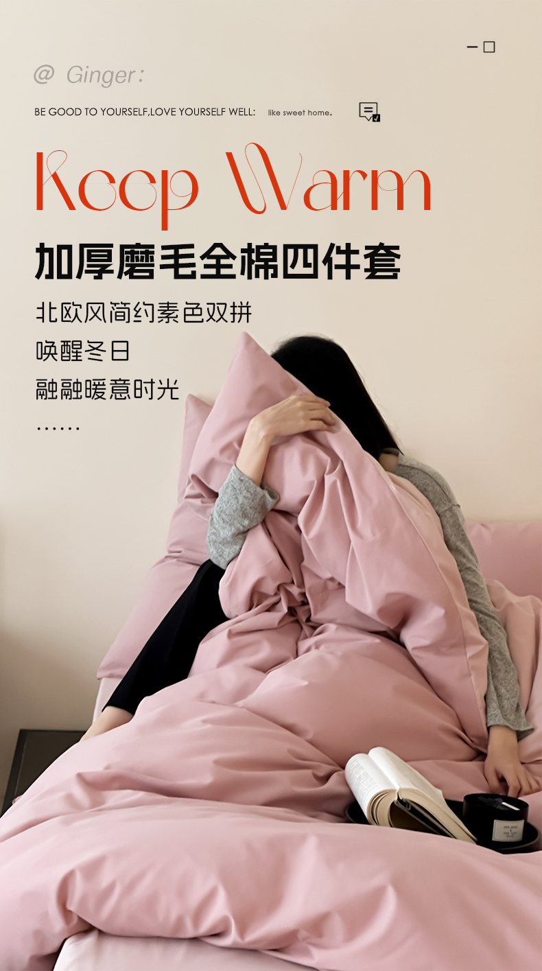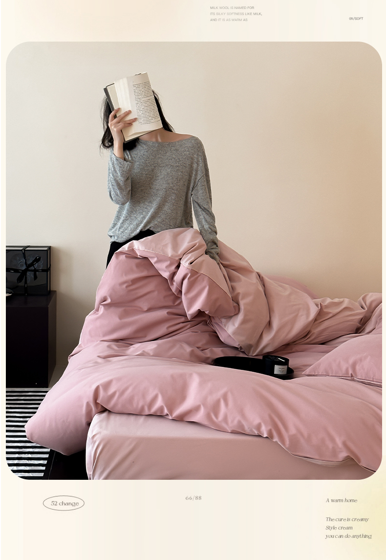 当前位置: 91家纺网 > 商品网购 > 床品套件 > 四件套 > 普通磨毛四件套 > 时光里 2023北欧风简约纯色双拼60s加厚磨毛全棉四件套 黛安娜粉拼豆沙