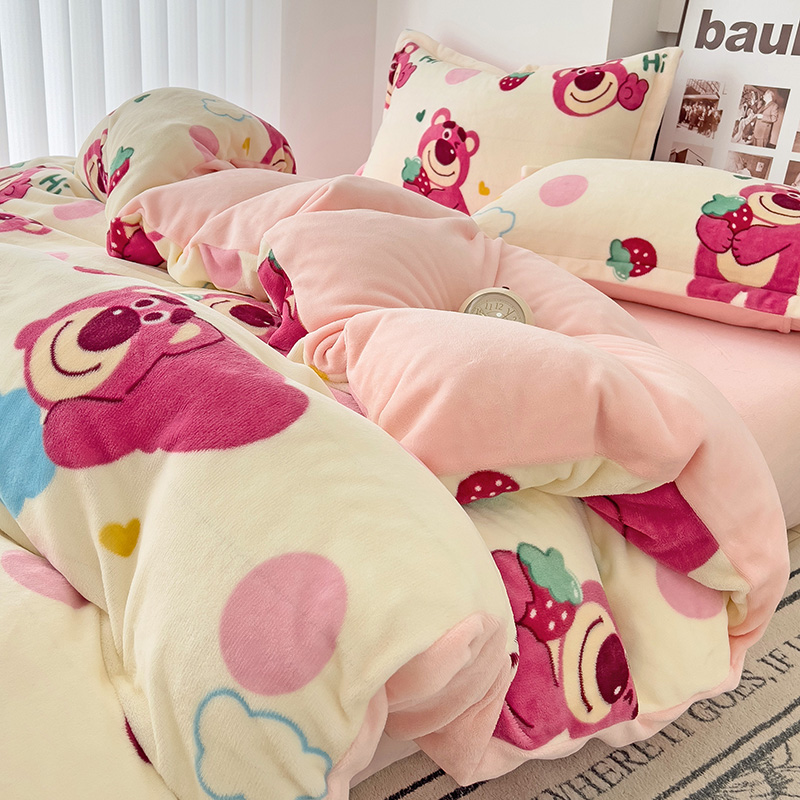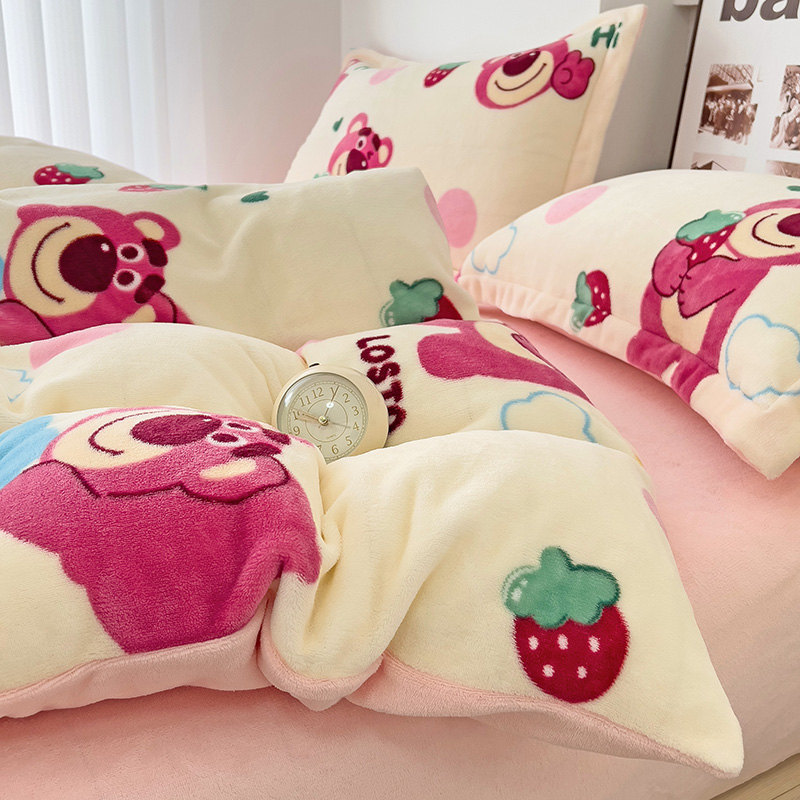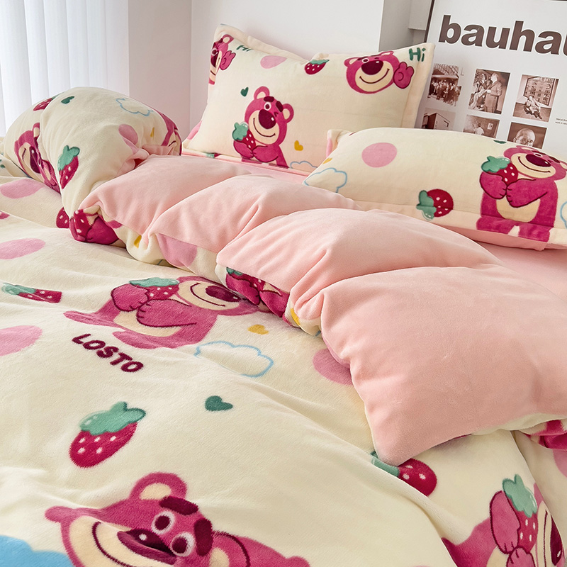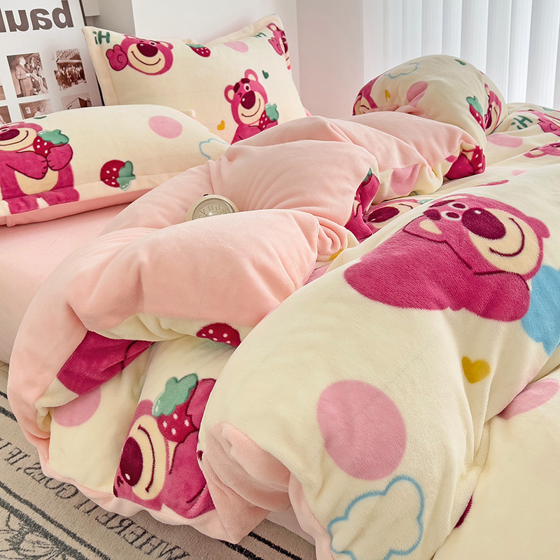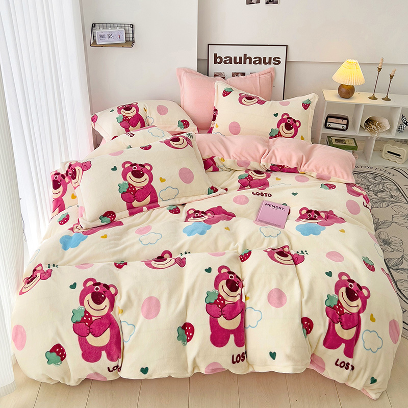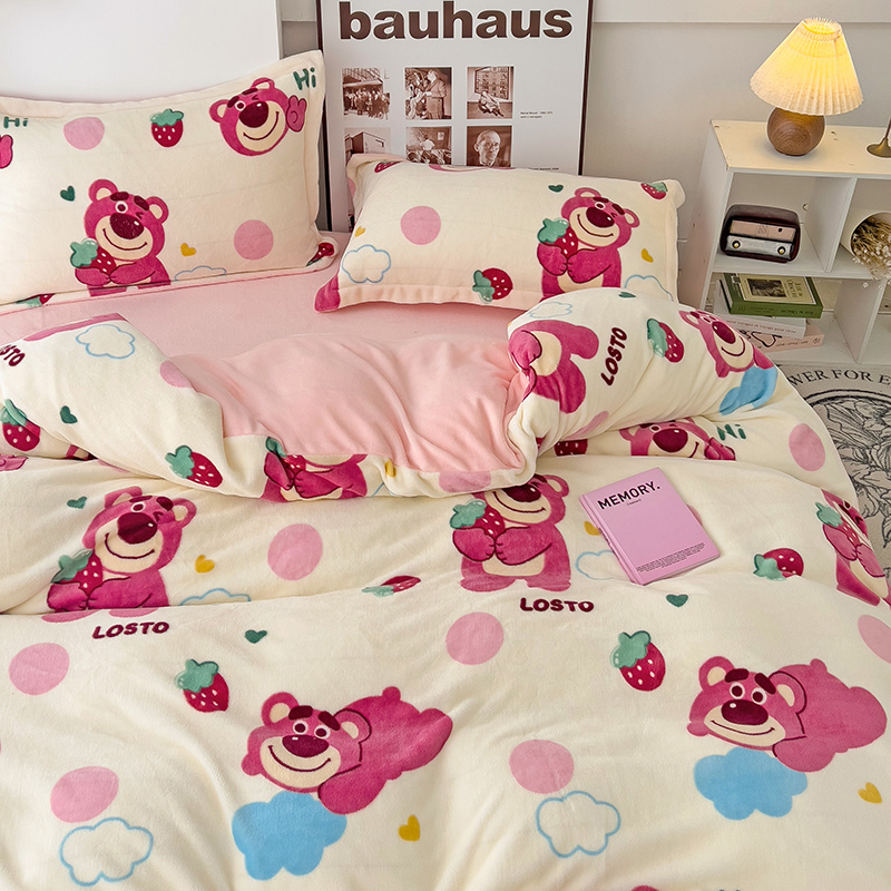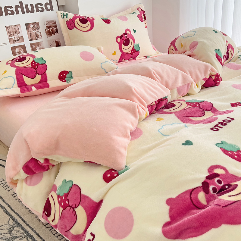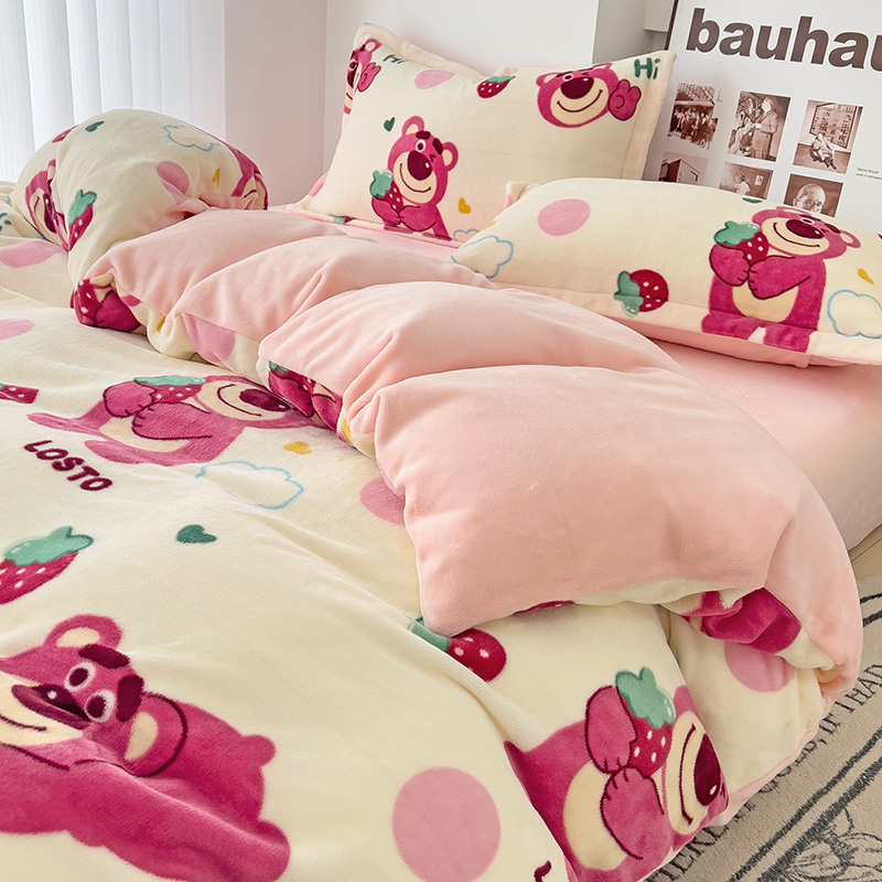 乐童2024新款吊边款牛奶绒四件套 萌趣熊宝