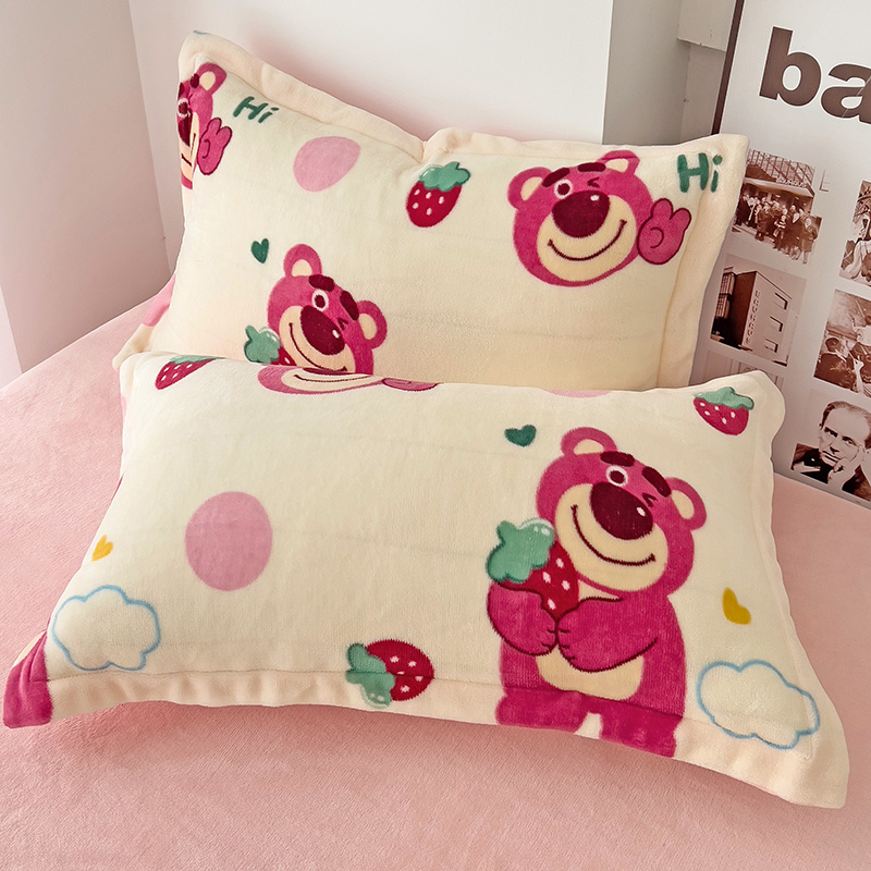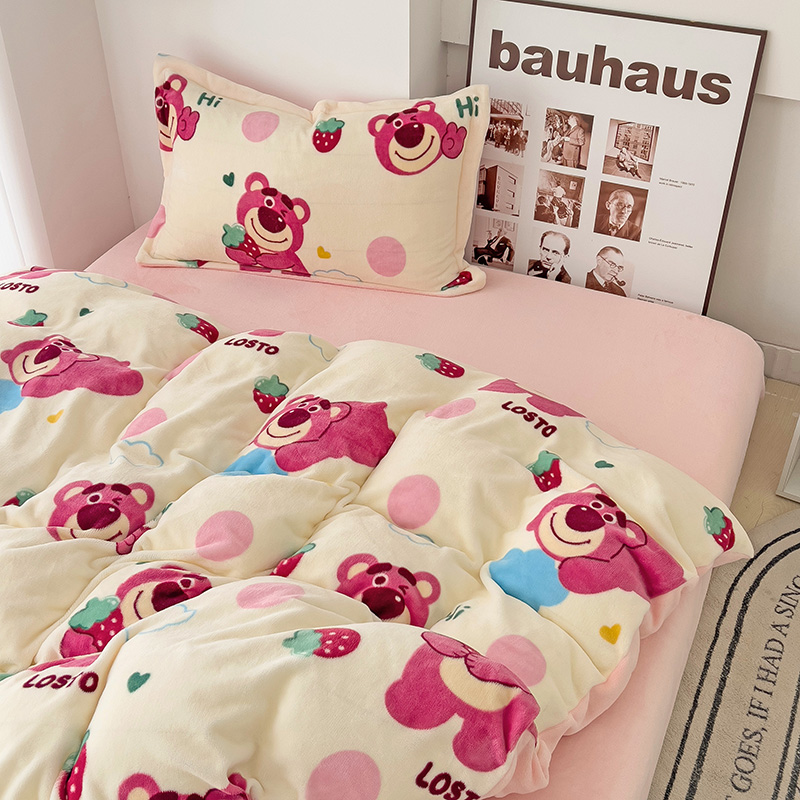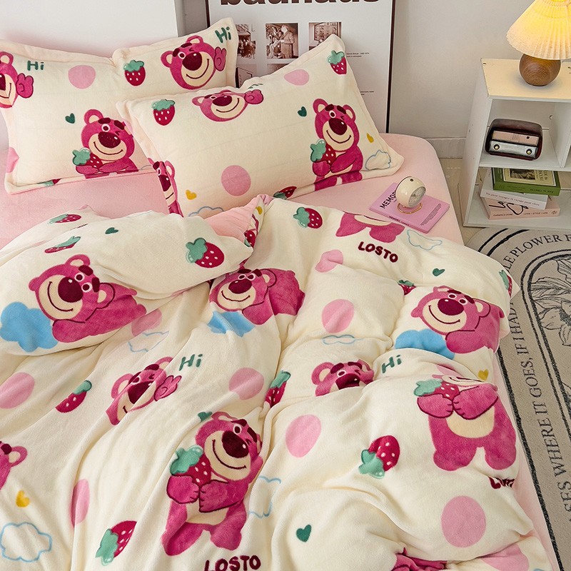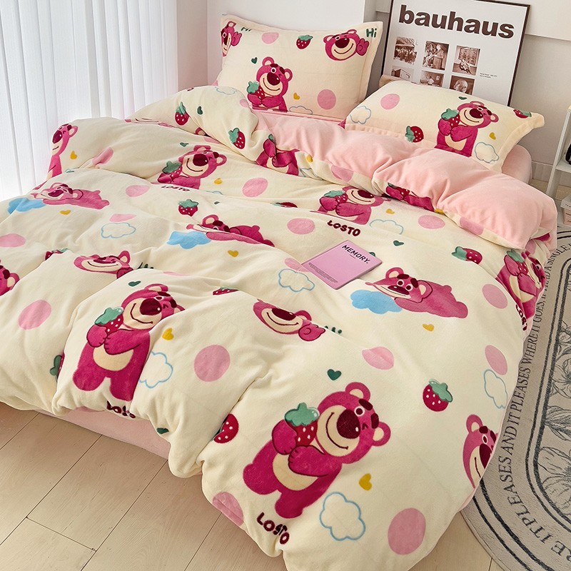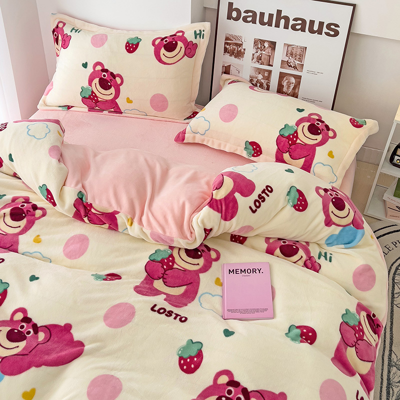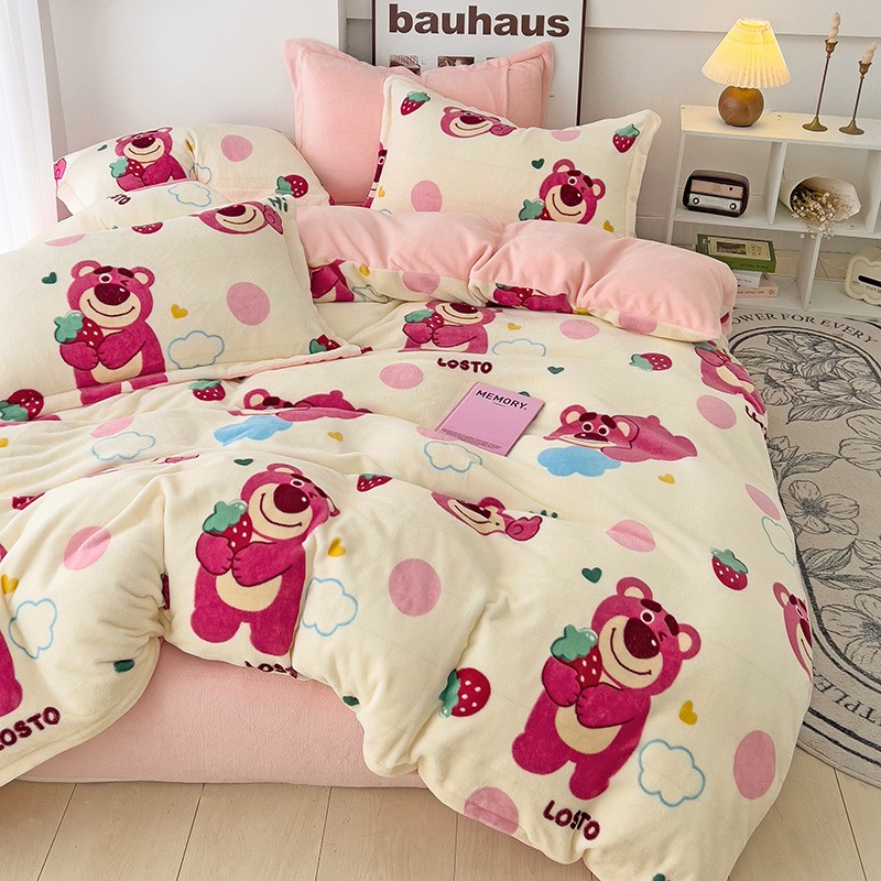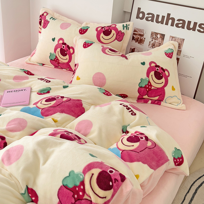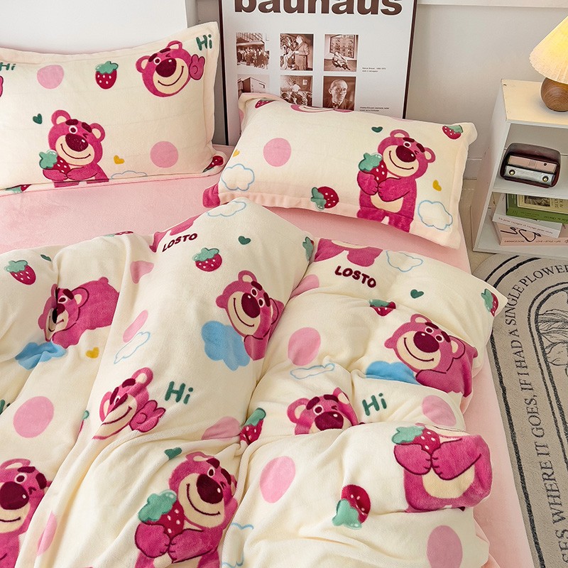乐童2024新款吊边款牛奶绒四件套 萌趣熊宝