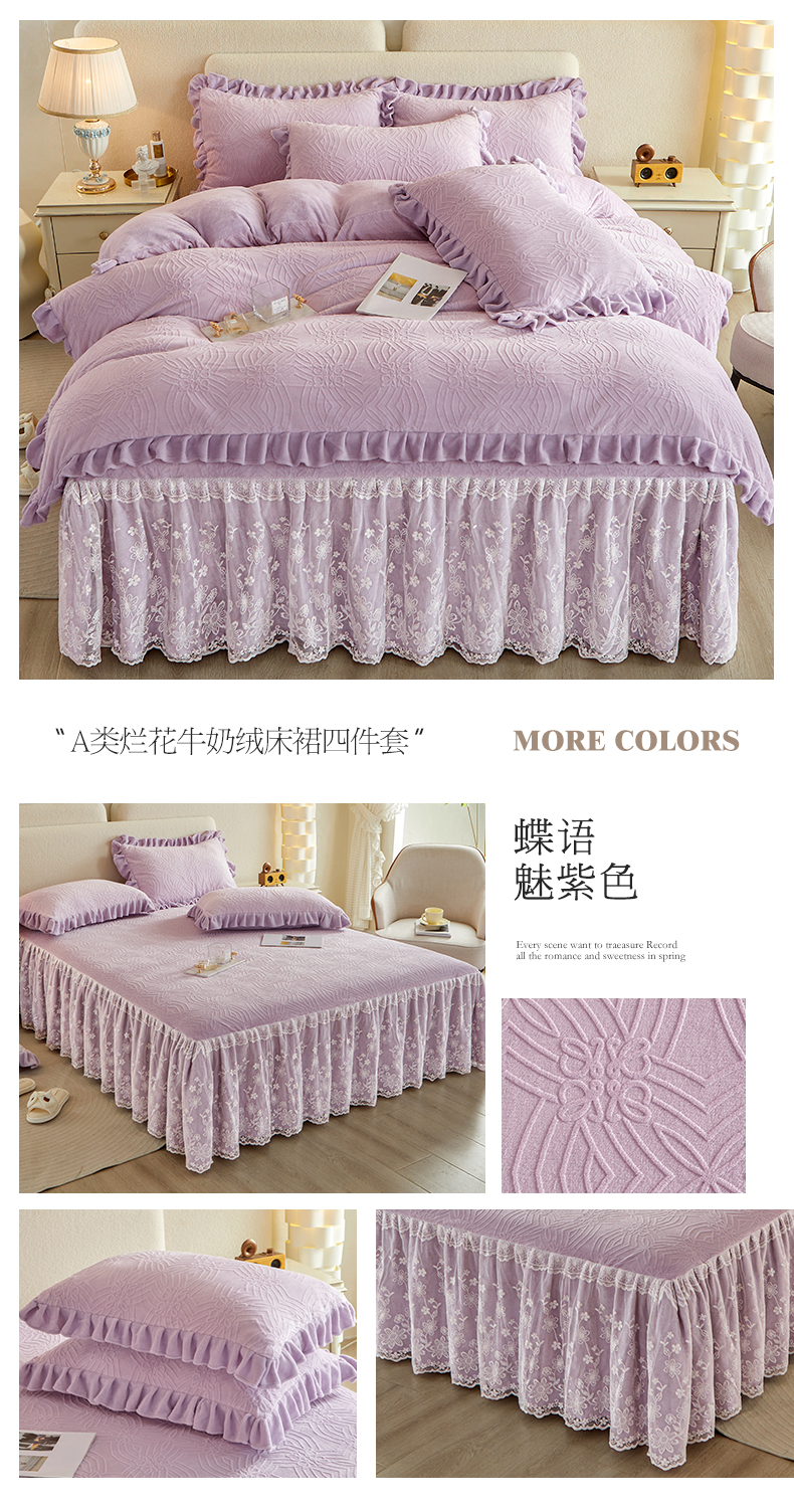 当前位置: 91家纺网 > 商品网购 > 床品套件 > 四件套 > 牛奶绒四件套 > 宜凡 2023新款烂花牛奶绒床裙四件套 蝶语-魅紫色