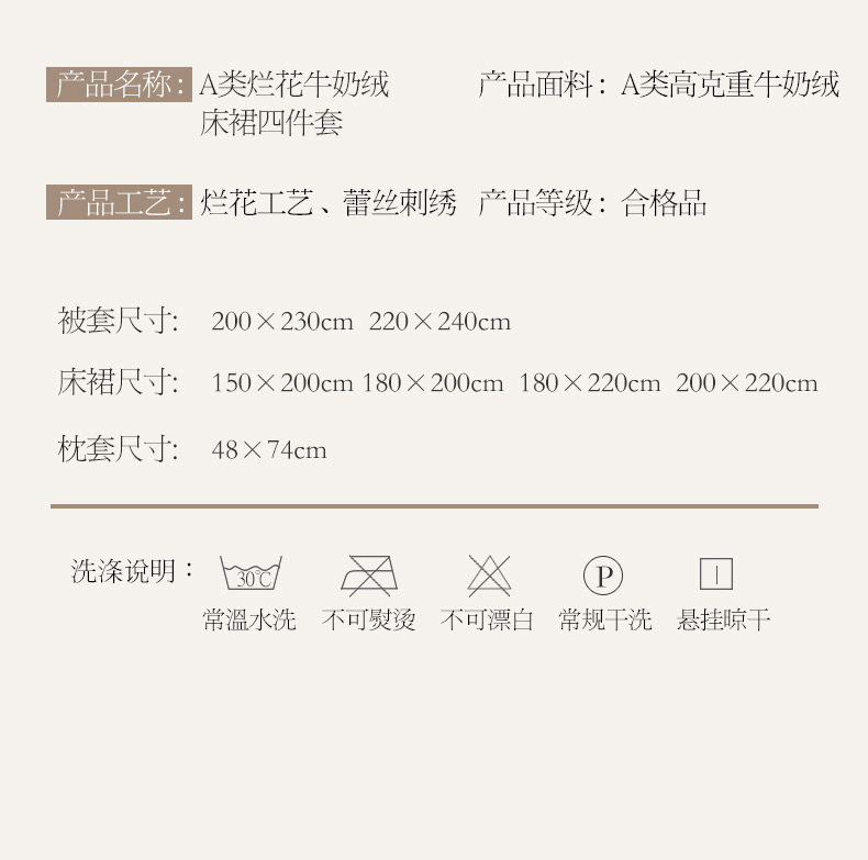 180*200cm床裙款四件套 | ¥190.00 |