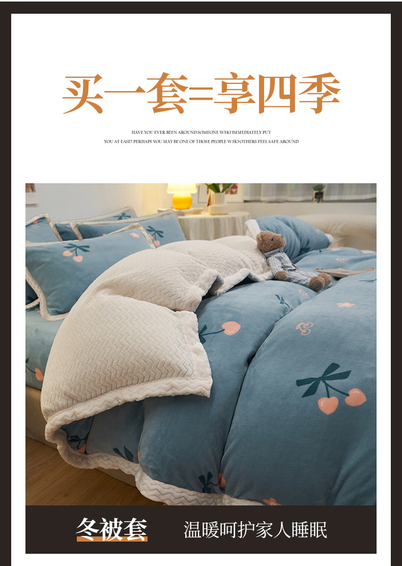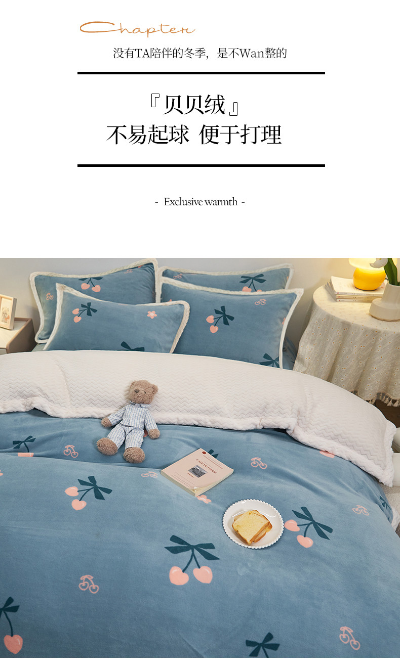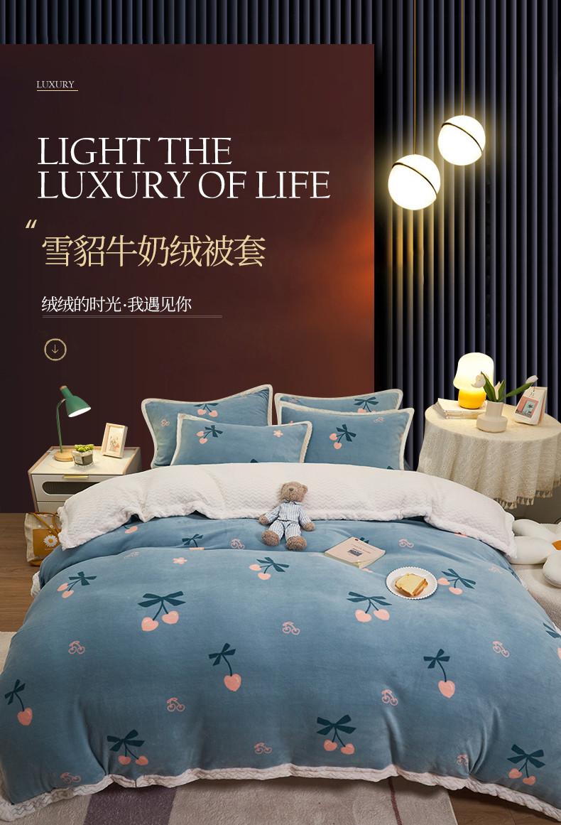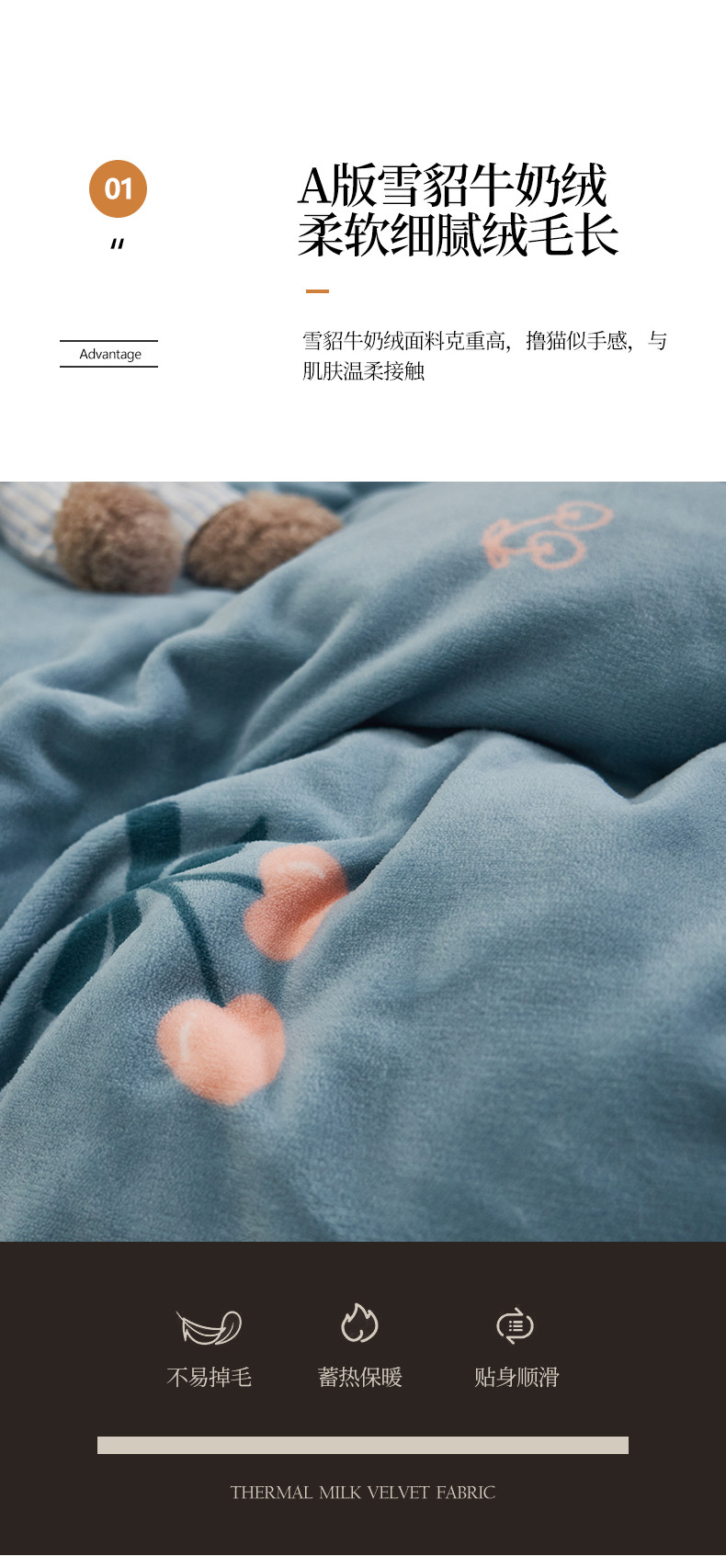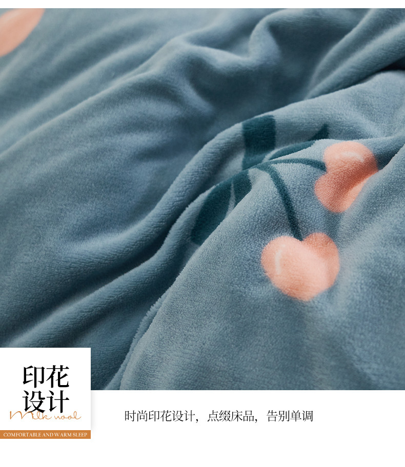 商品名称:全季家居 2023新款纯色印花抗静电大包边牛奶绒贝贝绒单被套 小樱桃