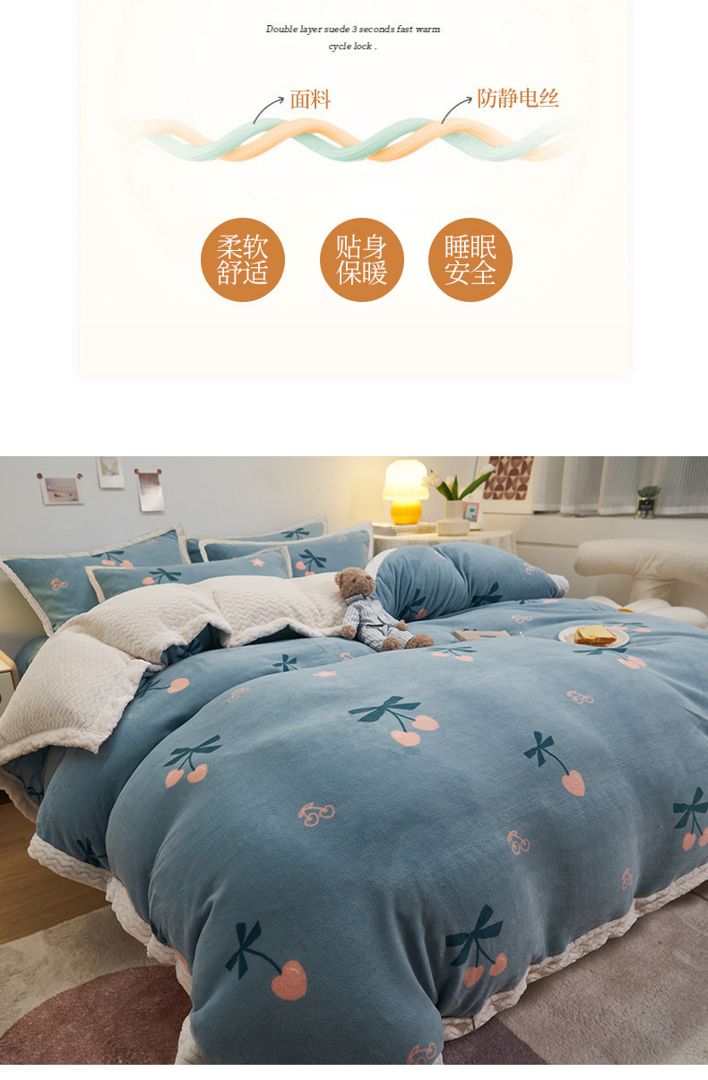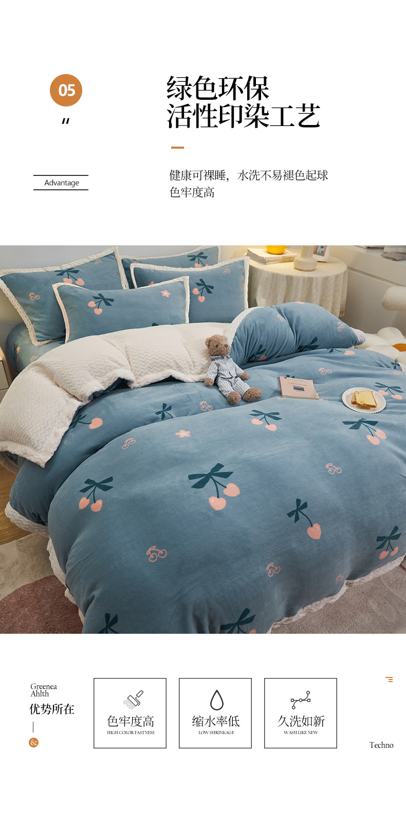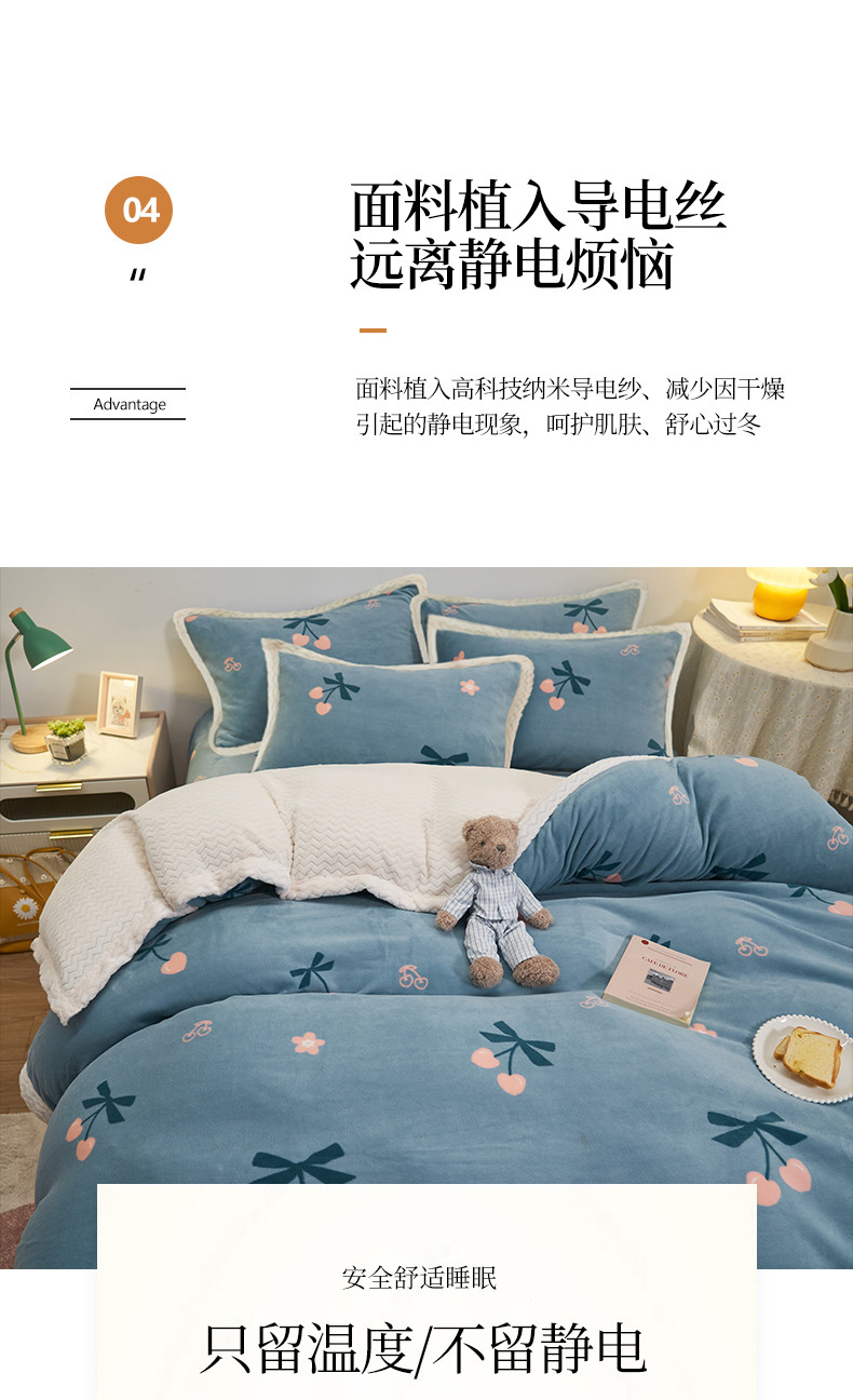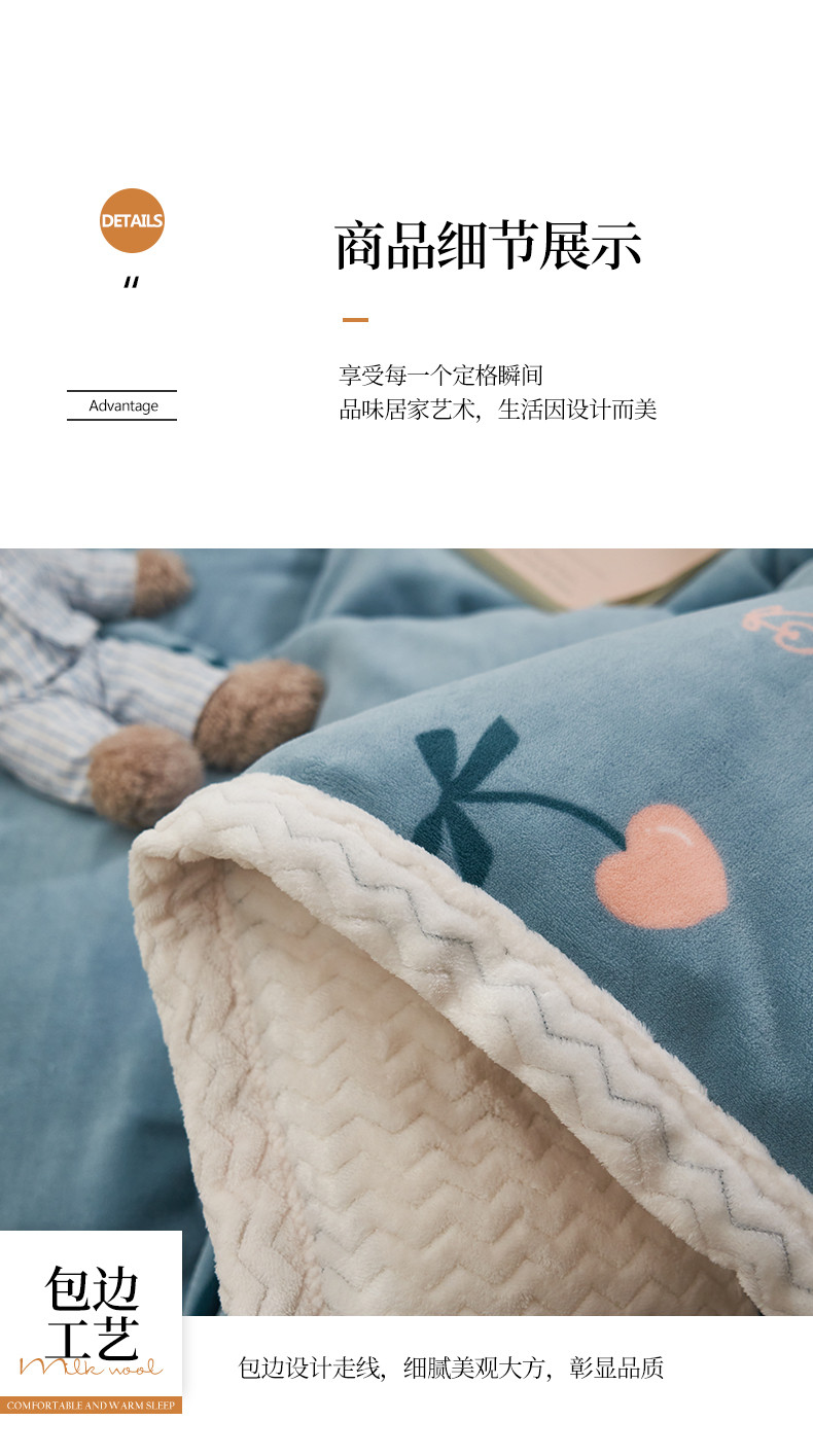 商品名称:全季家居 2023新款纯色印花抗静电大包边牛奶绒贝贝绒单被套 小樱桃