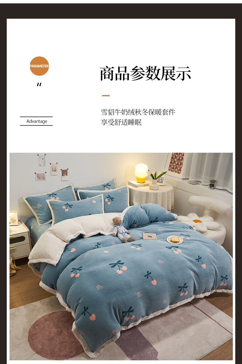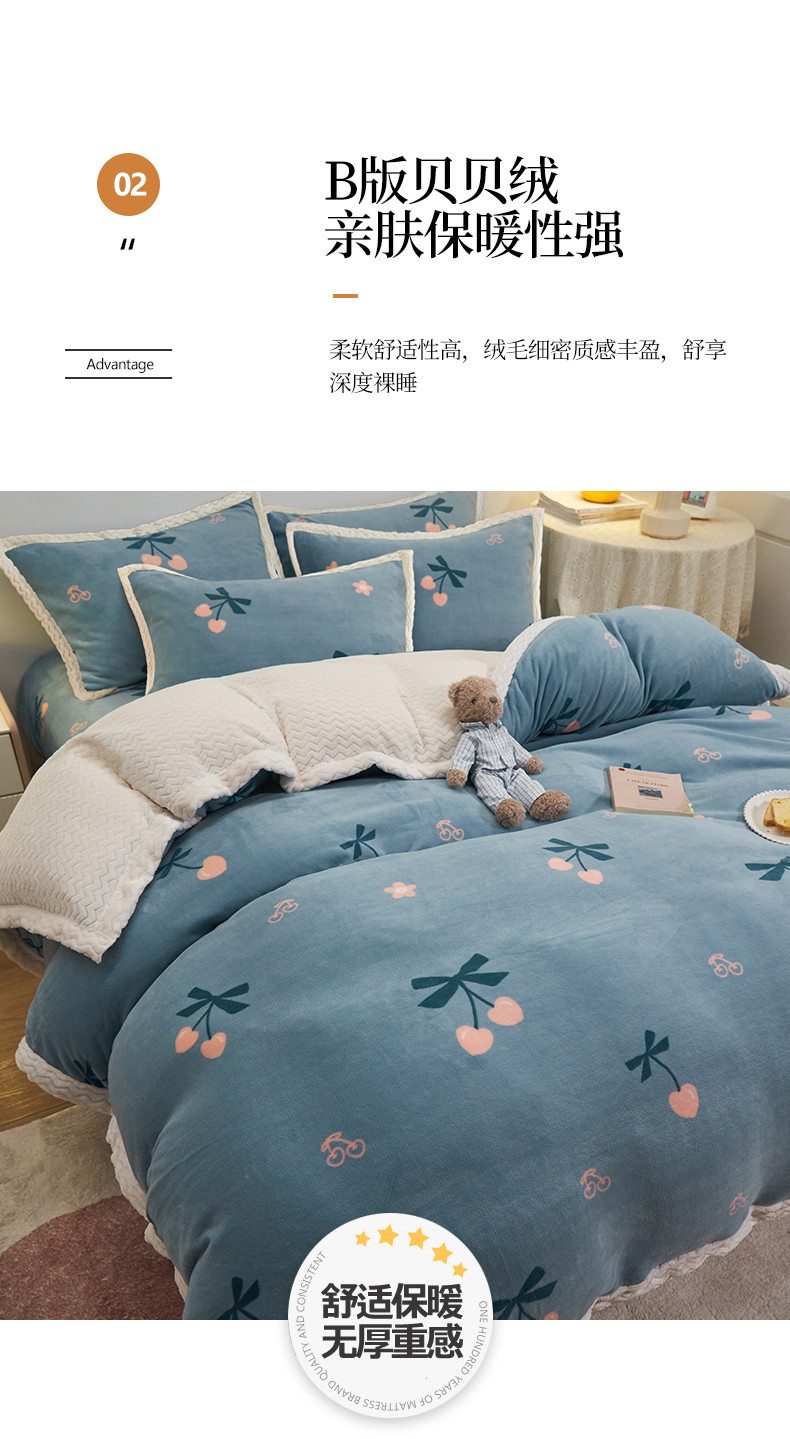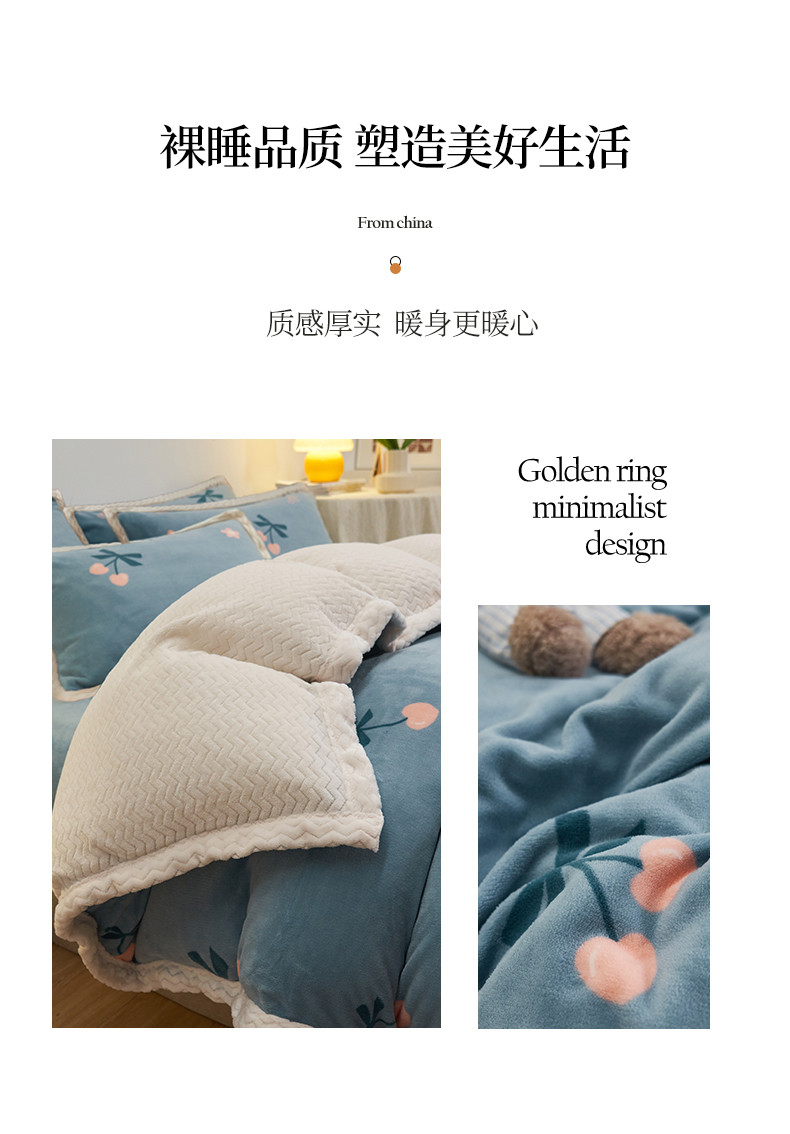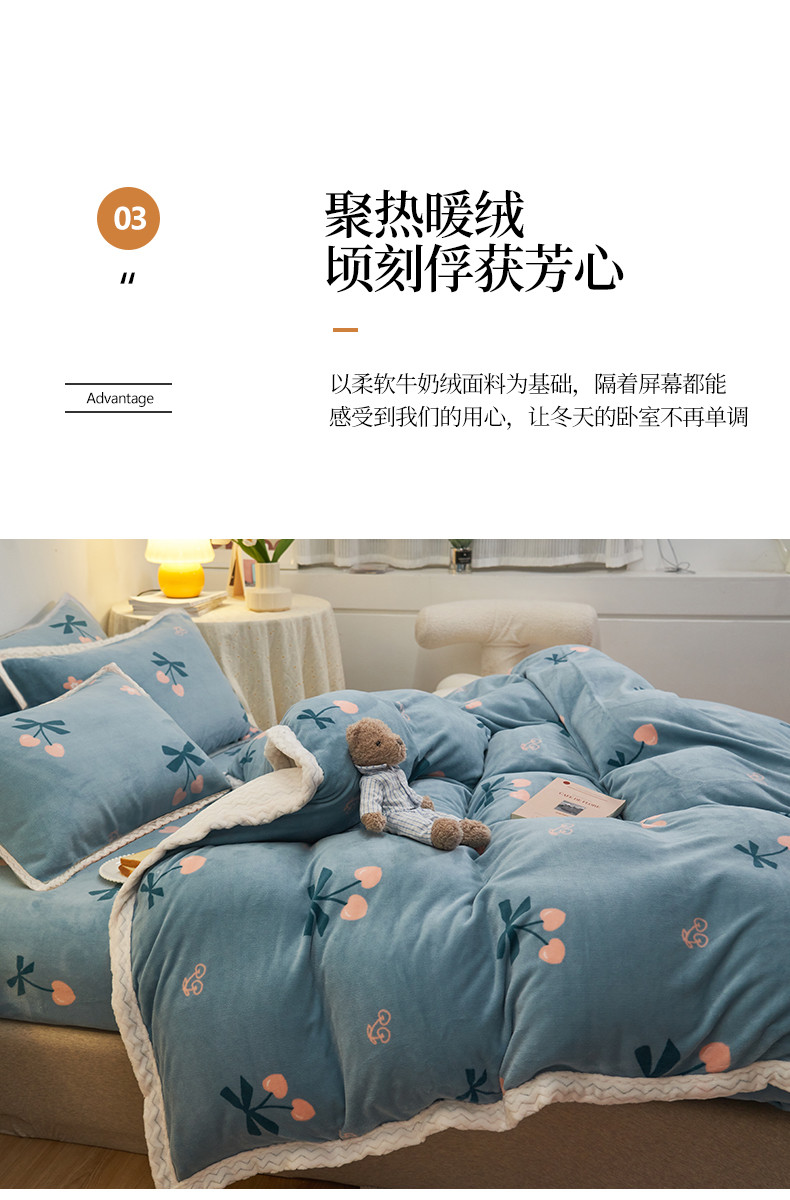 商品名称:全季家居 2023新款纯色印花抗静电大包边牛奶绒贝贝绒单被套 小樱桃