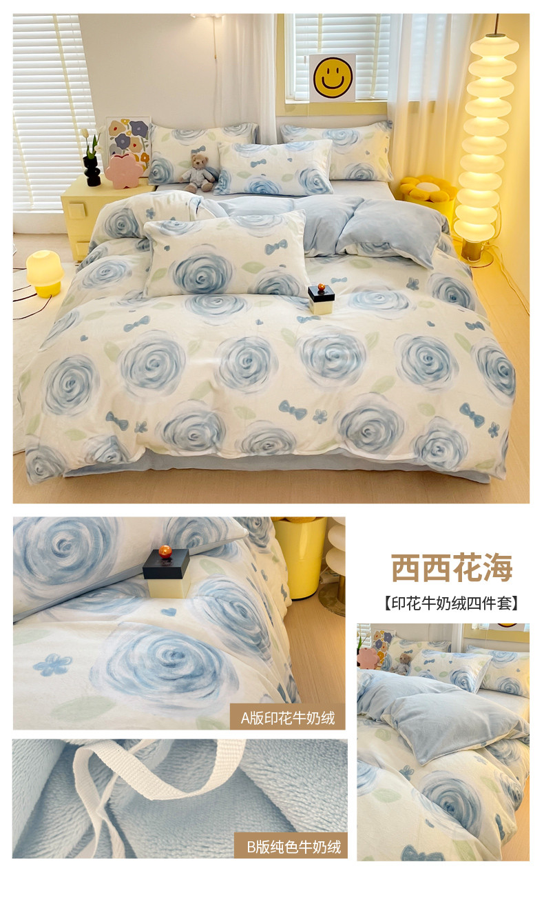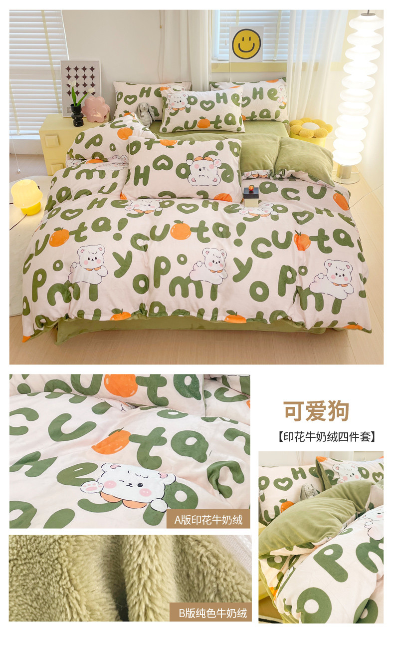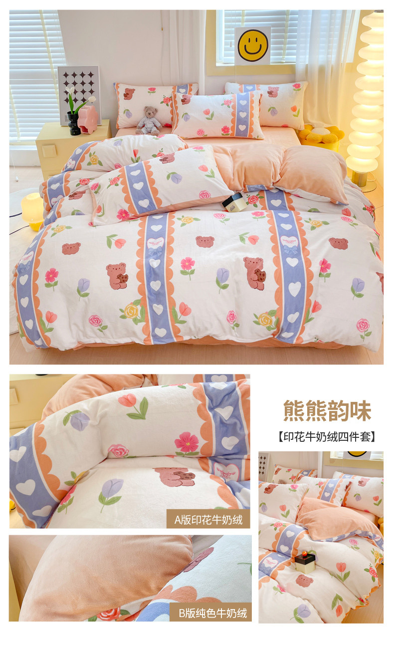 (总)梦柏家纺 2023新款高克重牛奶绒印花四件套,笨笨熊,蝶舞恋,芳草佳人,海岛玫瑰,花海,花海兔,花艺,欢乐时光,幻想玫瑰,可爱狗,可爱熊,绿色爱心,喵喵无语,芊芊熊意,森林来信,森林兔兔,西西花海,巷屿猫,小漫春曲,熊熊韵味