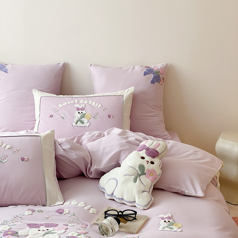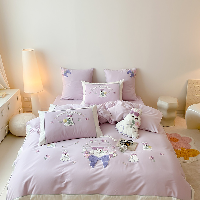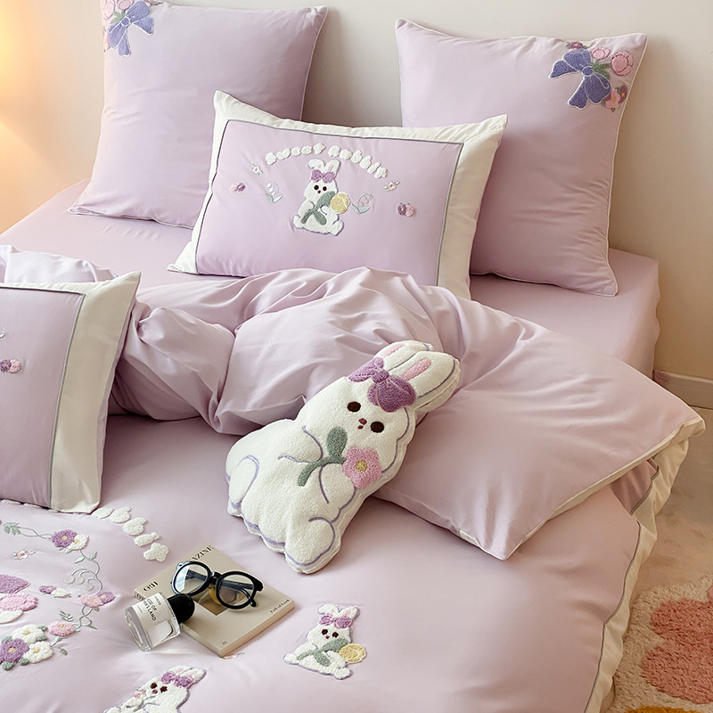 (总)MIU缪家居 2025新款A版兔毛B版牛奶绒四件套屋顶花园,屋顶花园-淡蓝,屋顶花园-浅紫
