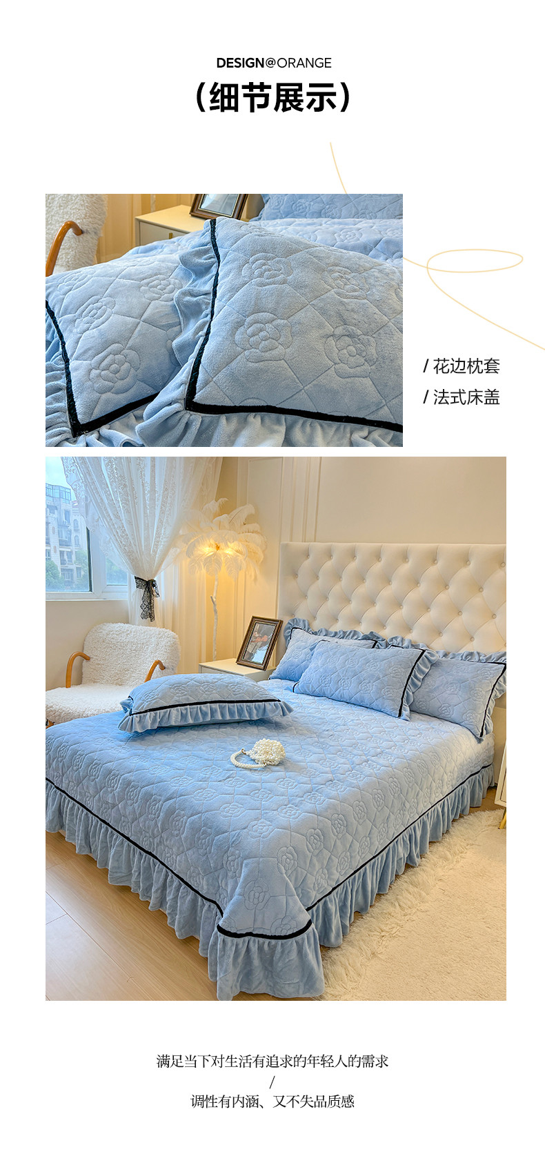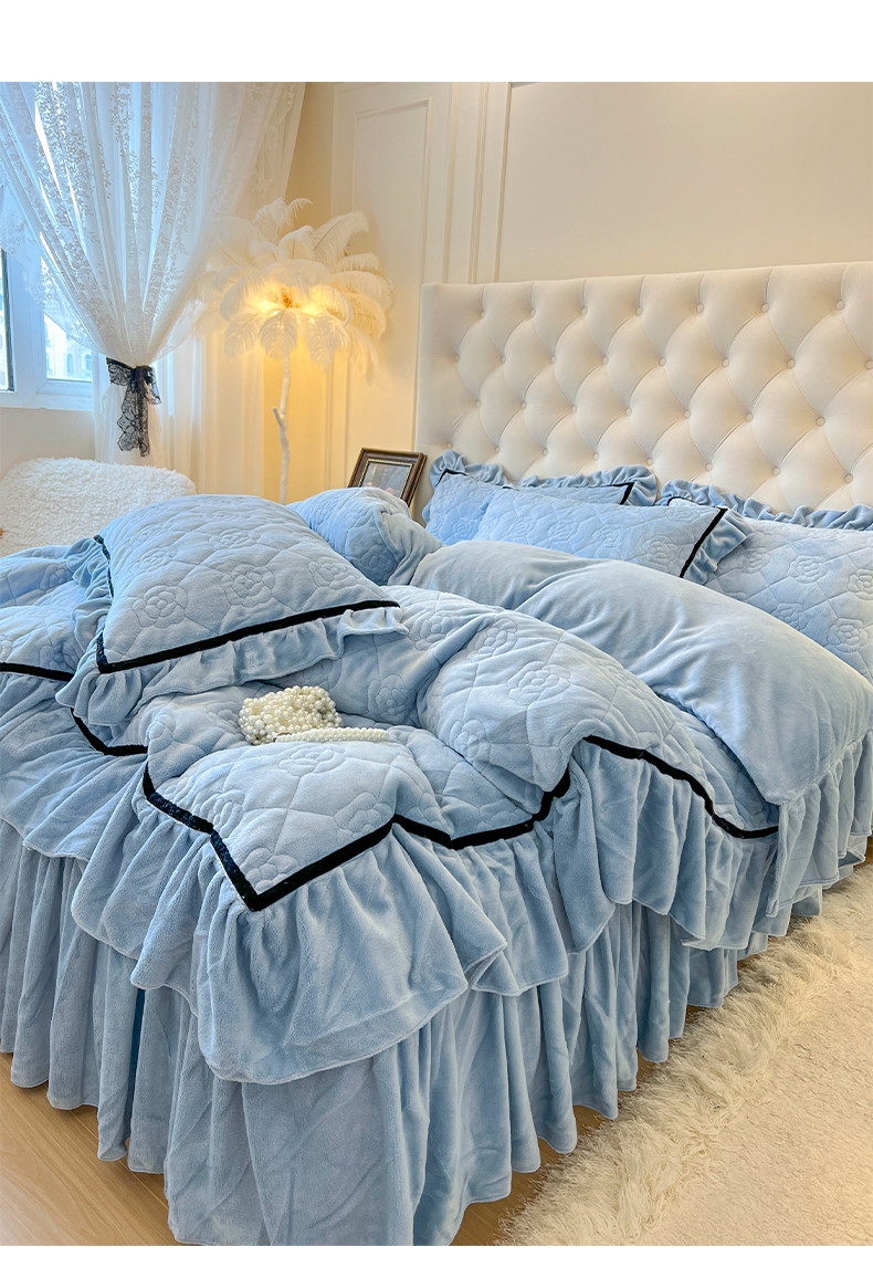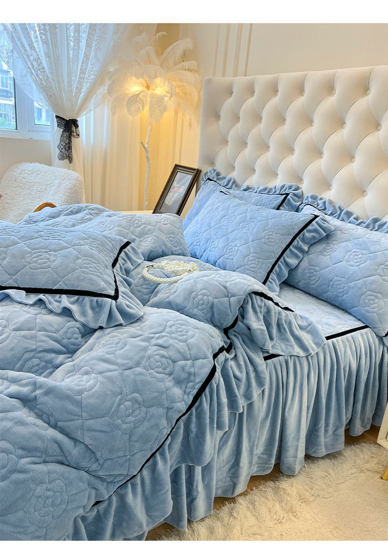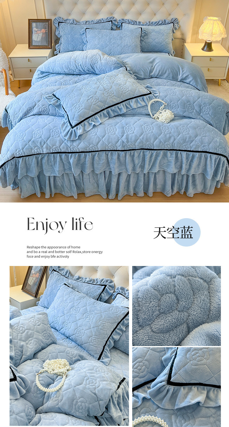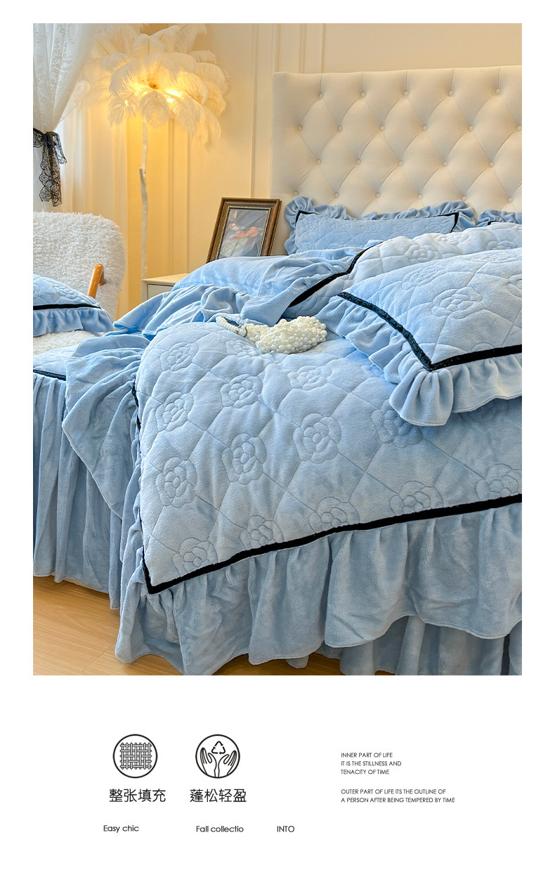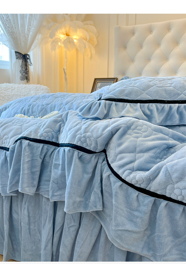 当前位置: 91家纺网 > 商品网购 > 床品套件 > 四件套 > 牛奶绒四件套 > 网红馆 2025新款高克重加厚保暖牛奶绒法式大花边四件套-眷恋 眷恋-天空蓝