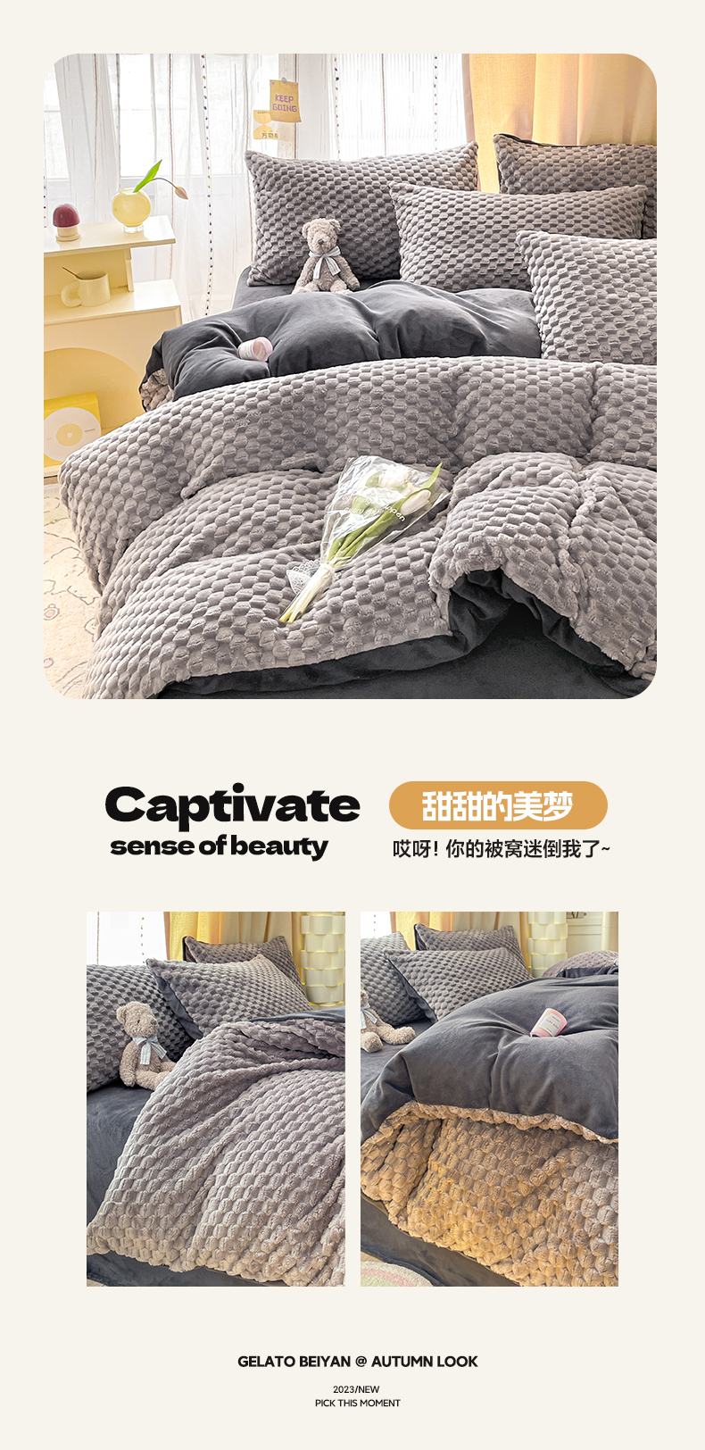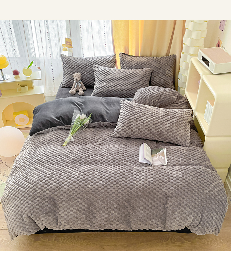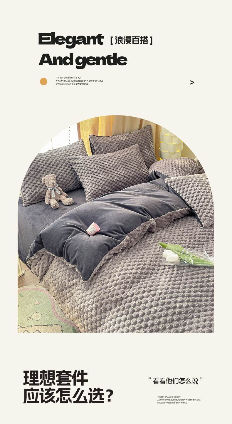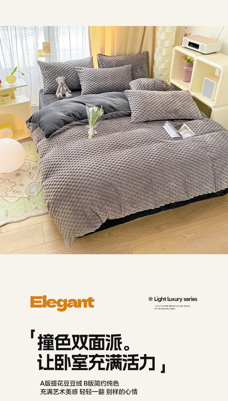 如一 2023新款提花豆豆牛奶绒高克重金龟绒珊瑚绒法莱绒四件套-风格二 豆豆星灰
