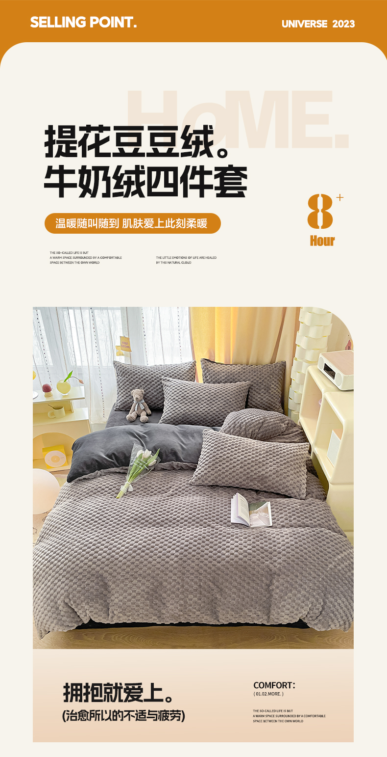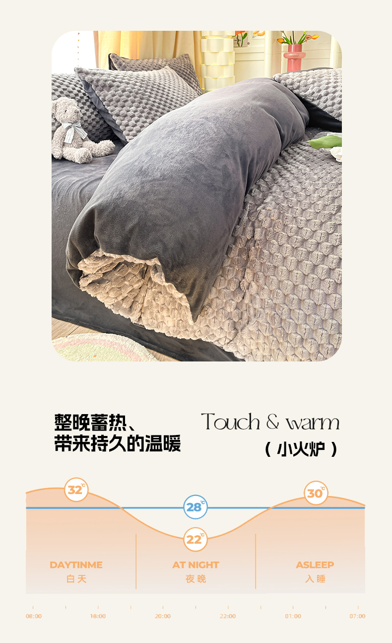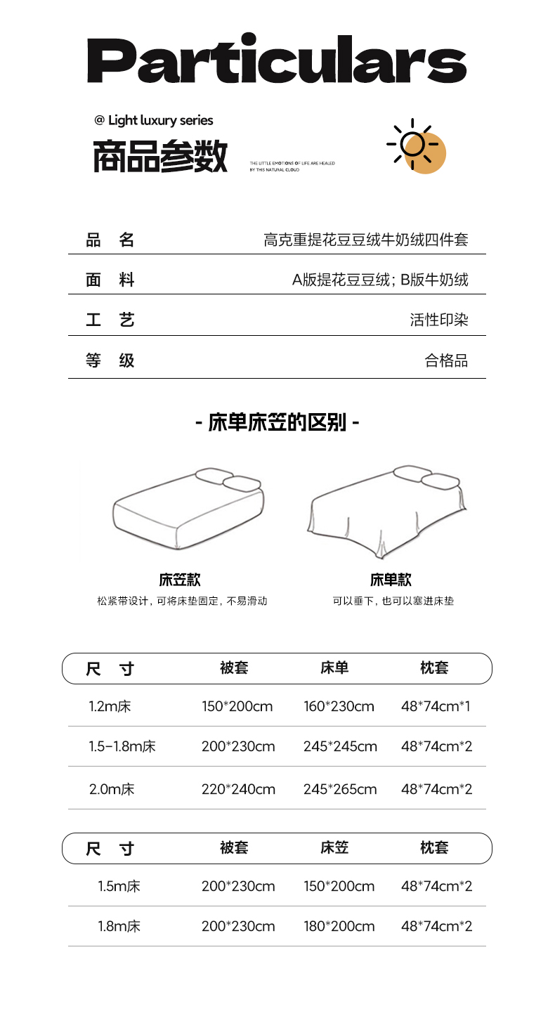 如一 2023新款提花豆豆牛奶绒高克重金龟绒珊瑚绒法莱绒四件套-风格二 豆豆星灰