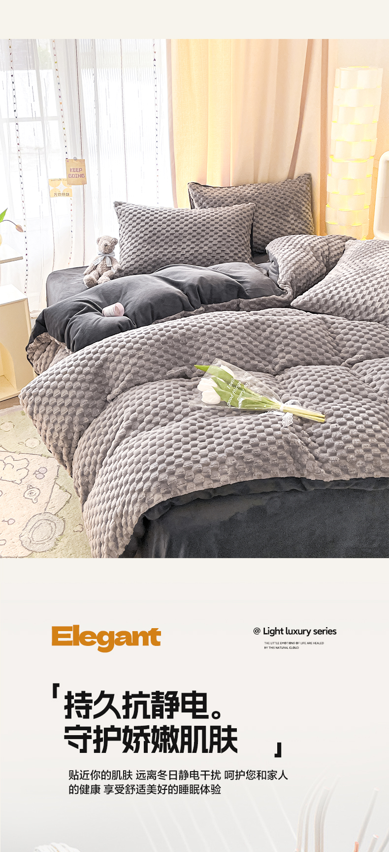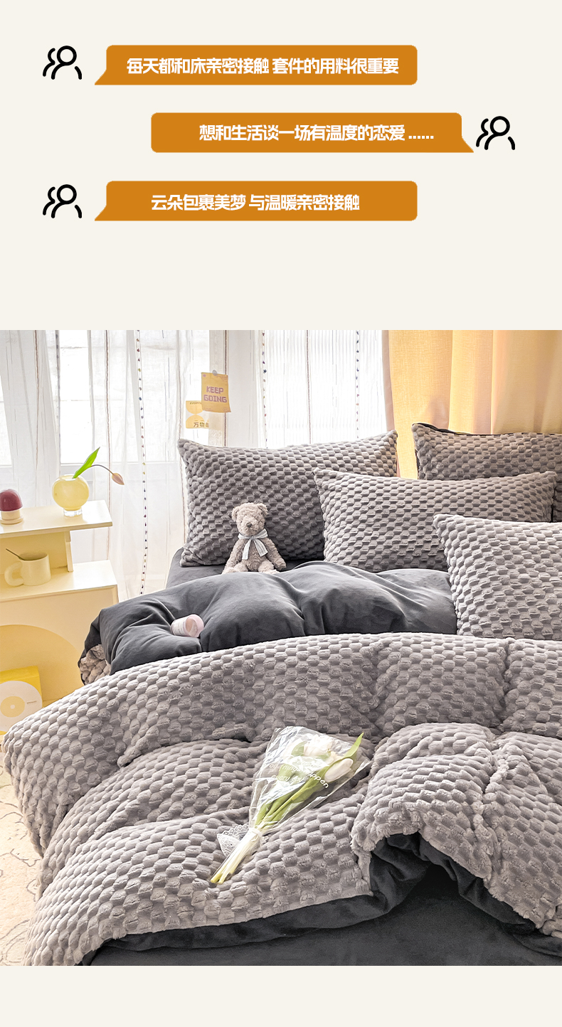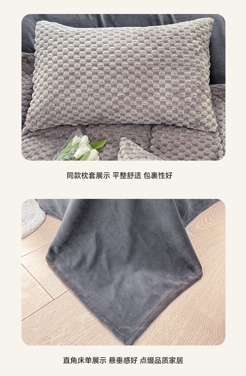 商品名称:如一 2023新款提花豆豆牛奶绒高克重金龟绒珊瑚绒法莱绒四件套-风格二 豆豆星灰