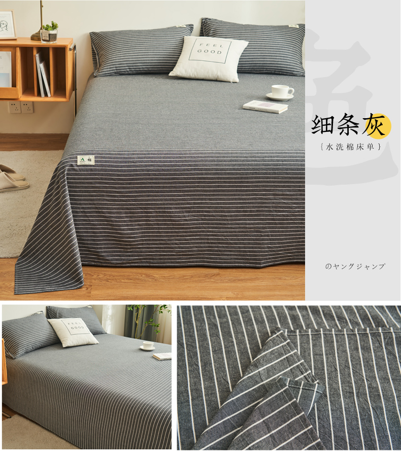 • 91家纺网 家纺一手货源 找家纺 21度C 2024新款全棉色织水洗床单 细条灰