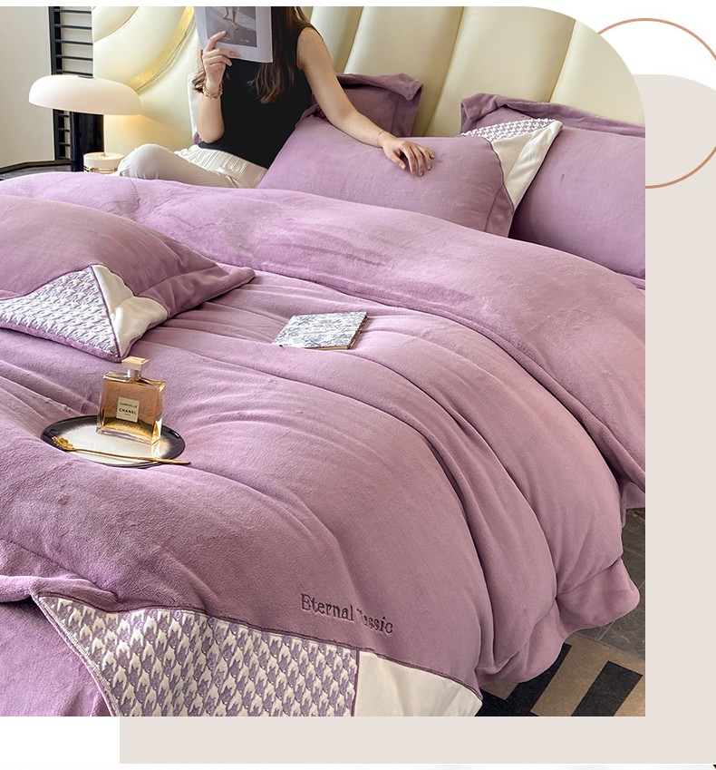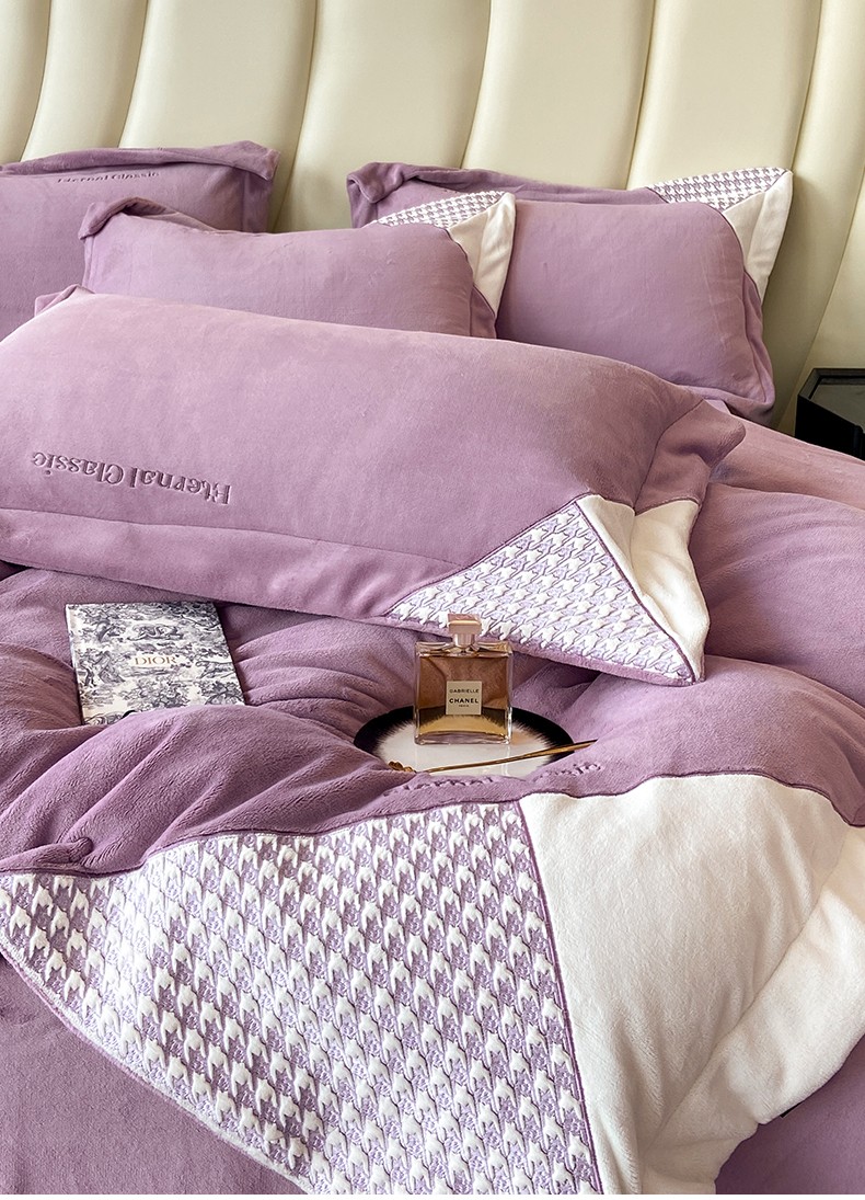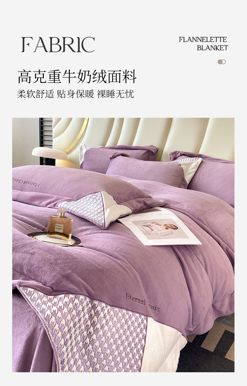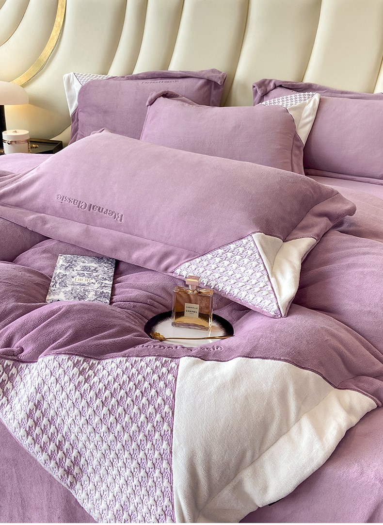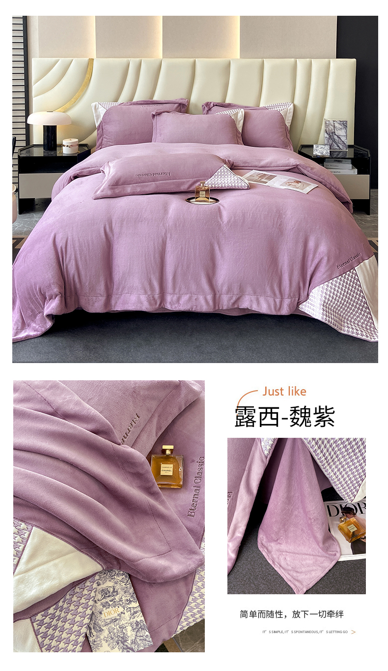商品名称:家居1号 2024新款高克重牛奶绒四件套-露西系列 露西-魏紫