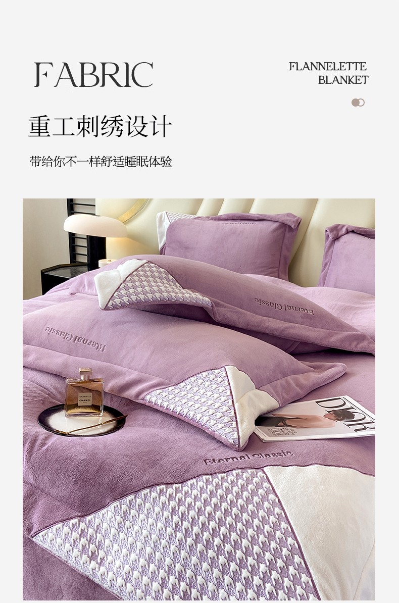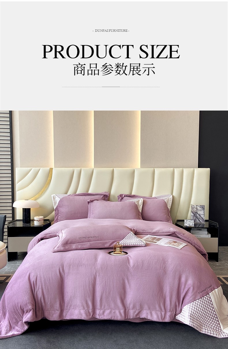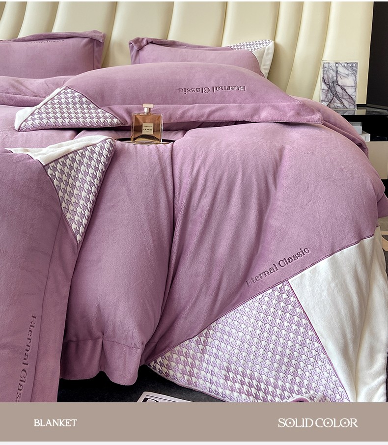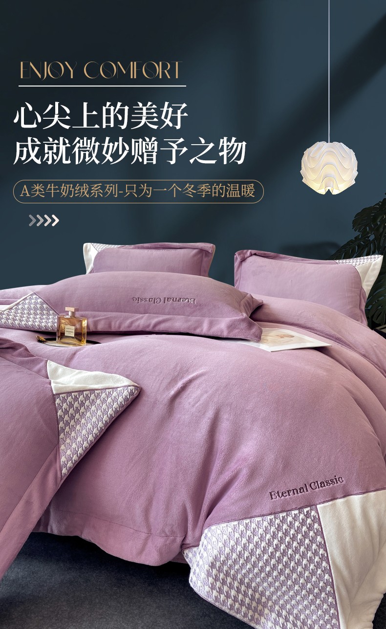 商品名称:家居1号 2024新款高克重牛奶绒四件套-露西系列 露西-魏紫