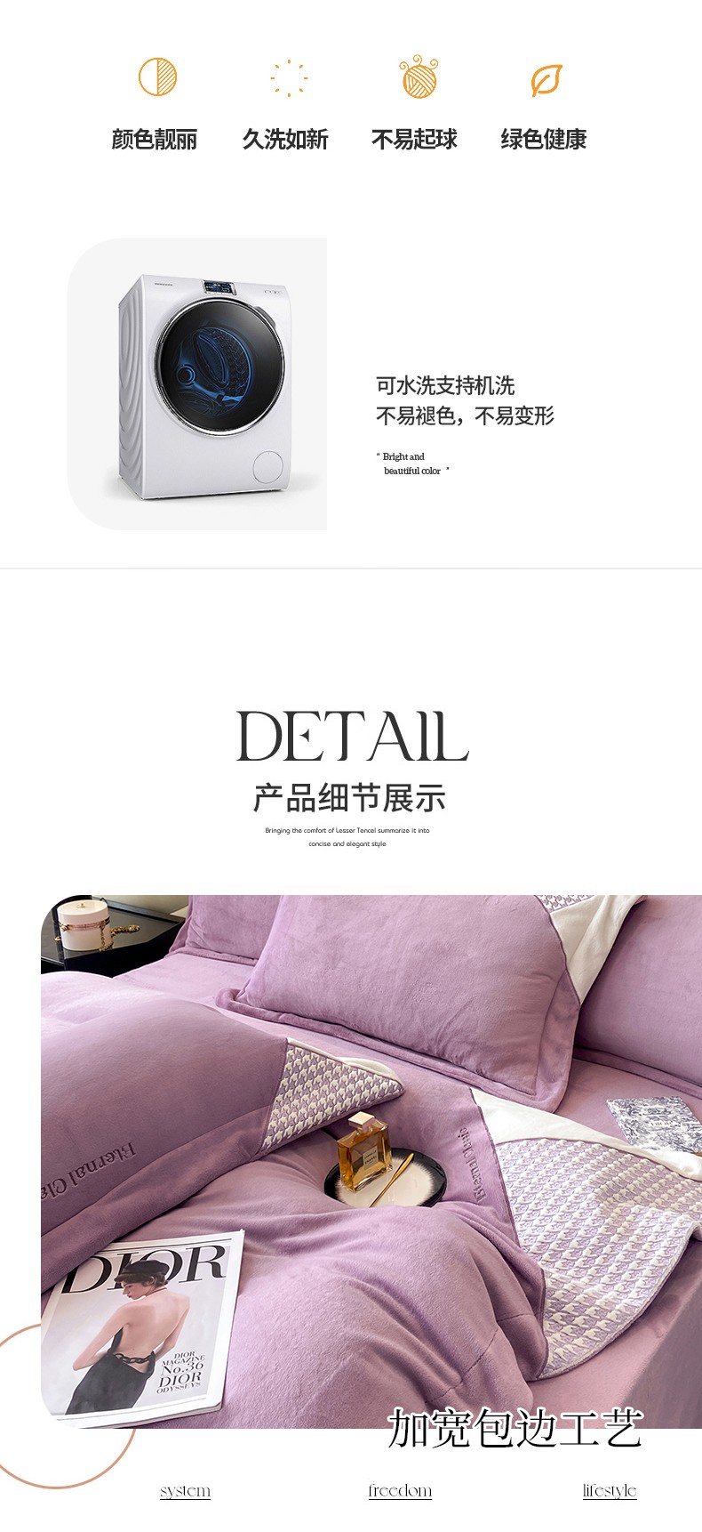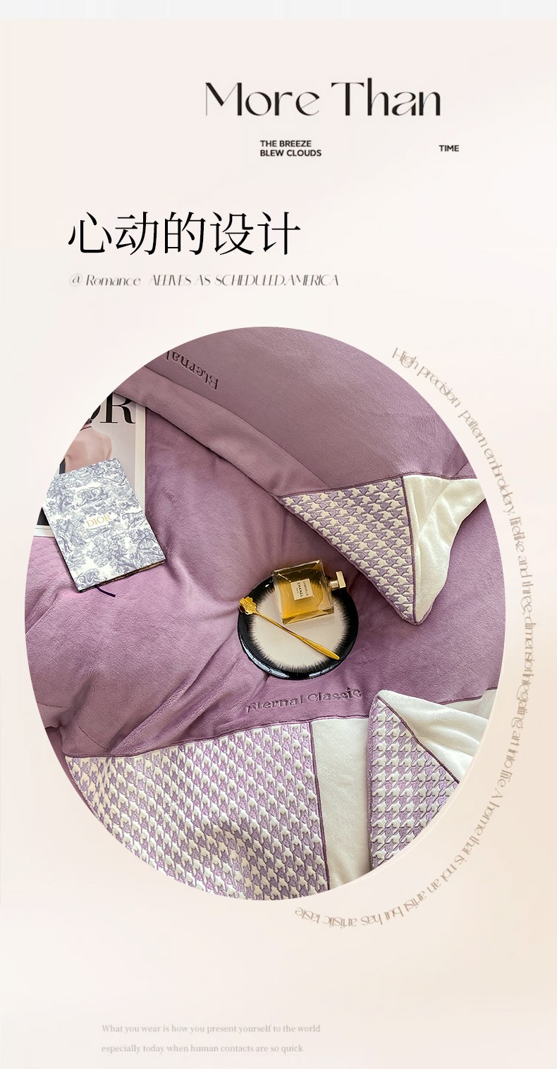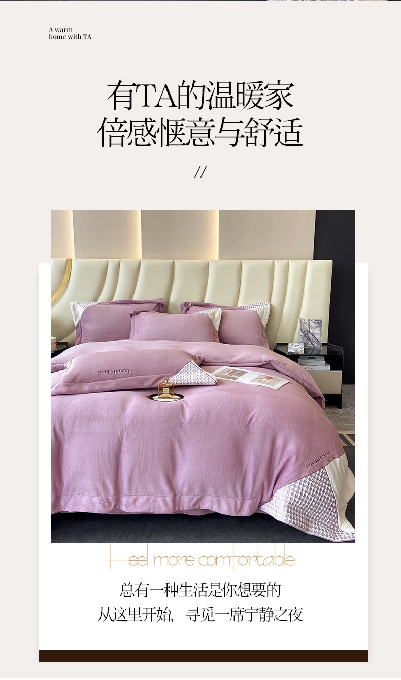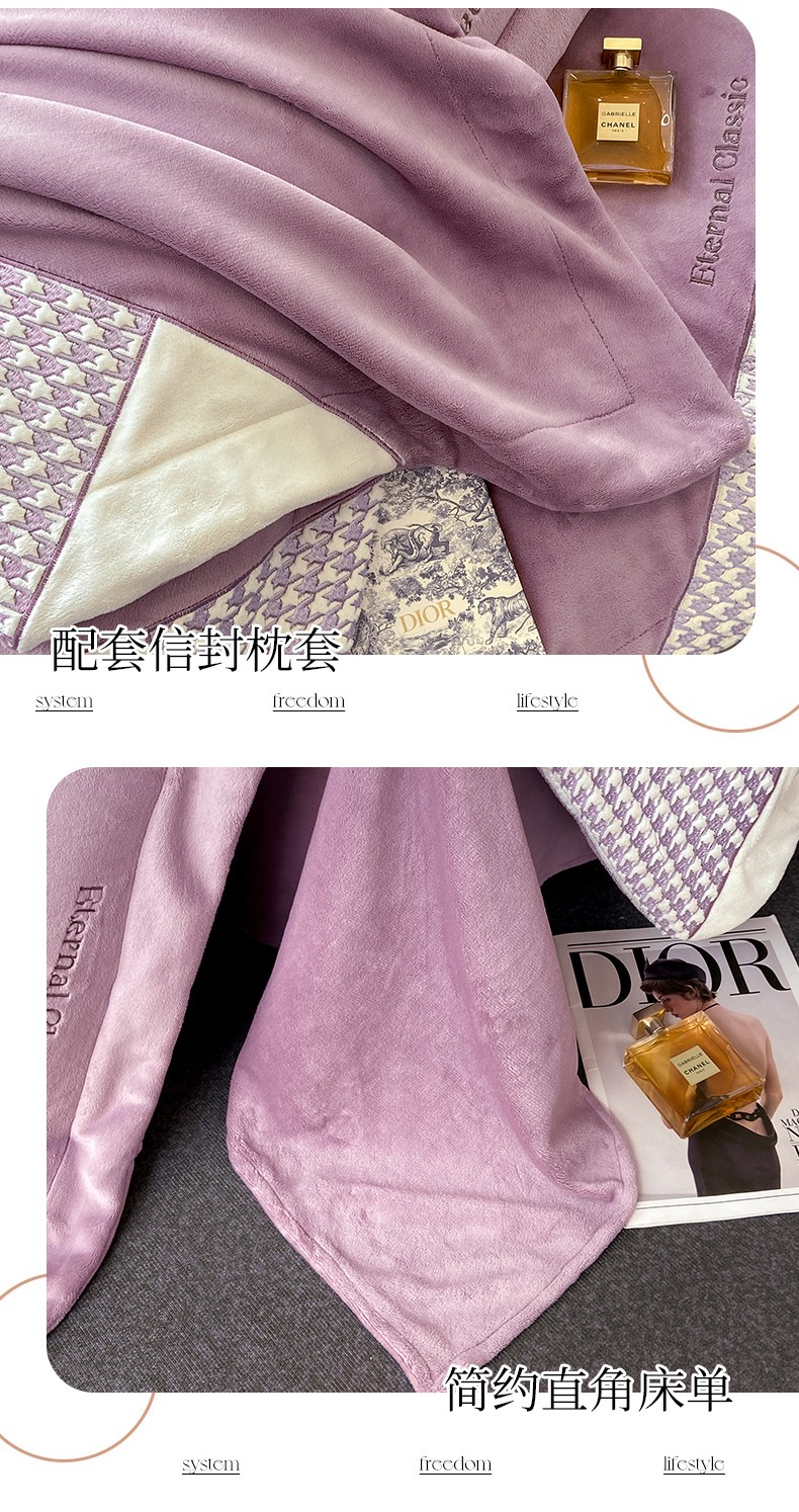 商品名称:家居1号 2024新款高克重牛奶绒四件套-露西系列 露西-魏紫