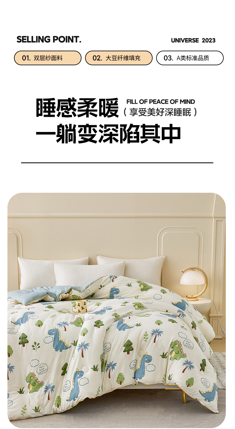 商品名称:梦尚舒 2025新款水洗双层纱大豆纤维被冬被 元气恐龙