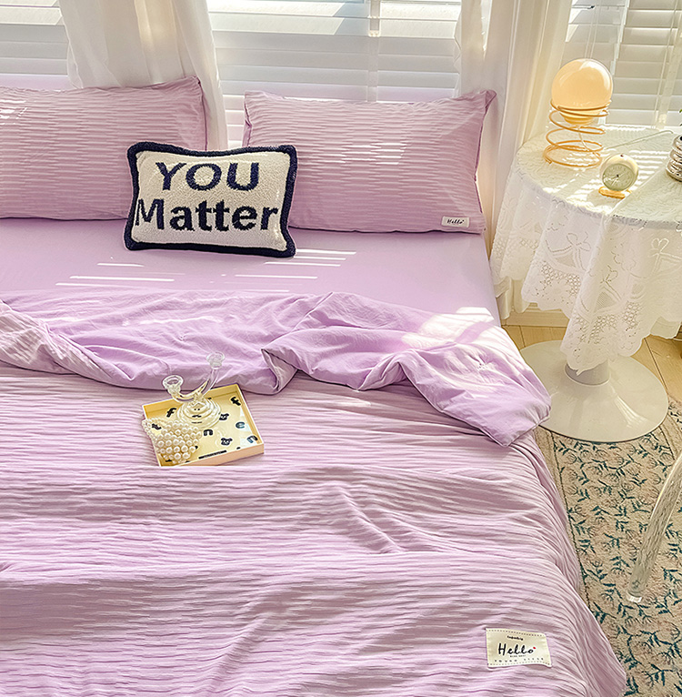 (总)暖芯优选 2023新款韩版泡泡纱水洗棉拼色床单床笠四件套,米白灰,粉清绿,芥末绿,米白橙,奶昔白,情调灰,天蓝玉,樱花粉,紫薯色