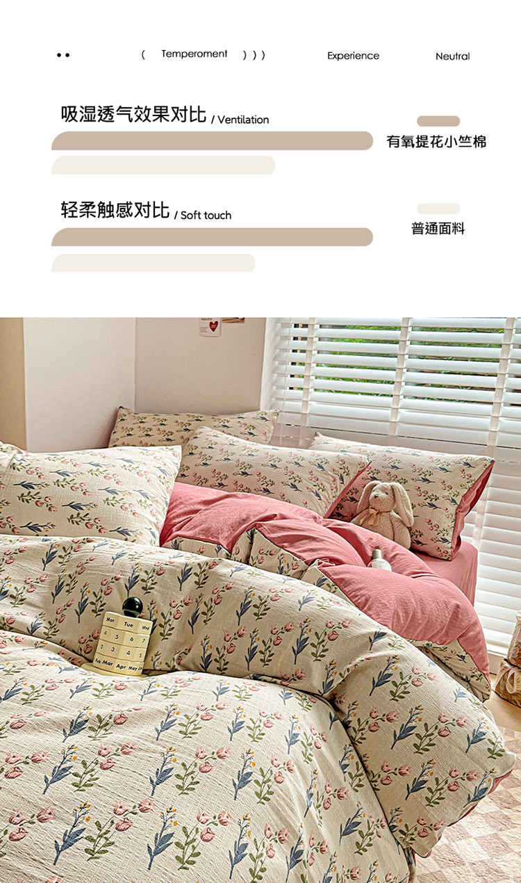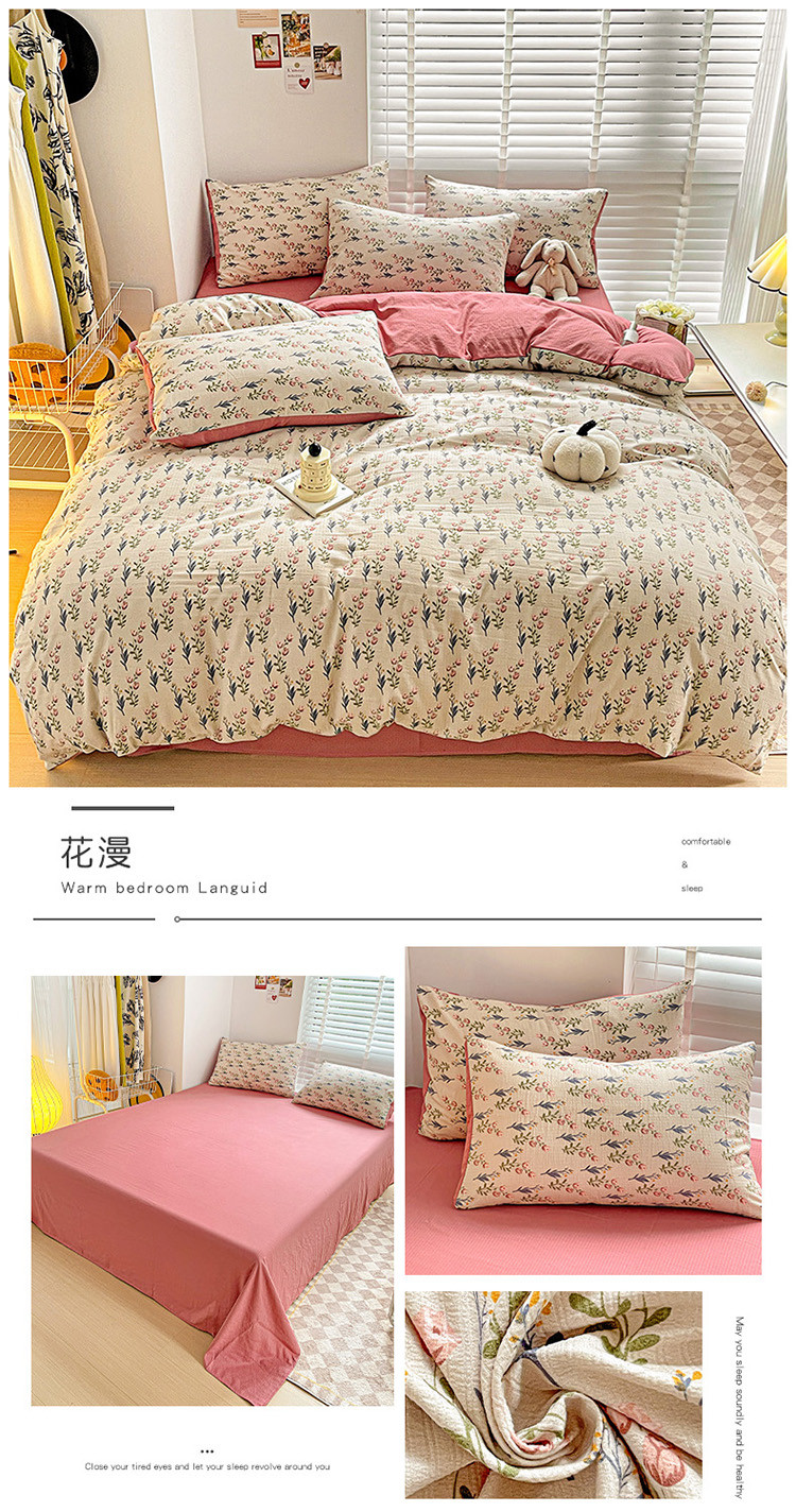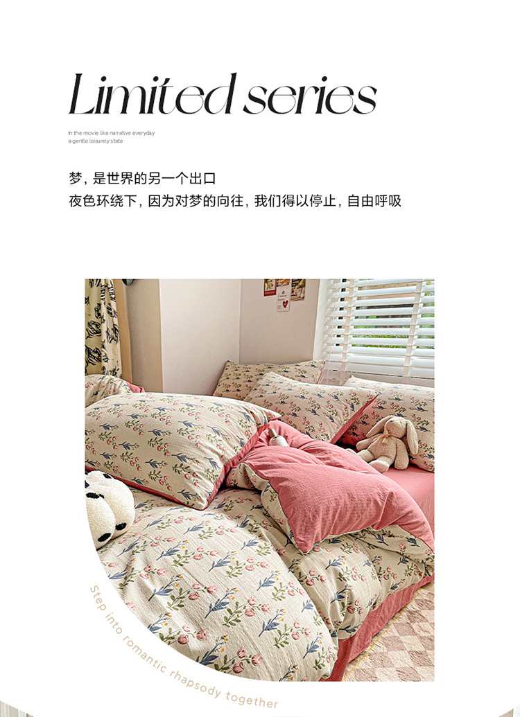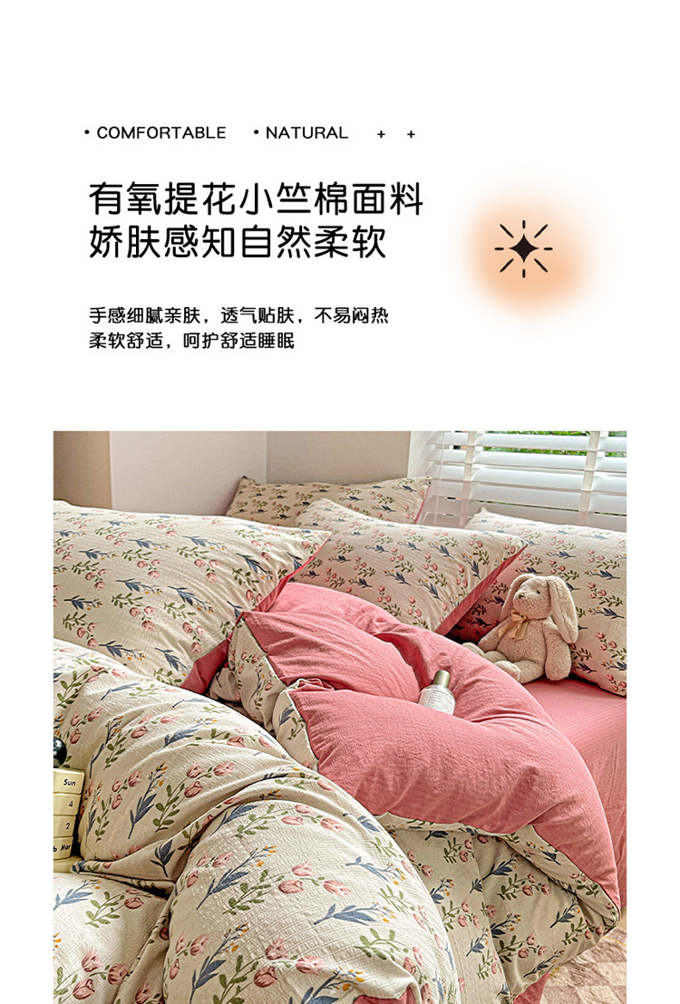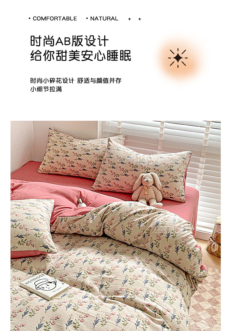 当前位置: 91家纺网 > 商品网购 > 床品套件 > 四件套 > 全棉普通四件套 > 暖芯优选2023新款超柔有氧小竺提花棉双层纱学生四件套 花漫