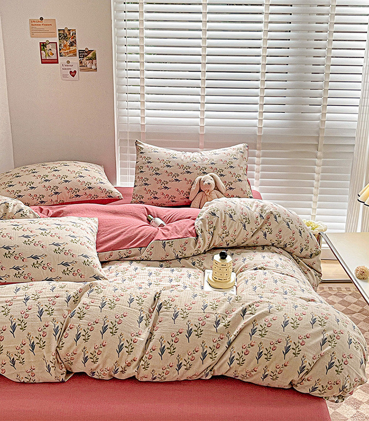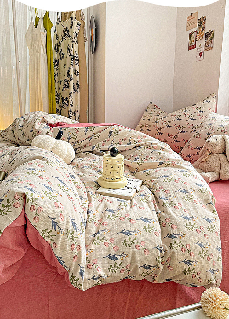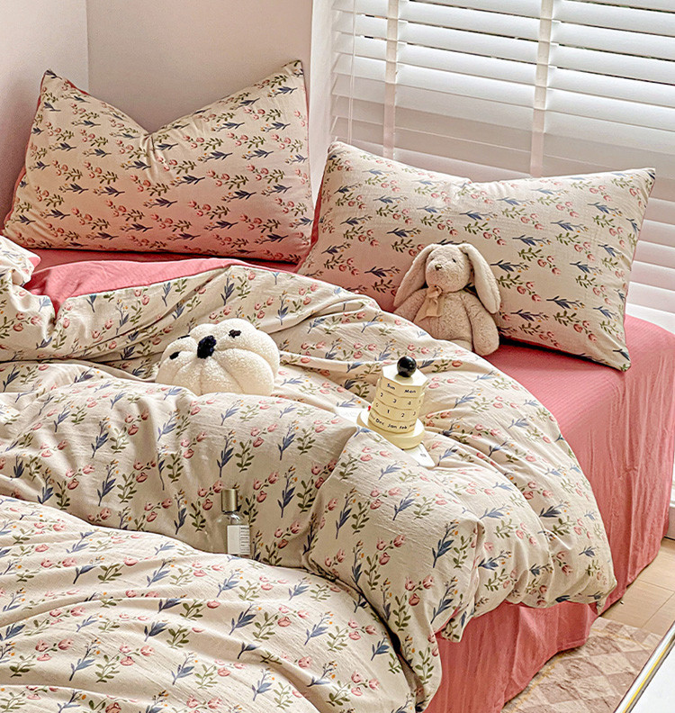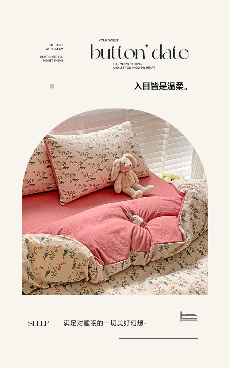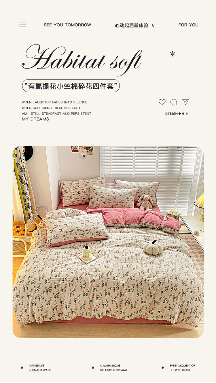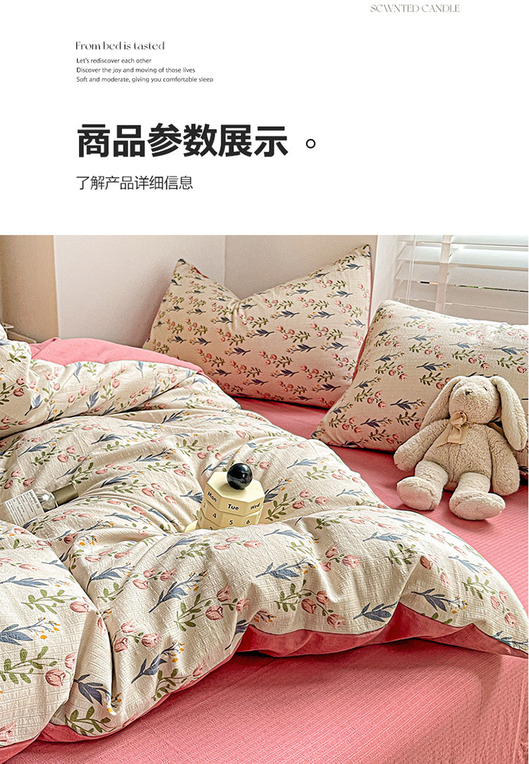 当前位置: 91家纺网 > 商品网购 > 床品套件 > 四件套 > 全棉普通四件套 > 暖芯优选2023新款超柔有氧小竺提花棉双层纱学生四件套 花漫