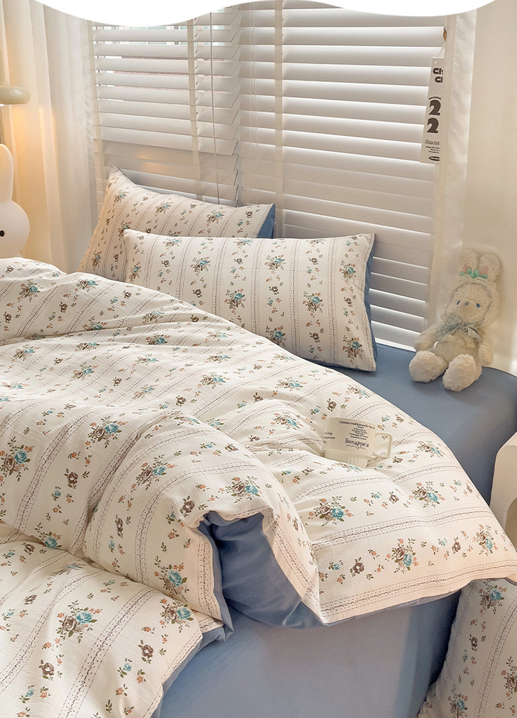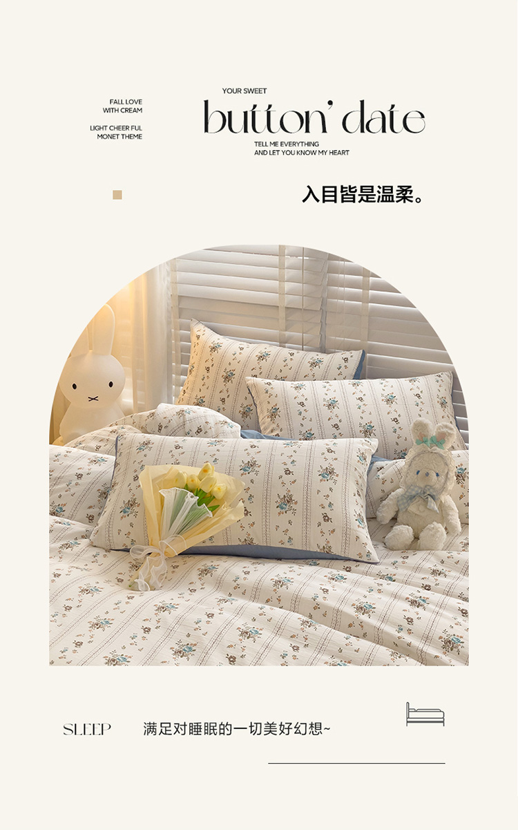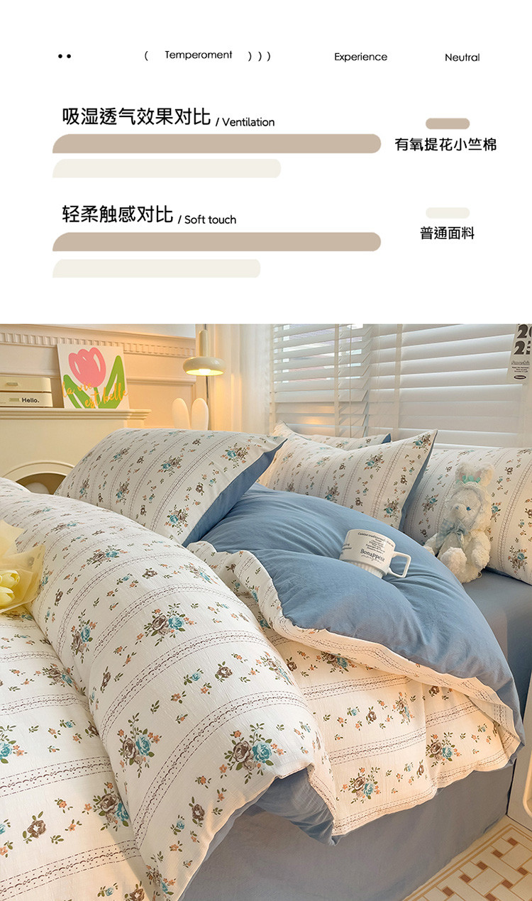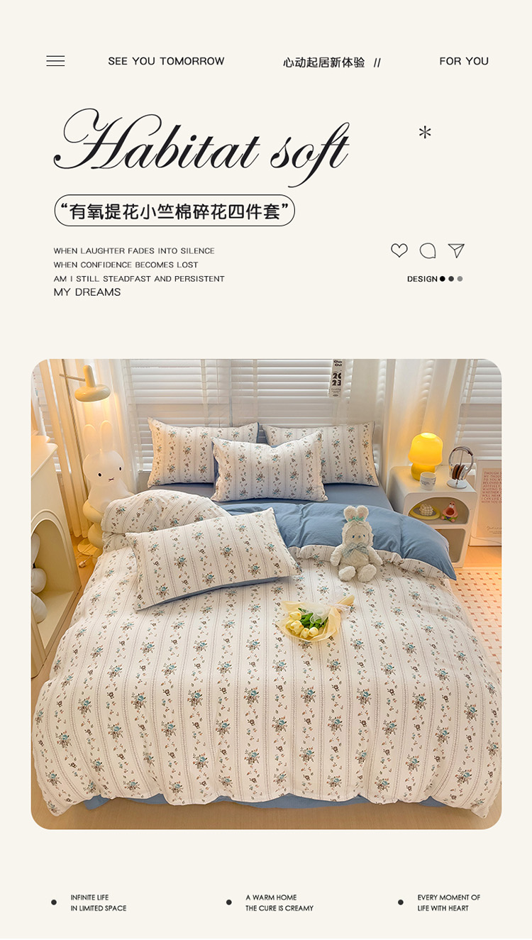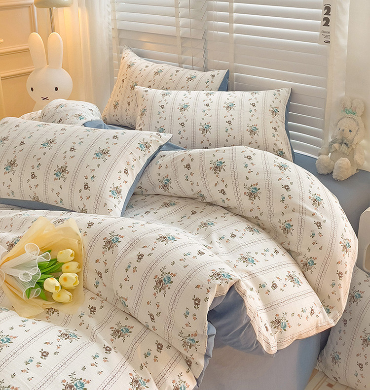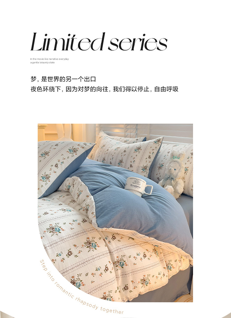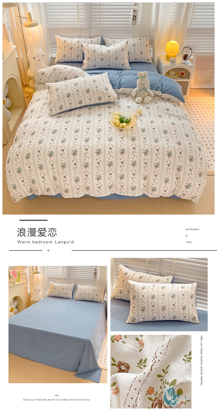 当前位置: 91家纺网 > 商品网购 > 床品套件 > 四件套 > 全棉普通四件套 > 暖芯优选2023新款超柔有氧小竺提花棉双层纱学生四件套 浪漫爱恋