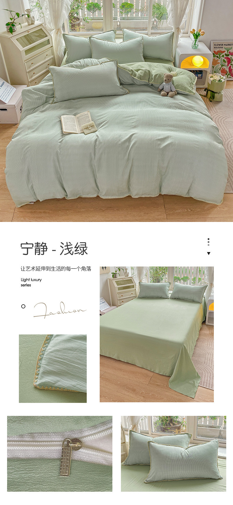 当前位置: 91家纺网 > 商品网购 > 床品套件 > 四件套 > 全棉普通四件套 > 暖芯优选 2023新款无印风贝壳绣双层纱棉麻水洗四件套 宁静-浅绿