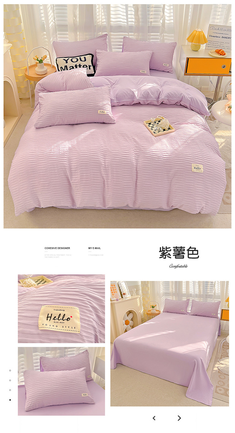 当前位置: 91家纺网 > 商品网购 > 床品套件 > 四件套 > 全棉普通四件套 > 暖芯优选 2023新款韩版泡泡纱水洗棉拼色床单床笠四件套 紫薯色