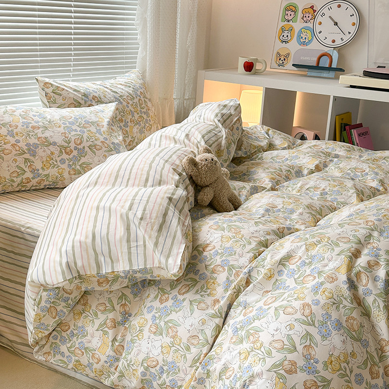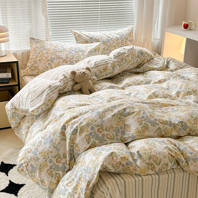 商品名称:昔可 2023新款全棉小清新兔子四件套 郁金小白兔