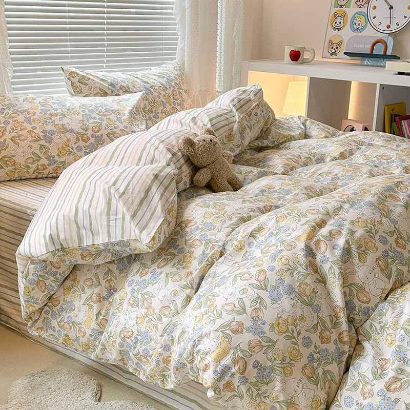 昔可 2023新款全棉小清新兔子四件套 郁金小白兔