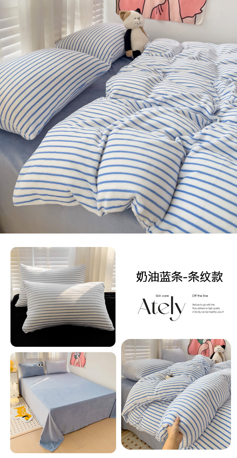 当前位置: 91家纺网 > 商品网购 > 床品套件 > 四件套 > 牛奶绒四件套 > 丽涵 2024秋冬新品牛奶绒博主风多巴胺条纹混搭保暖四件套 奶油蓝条-条纹款