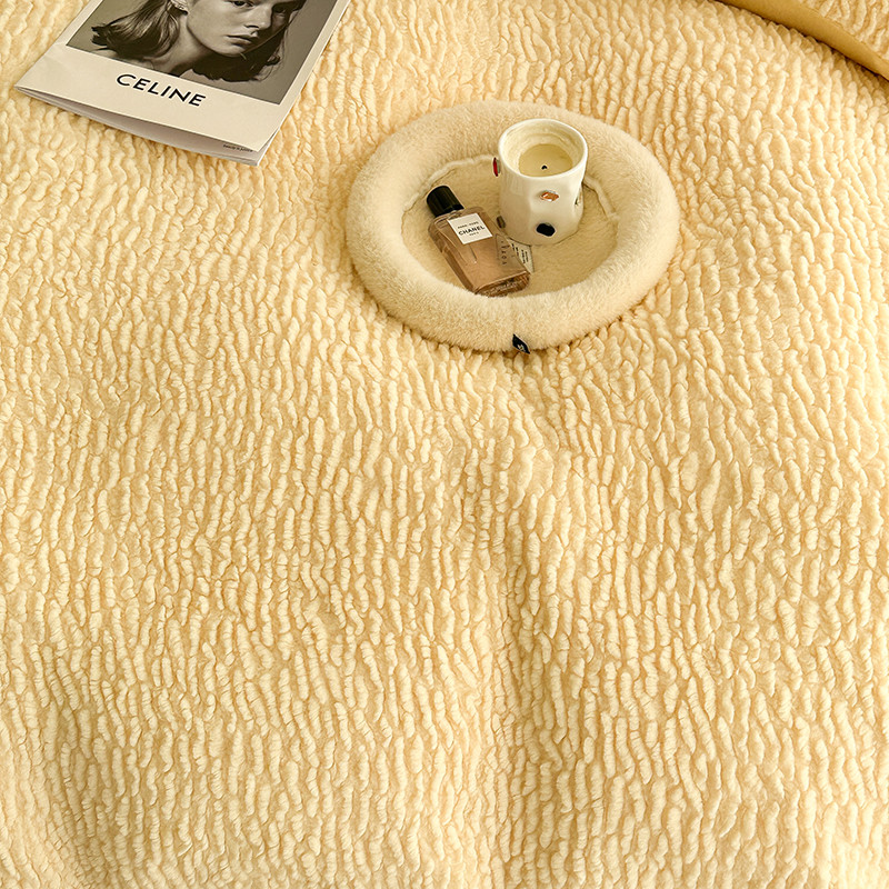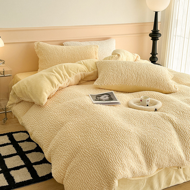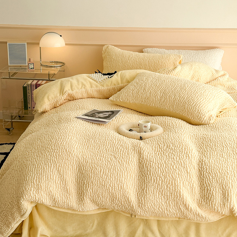 昔可 2023新款纯色泡芙云朵绒四件套 糯糯奶黄