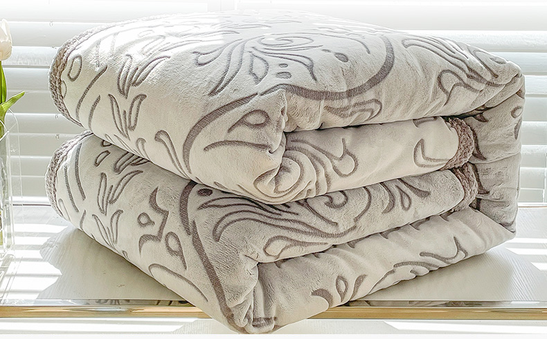 总来菲毛毯 2025新款阳离子剪花复合毛毯高端加厚双层毯子不掉毛高端毯,咖啡,灰色,灰蓝,粉色,草绿,黑色