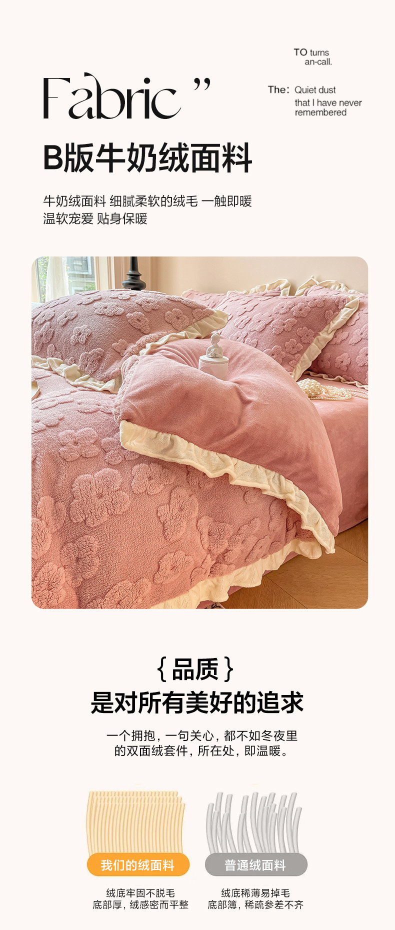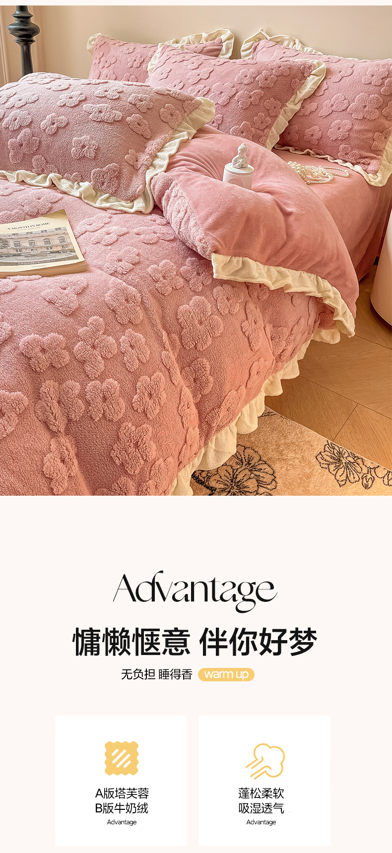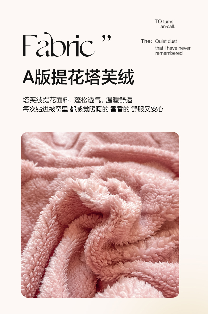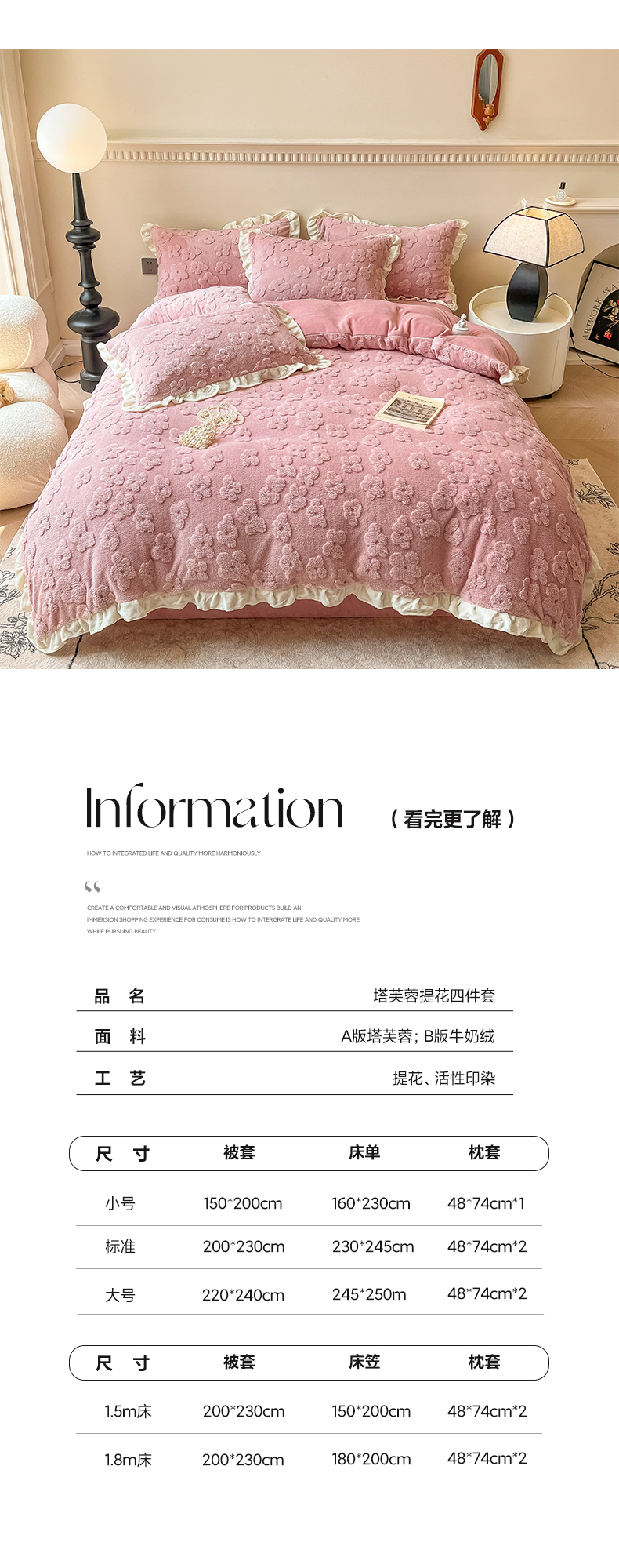 商品名称:沐辰 2023新款塔芙绒提花四件套-花开朵朵 花开朵朵-豆沙