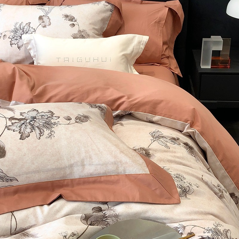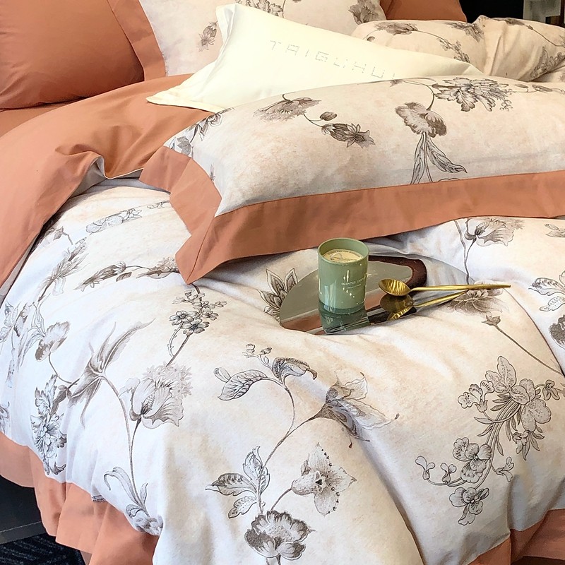 商品名称:太古汇 2023新款100棉火山小磨毛数码印花大宽边四件套 阿尔文-橙色