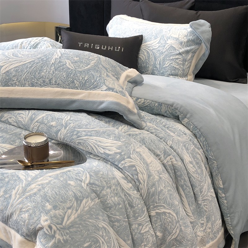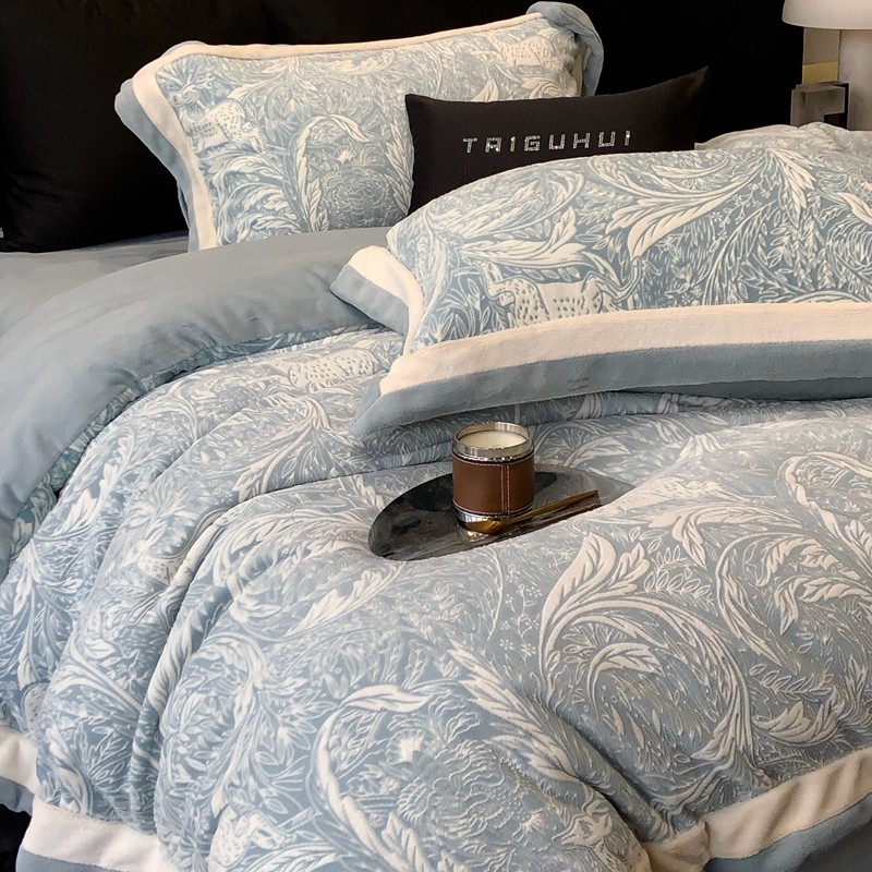 太古汇 2023新款230g双拼角牛奶绒四件套-维也纳系列 维也纳-蓝色