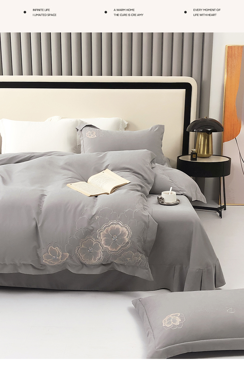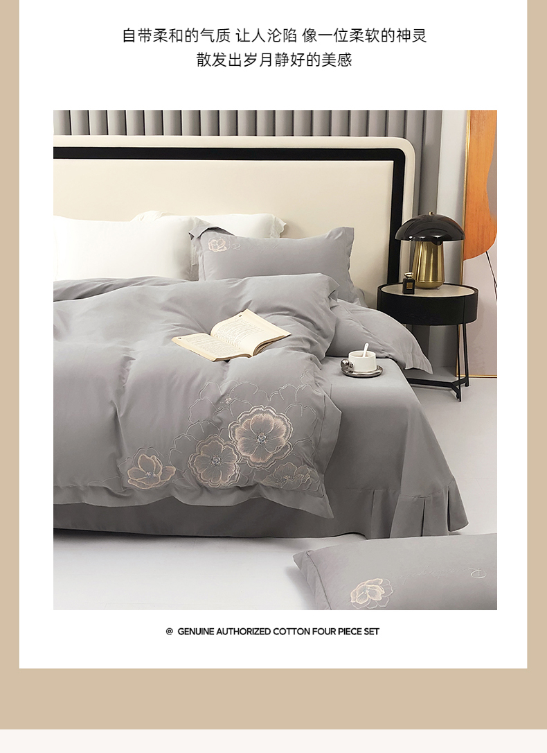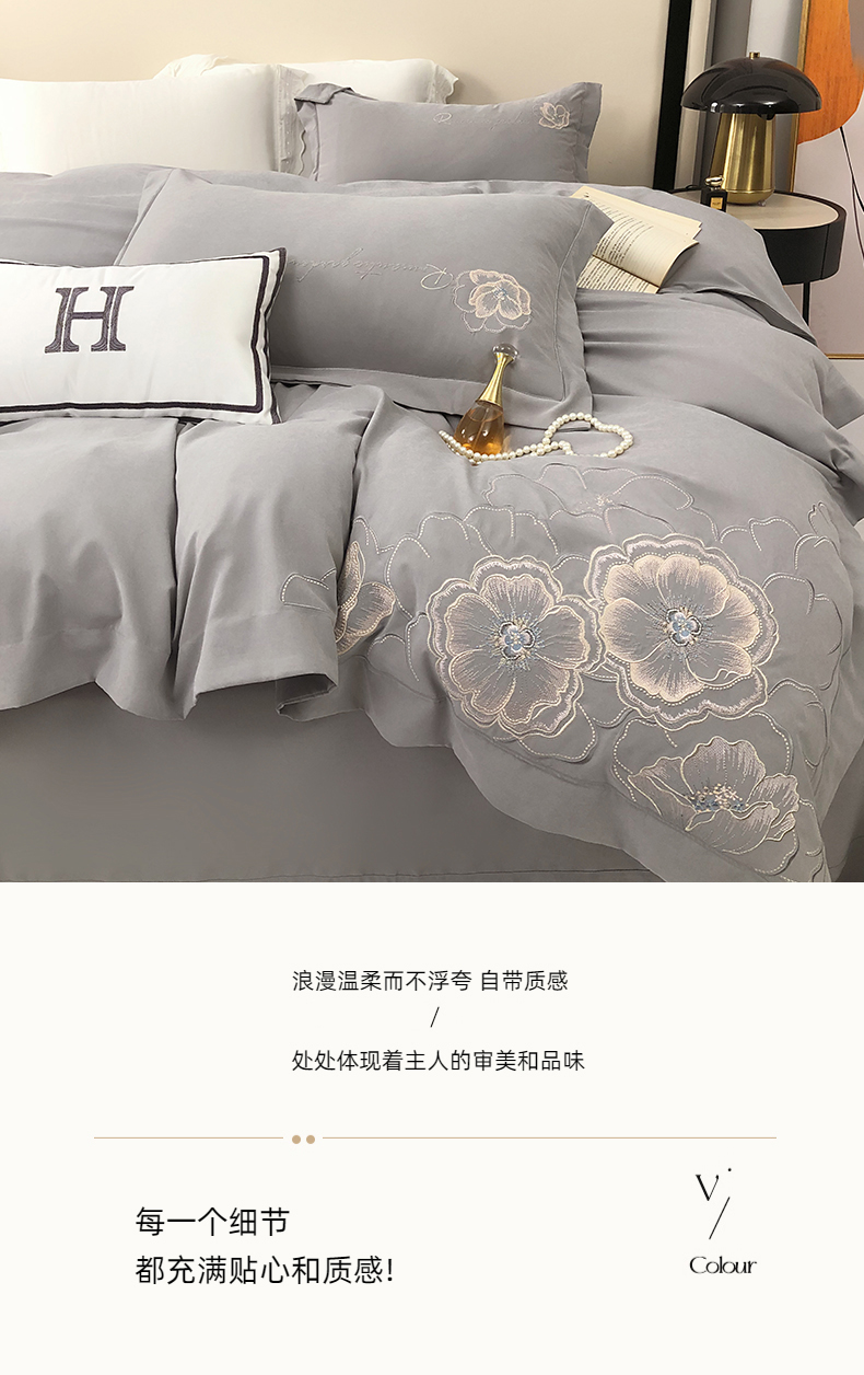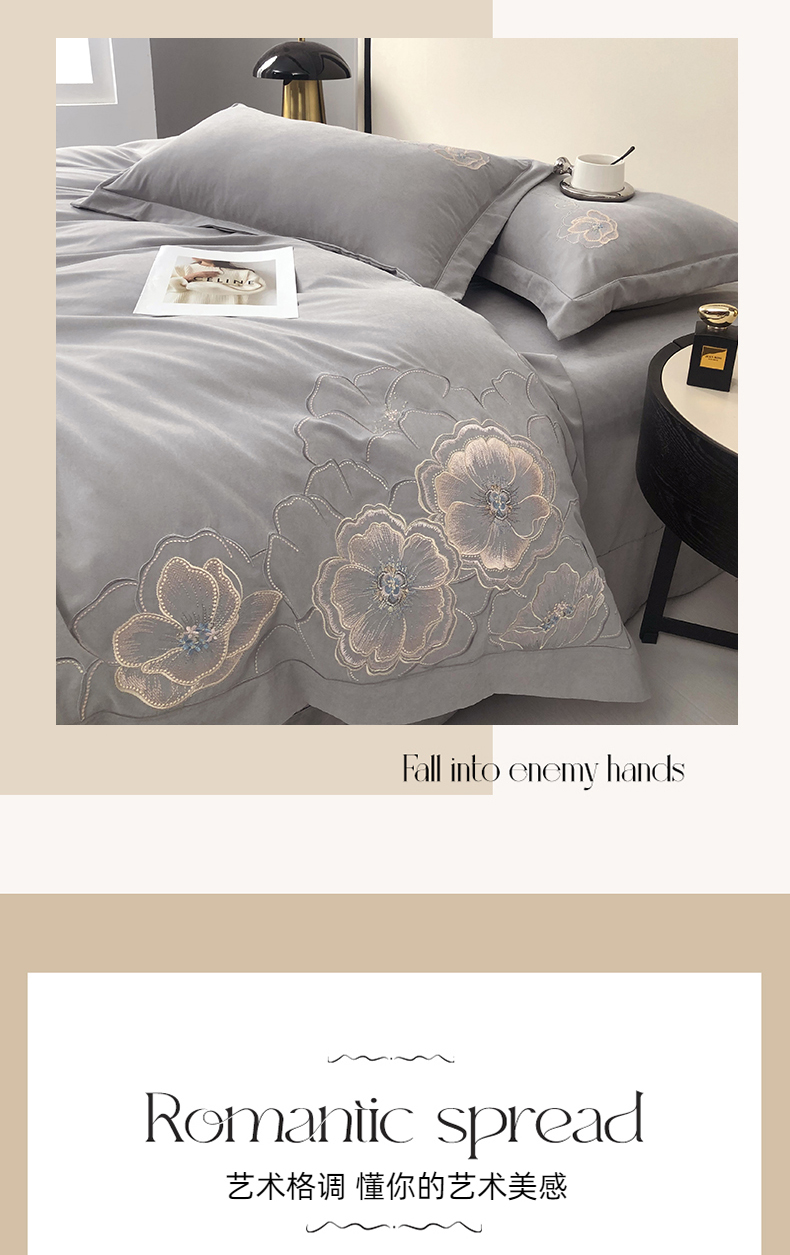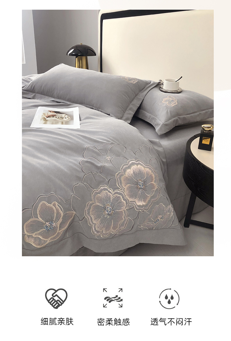 云锦家居 2024春夏新品云柔棉刺绣四件套-迪梦 迪梦-绅士灰