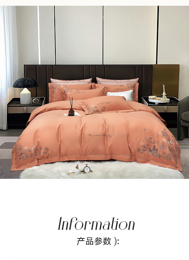 商品名称:云锦家居 2024春夏新品云柔棉刺绣四件套-南希 南希-爱妃橙