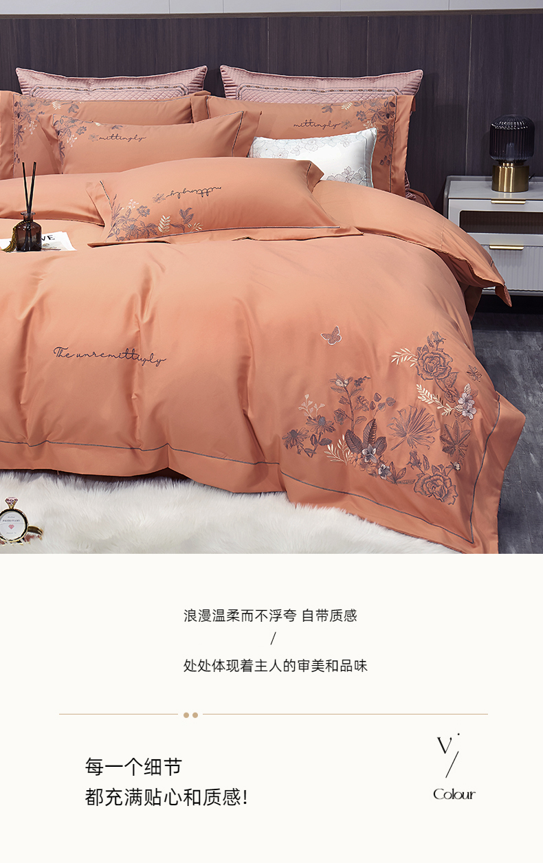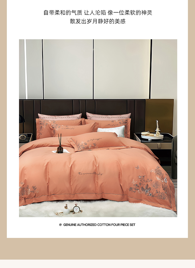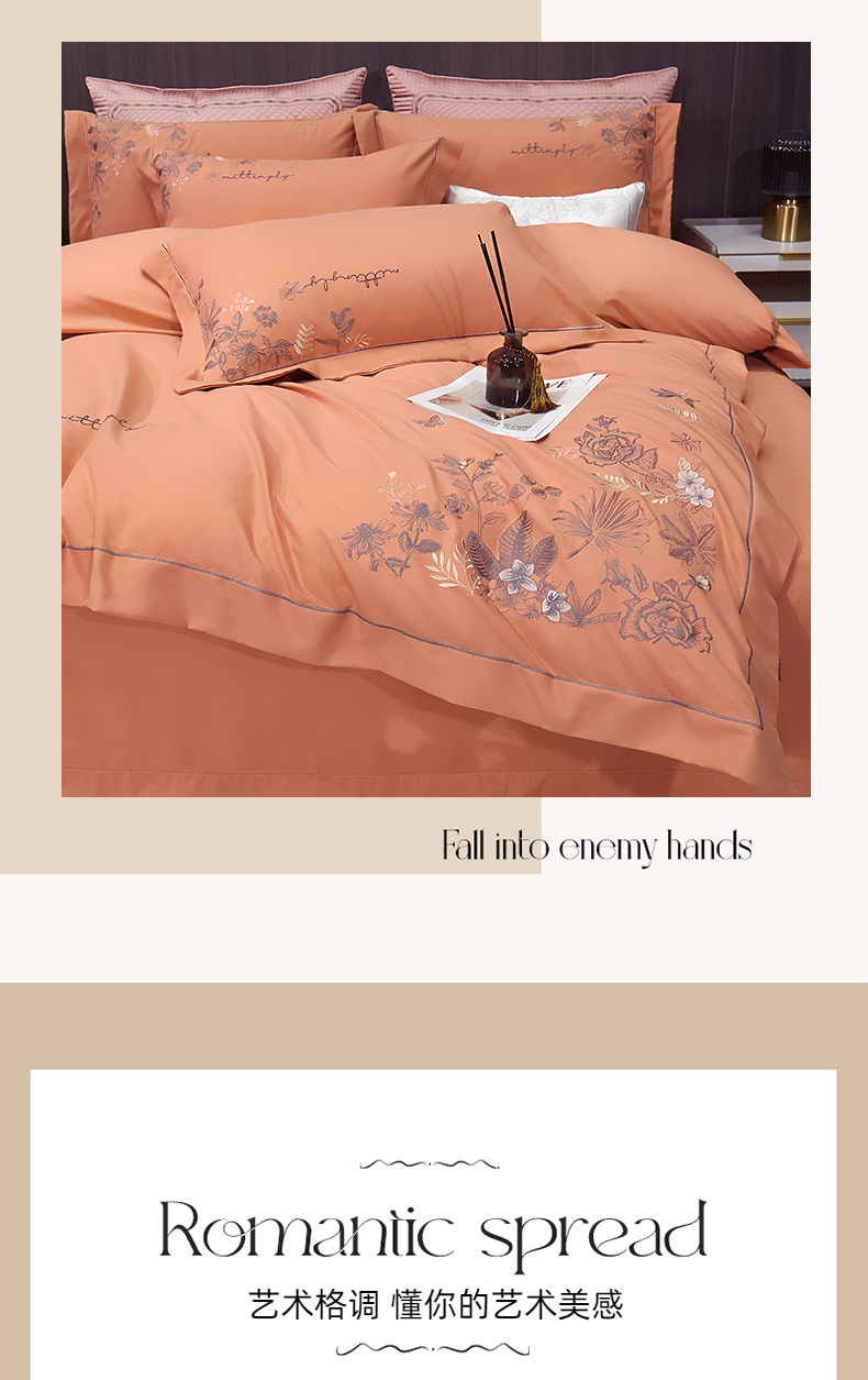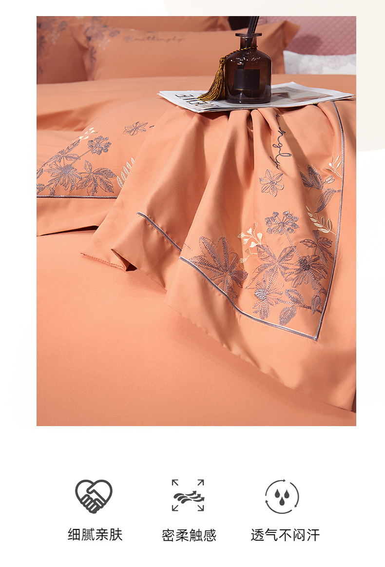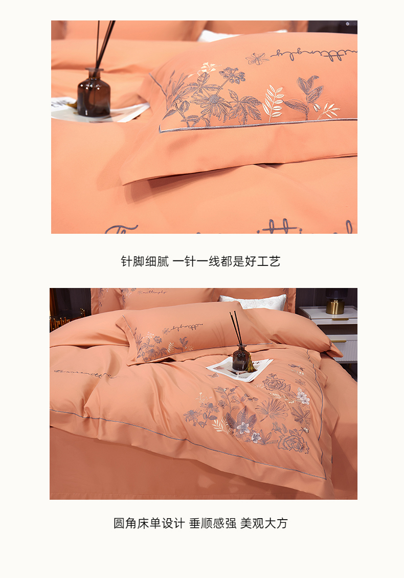 云锦家居 2024春夏新品云柔棉刺绣四件套-南希 南希-爱妃橙