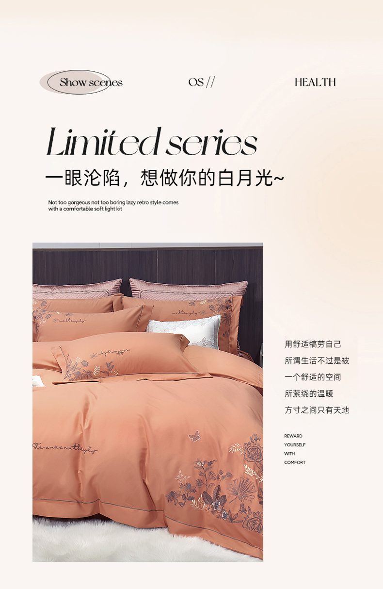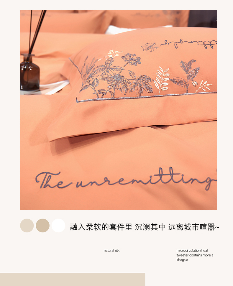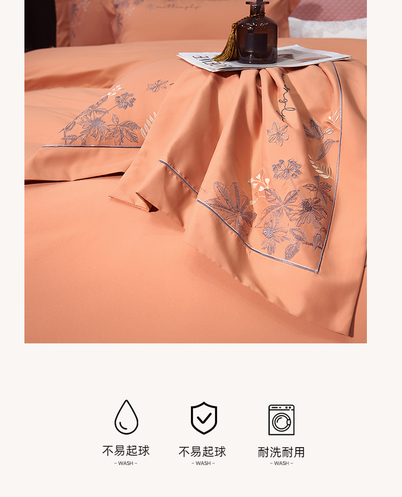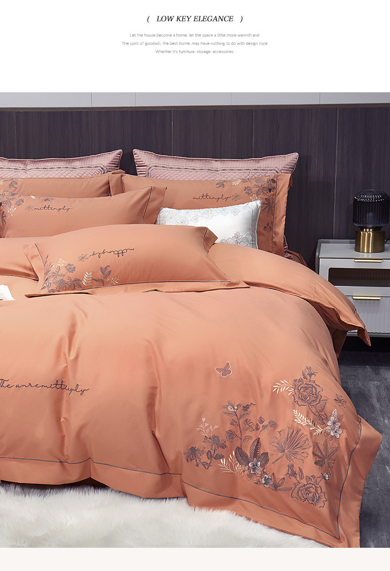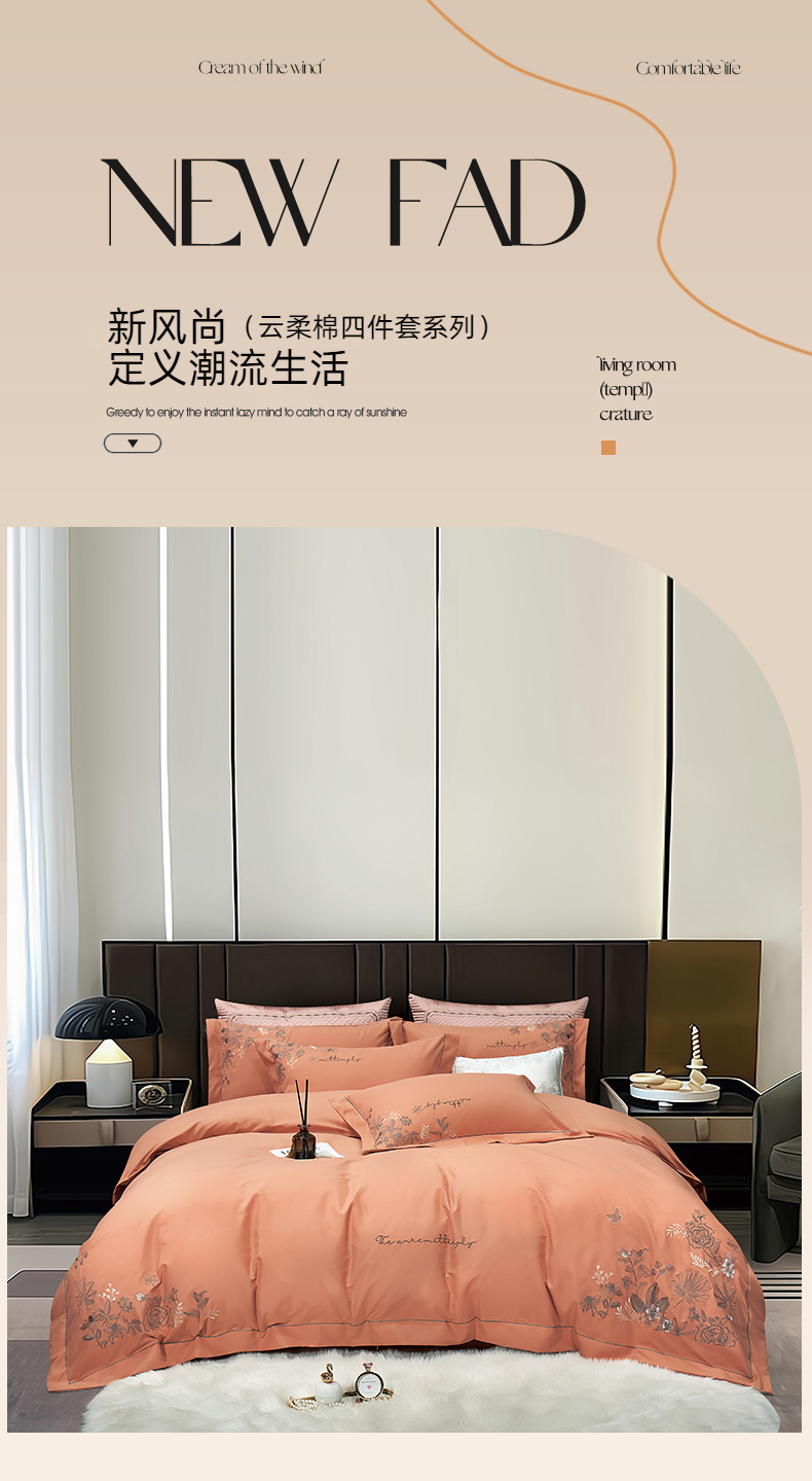 云锦家居 2024春夏新品云柔棉刺绣四件套-南希 南希-爱妃橙