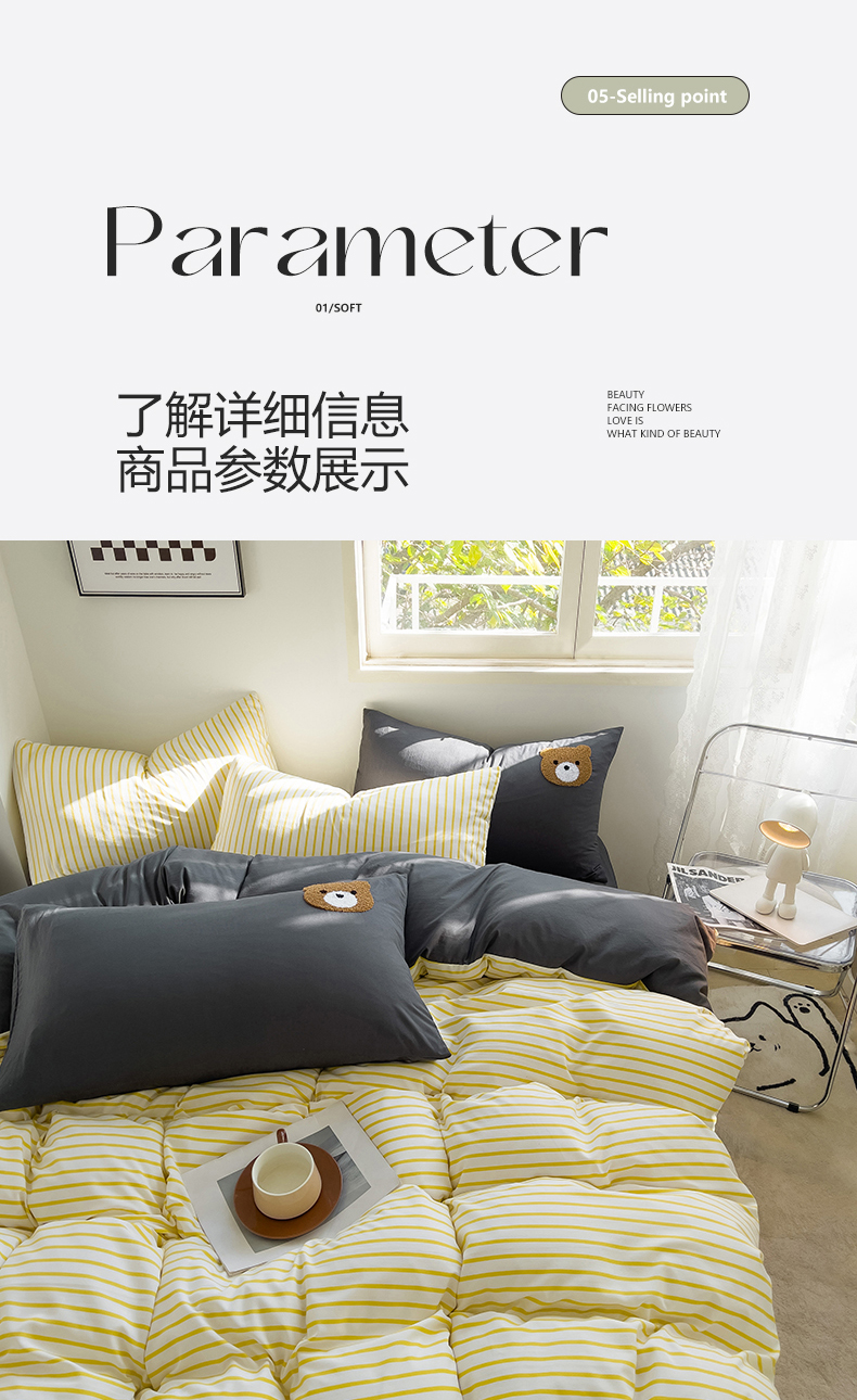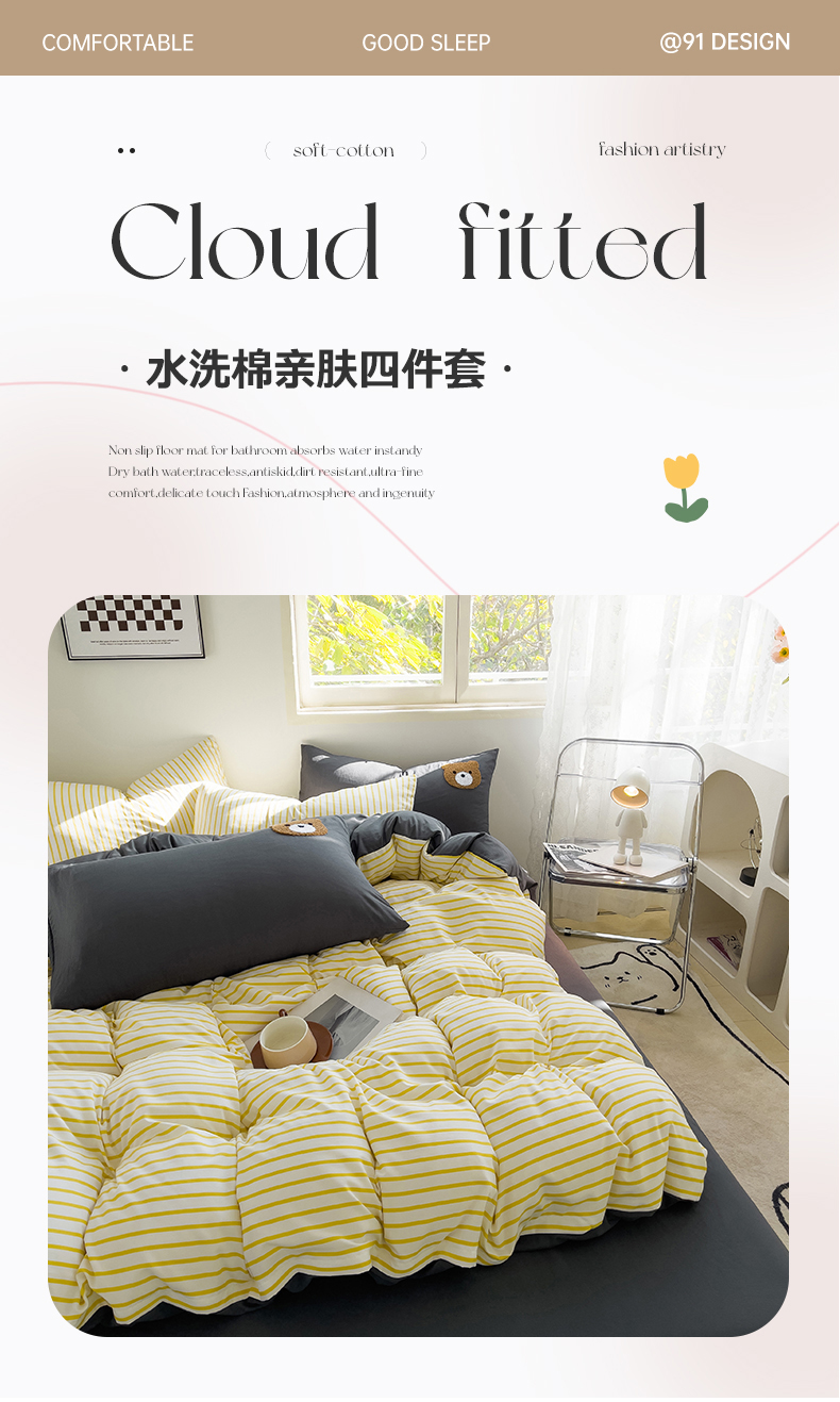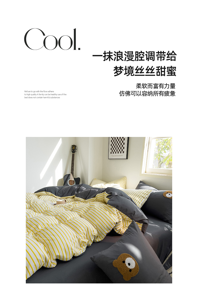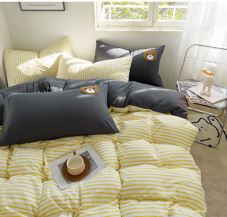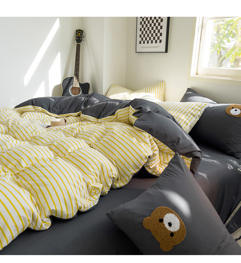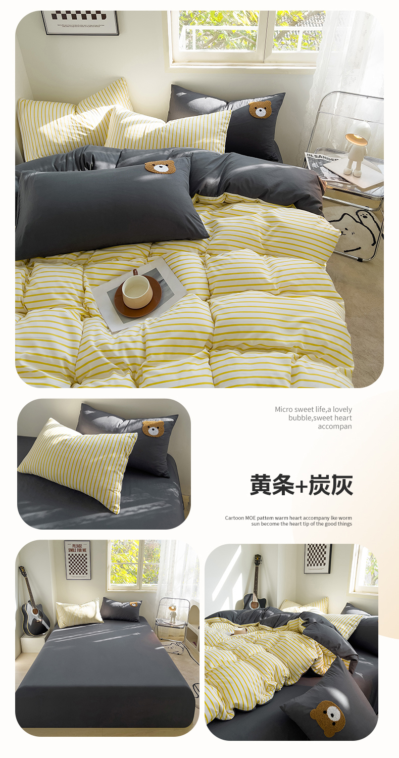 当前位置: 91家纺网 > 商品网购 > 床品套件 > 四件套 > 水洗棉四件套 > 梦嘉居 2024新款 直播热款A类ins风超柔亲肤磨毛水洗棉条纹毛巾绣被套,床笠,三件套四件套 黄条+炭灰
