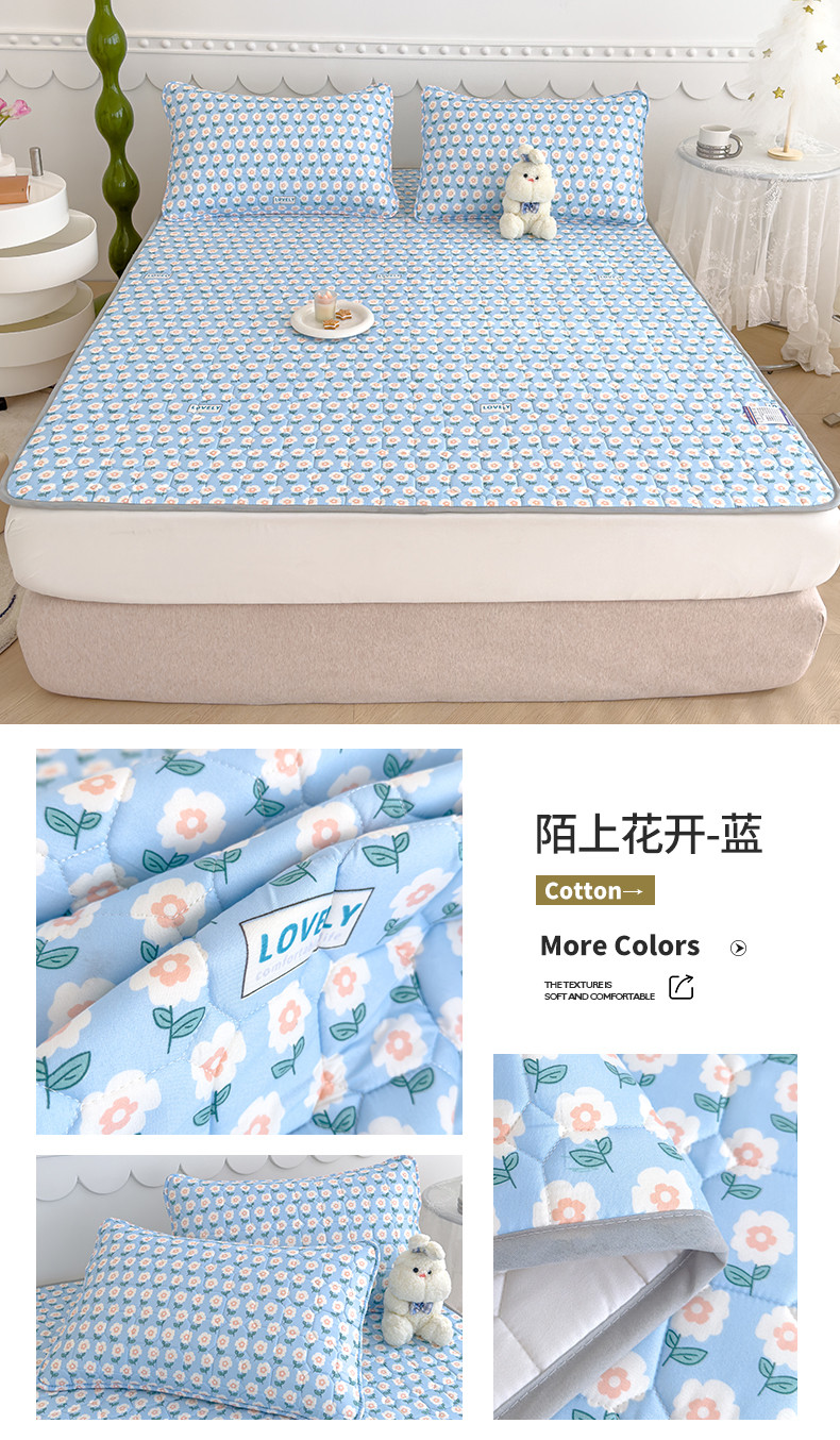 商品名称:伊人坊 2024新款亲肤水洗薄款软床垫防滑床护垫床褥学生垫子可机洗 陌上花开-蓝