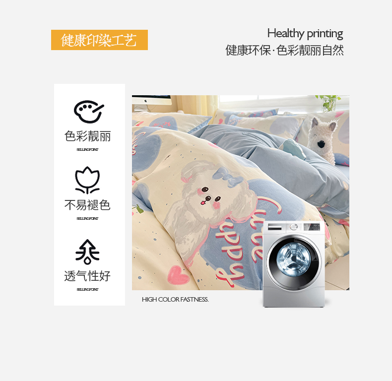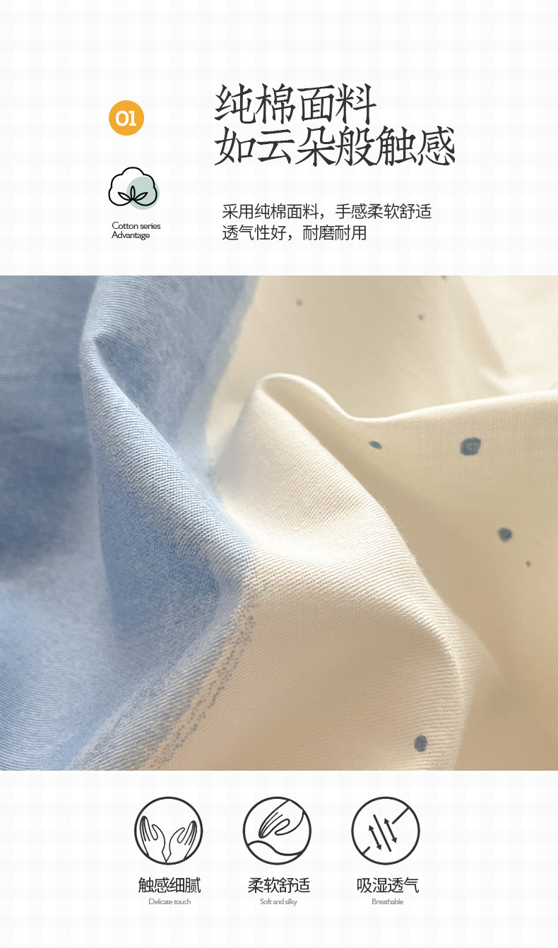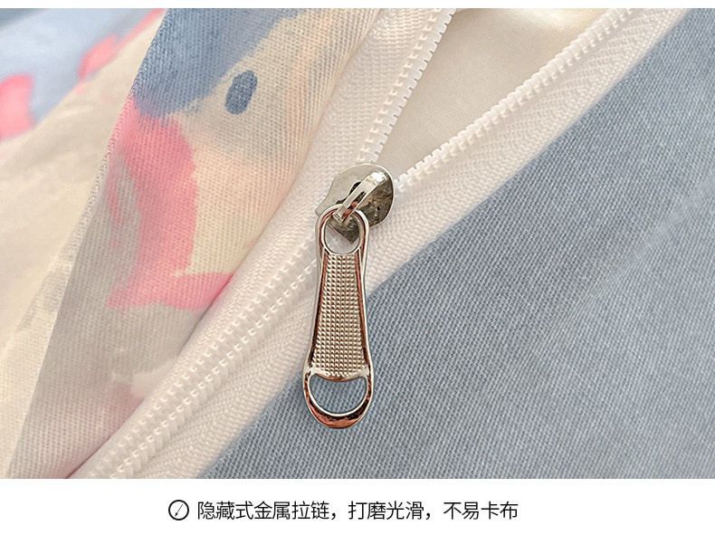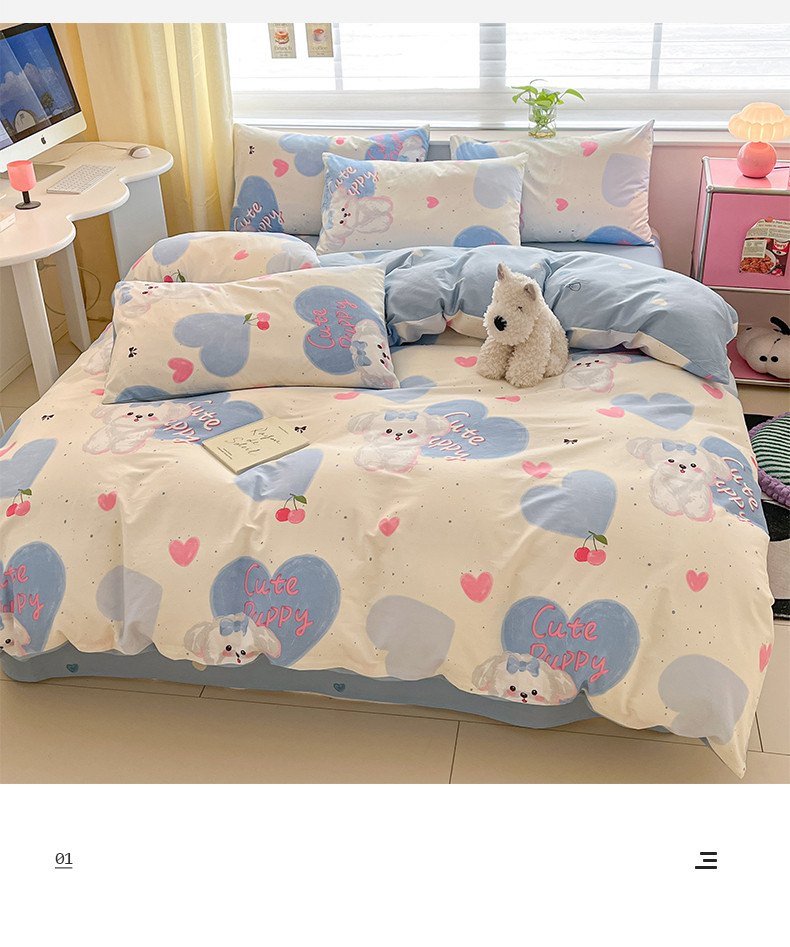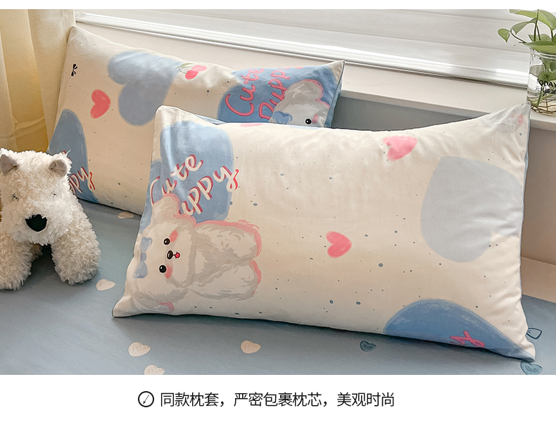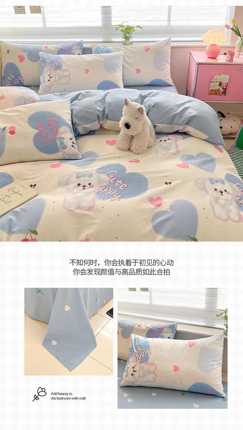 商品名称:桃子家居 2024新款纯棉13372粉梦可爱小清新卡通系列四件套 棉-蓝心萌宠
