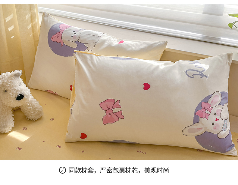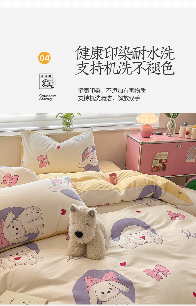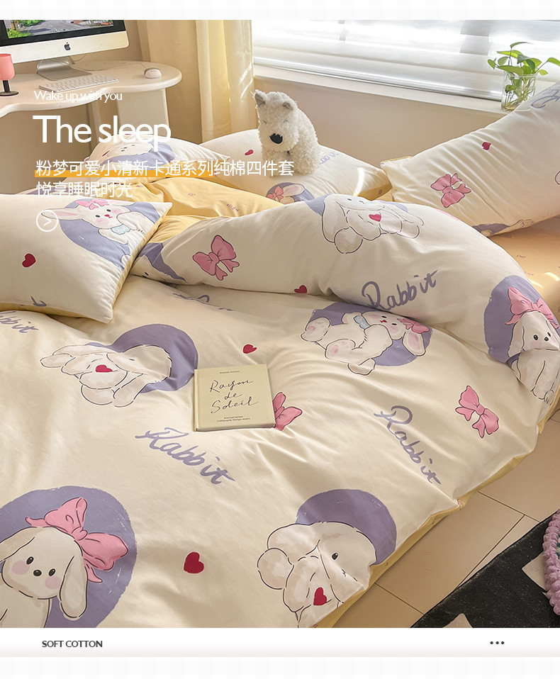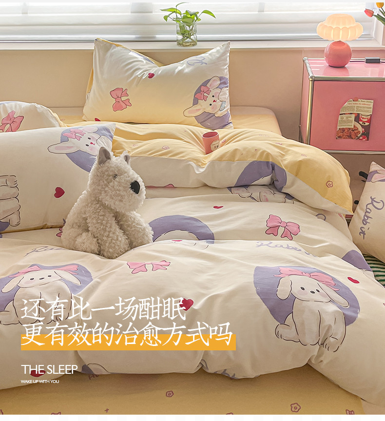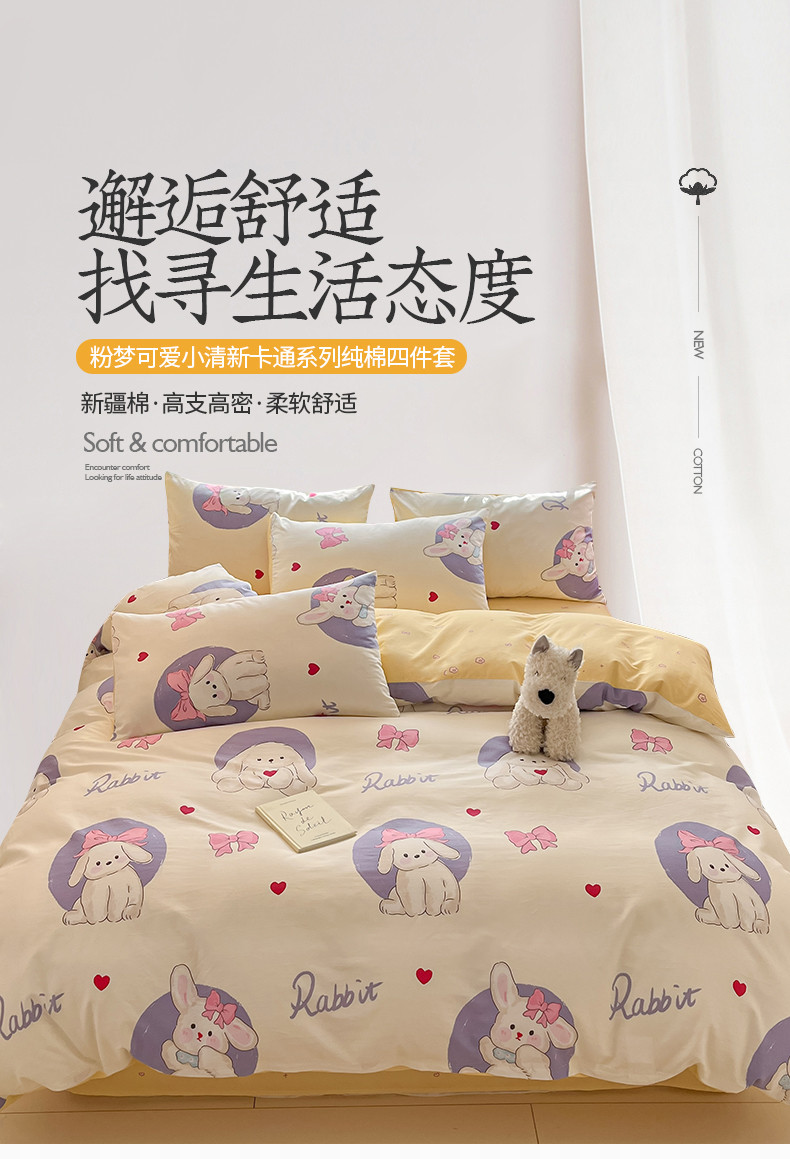 商品名称:桃子家居 2024新款纯棉13372粉梦可爱小清新卡通系列四件套 棉-甜梦乐园