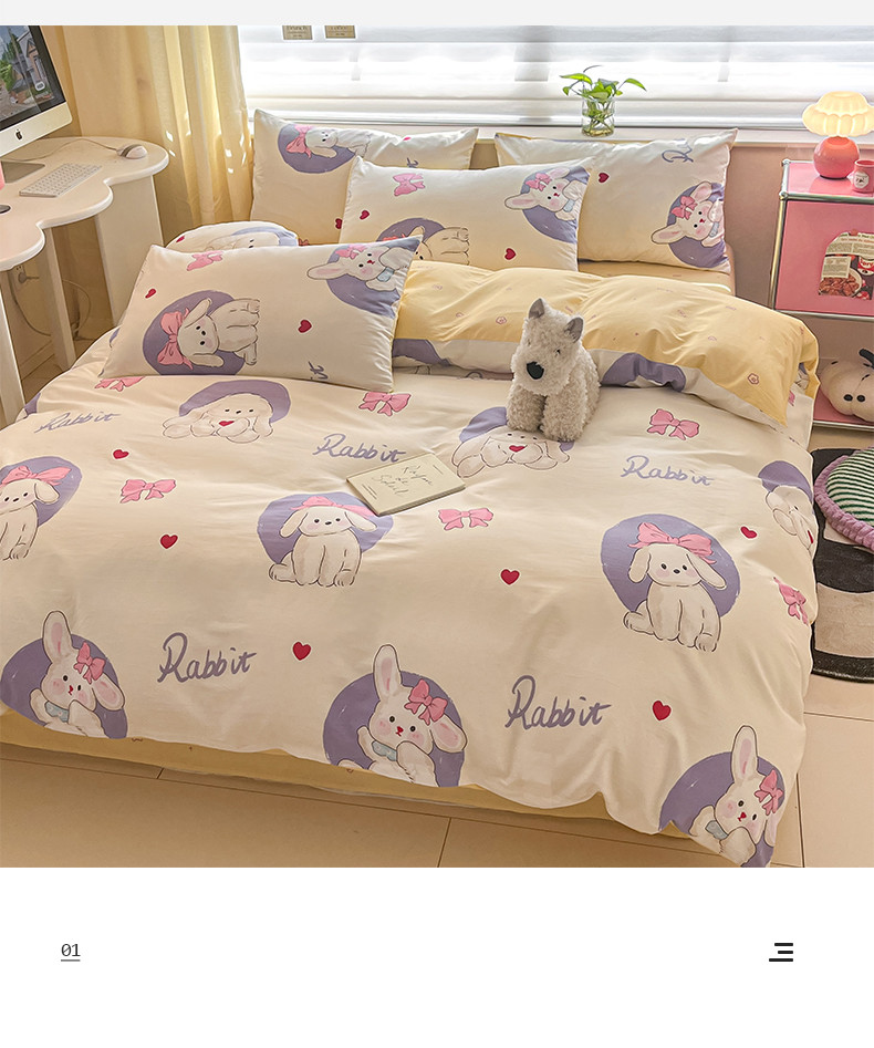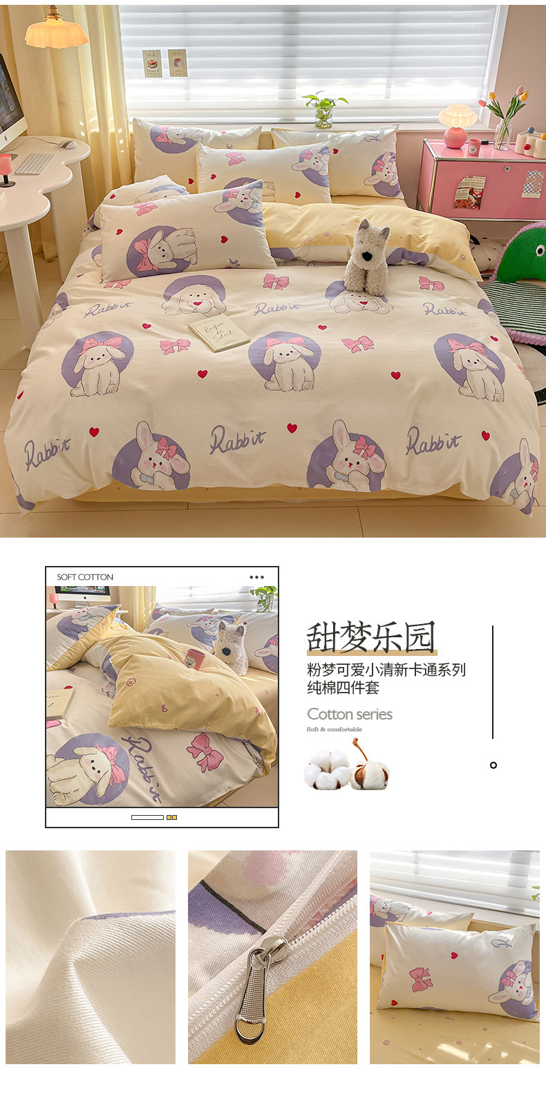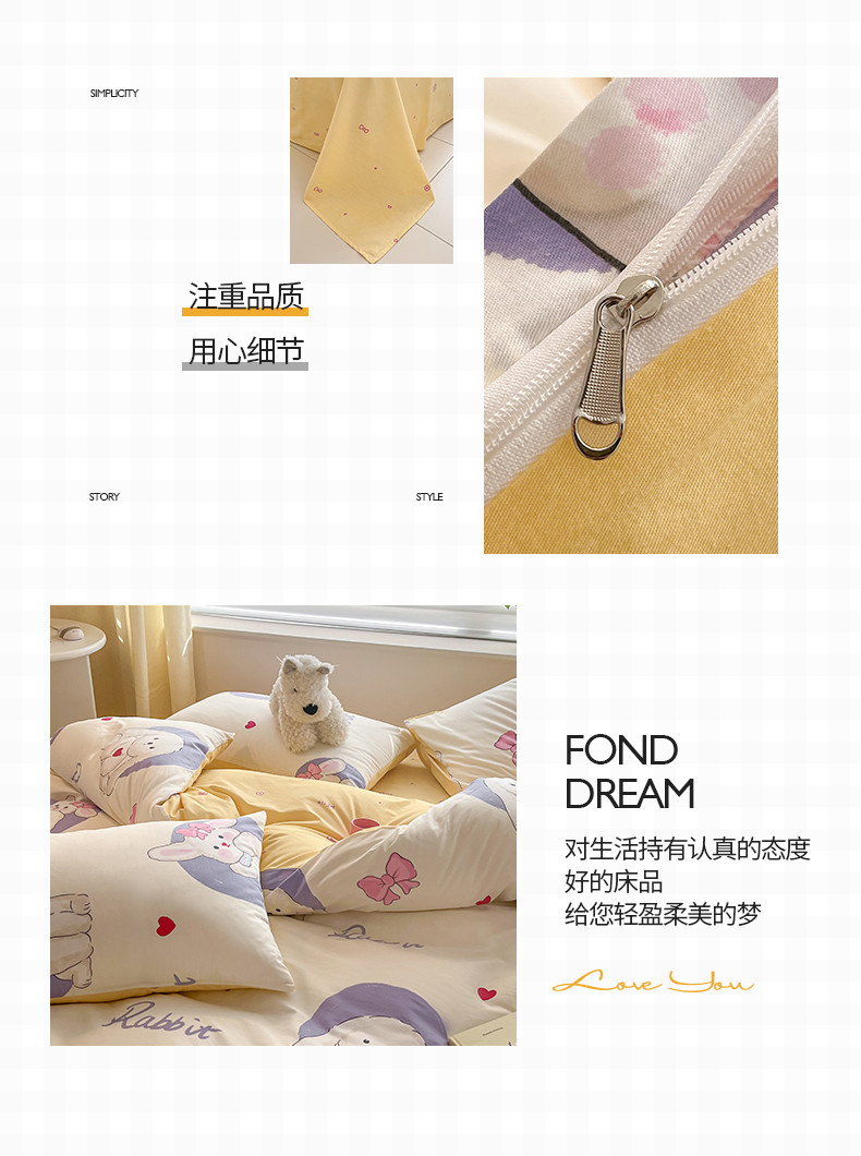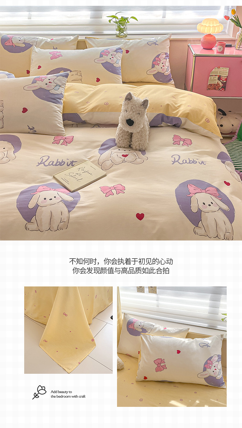 商品名称:桃子家居 2024新款纯棉13372粉梦可爱小清新卡通系列四件套 棉-甜梦乐园