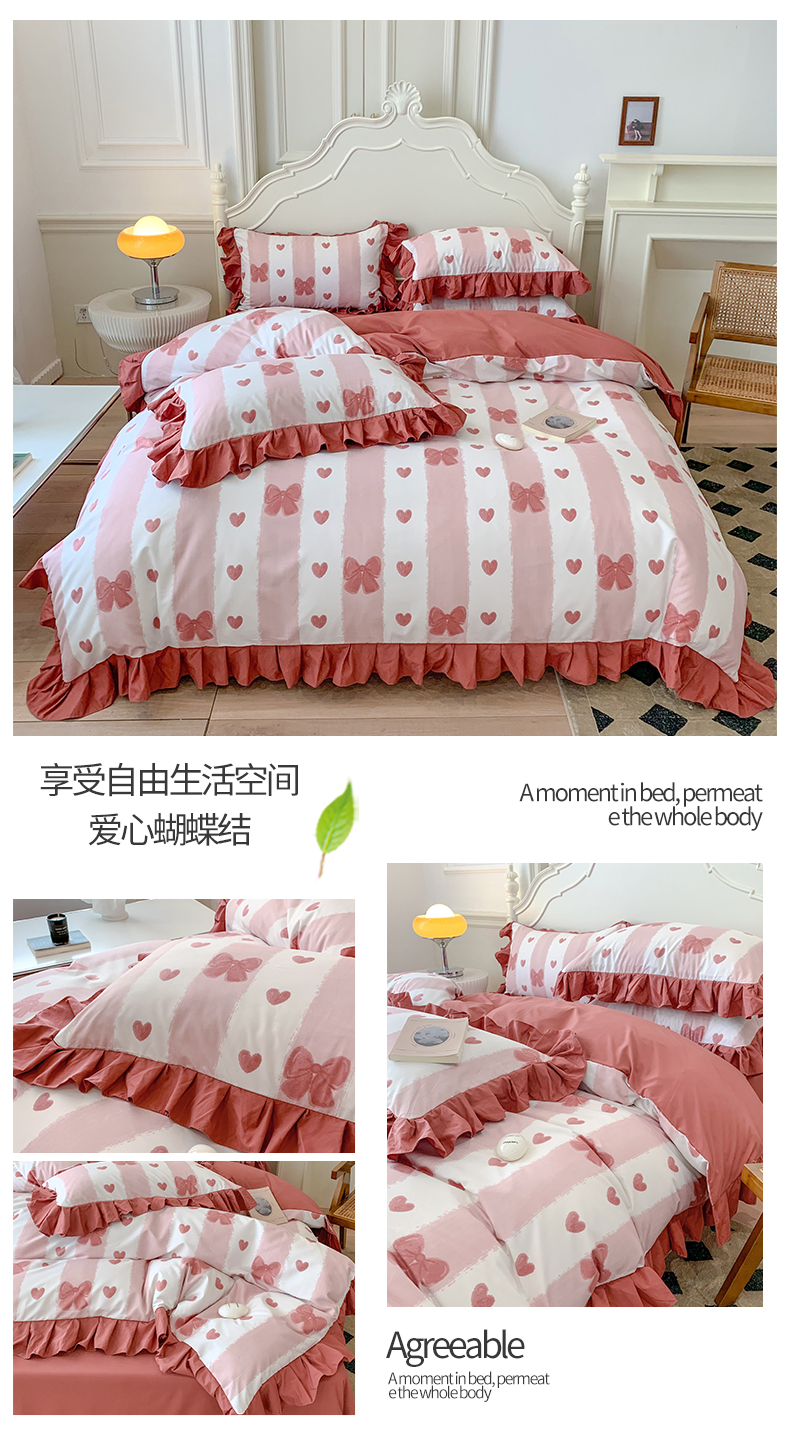商品名称:吾欢心 2025新款法式A类有氧双层纱四件套 爱心蝴蝶结