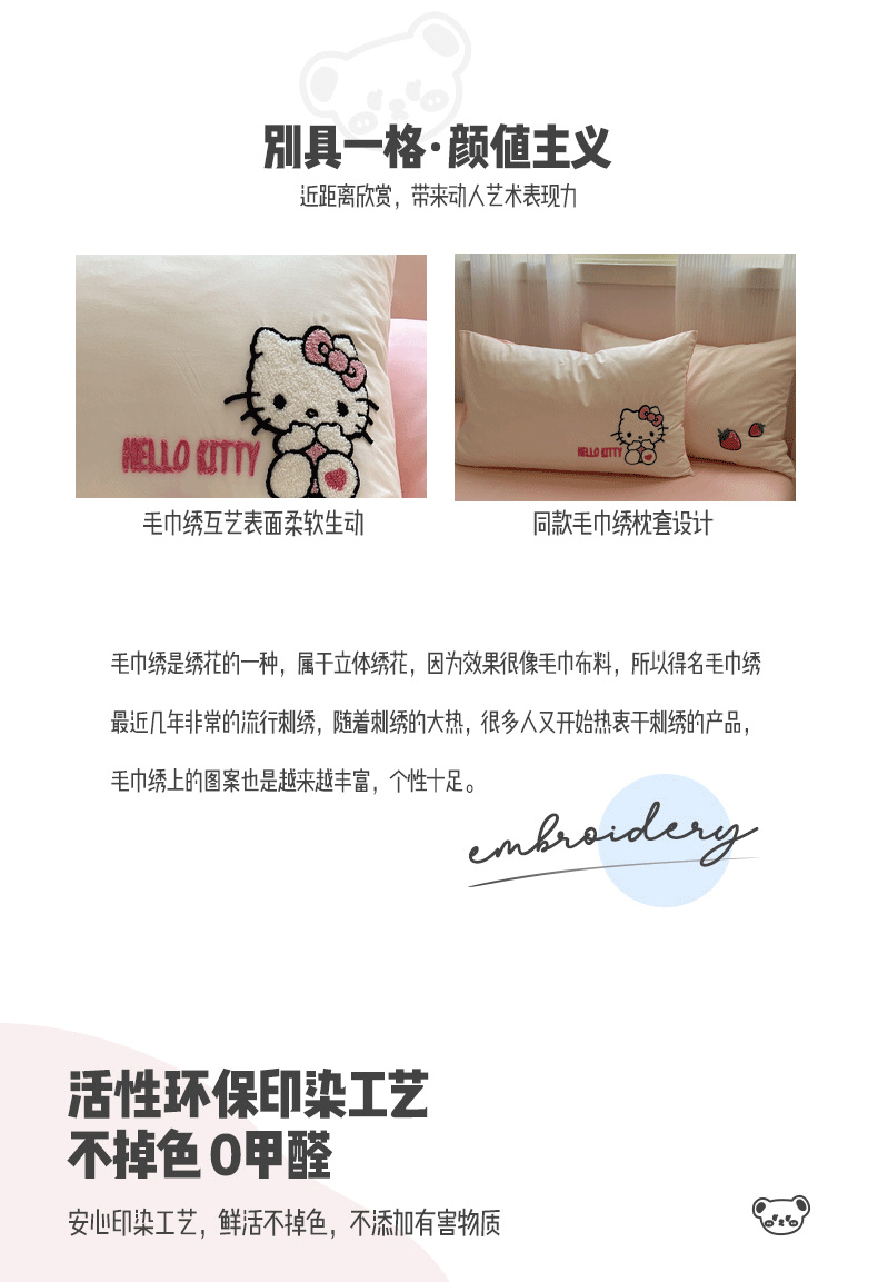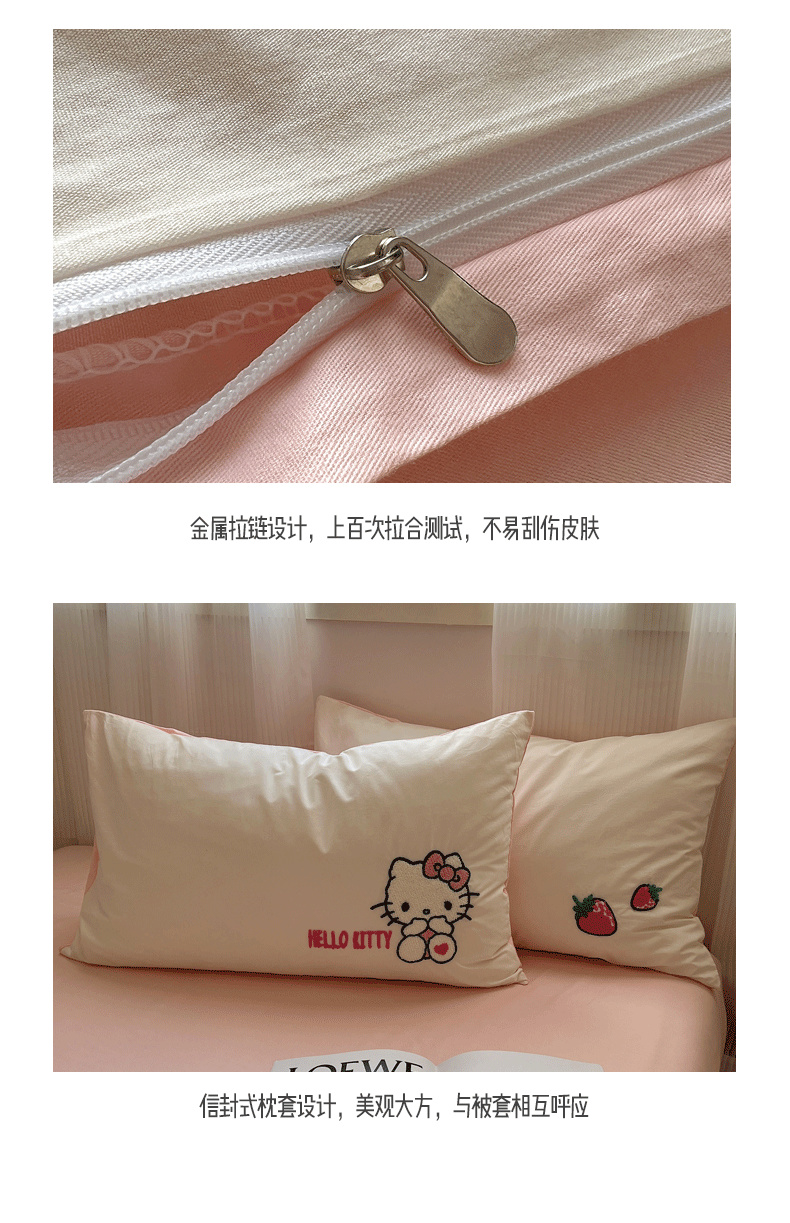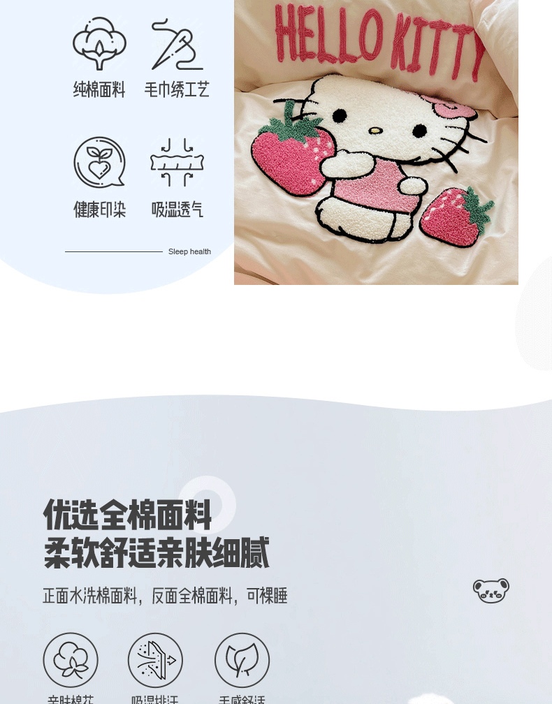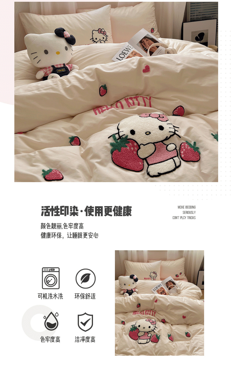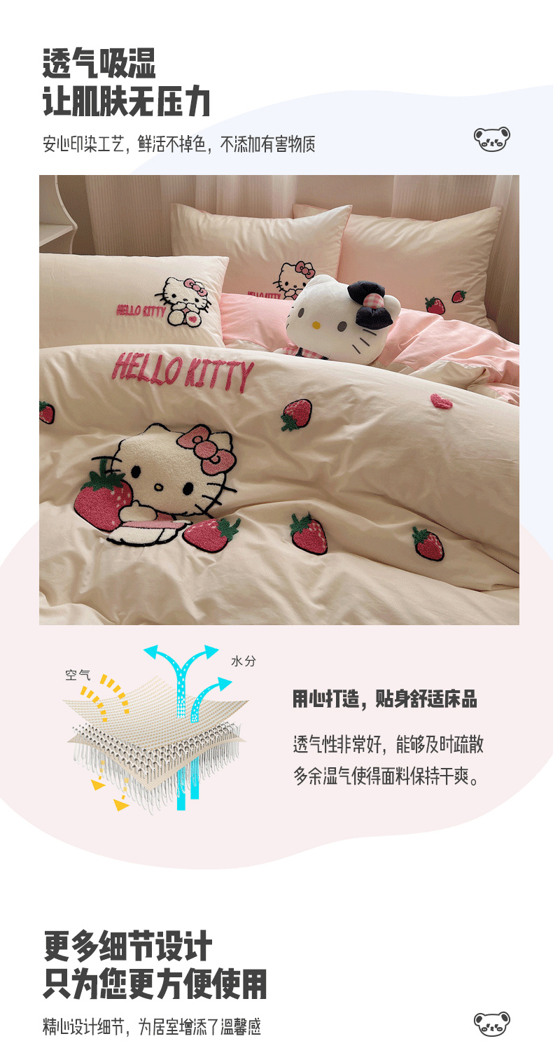 商品名称:三朵家纺 2024新款春夏全棉三丽鸥毛巾绣四件套 草莓KT
