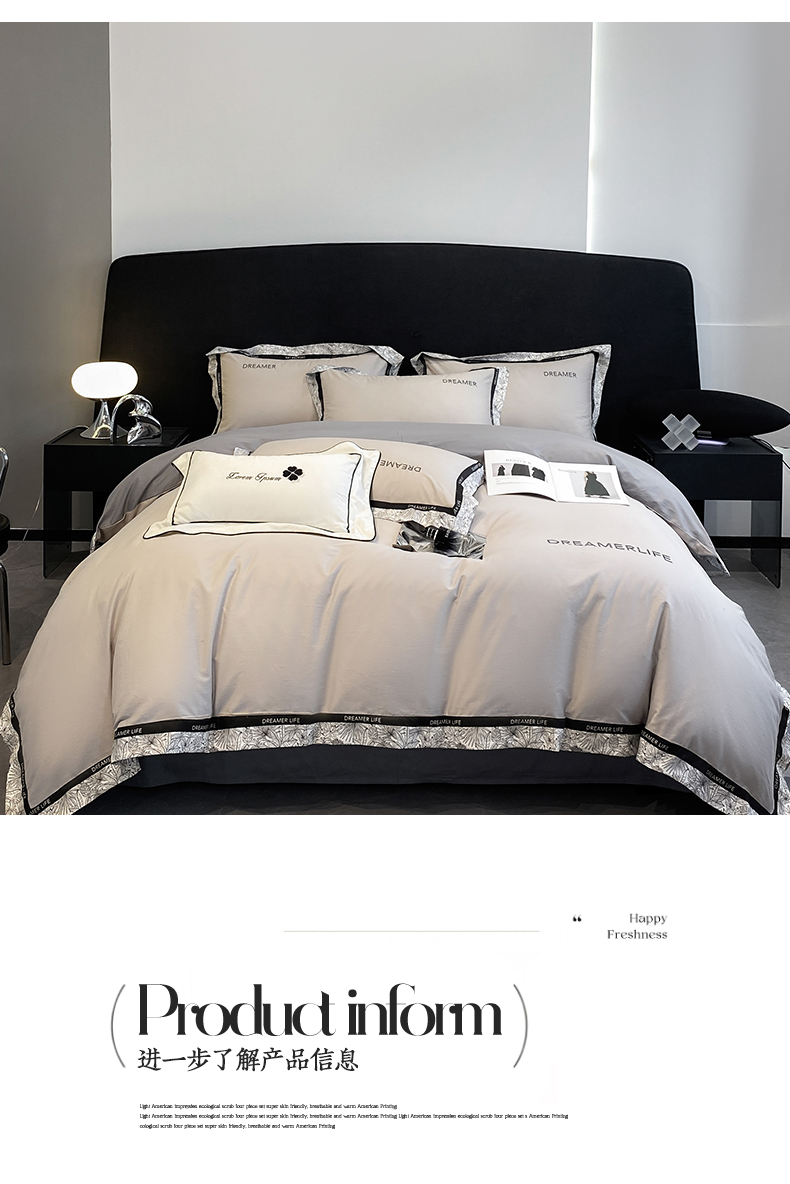 笙意家纺 2025新款全棉刺绣拼边四件套 山灰+中灰