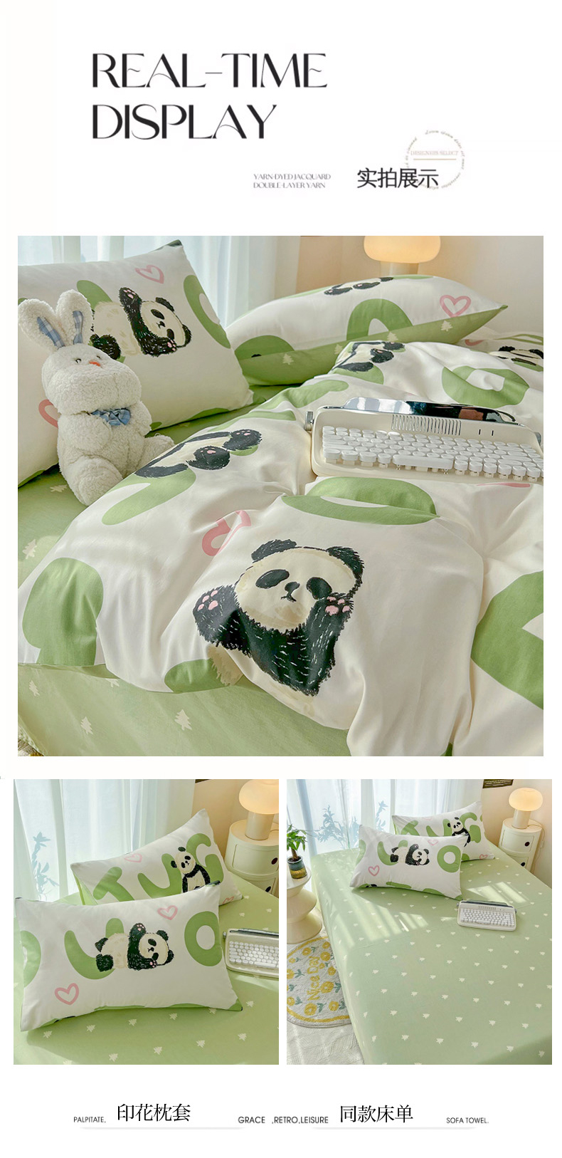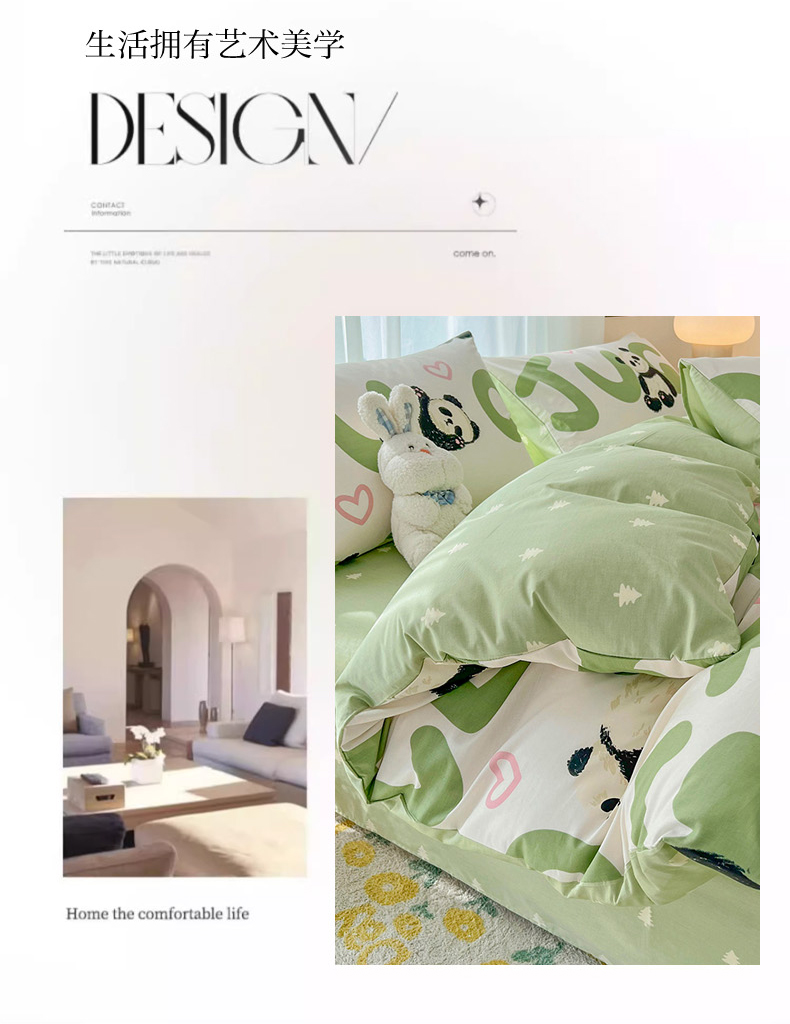 商品名称:倾慕家纺 2024新款时尚风全棉13070亲肤印花系列四件套 米兜熊猫