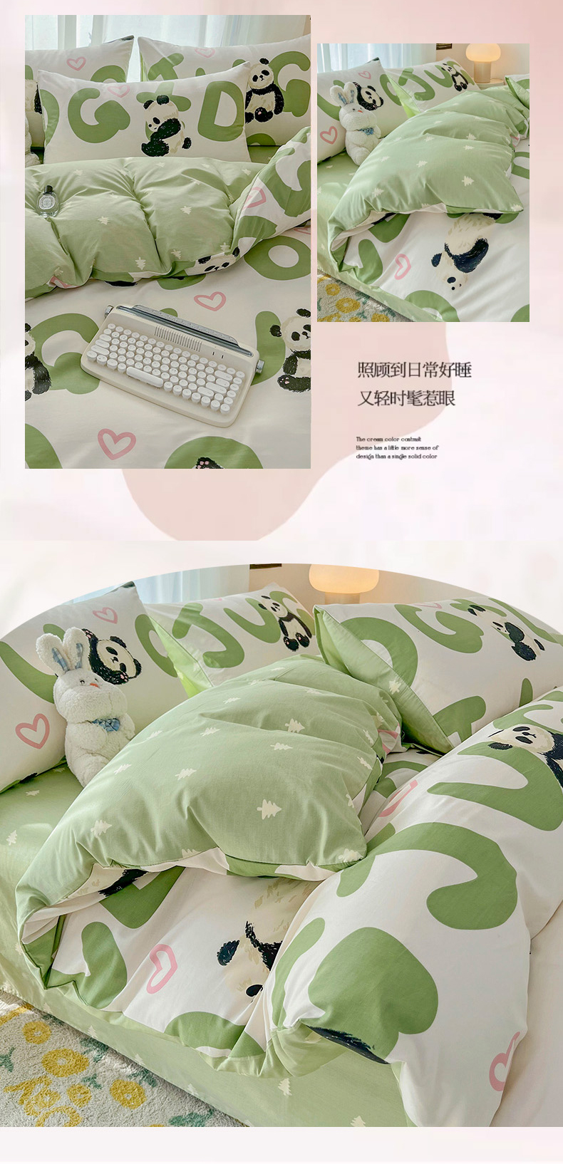 倾慕家纺 2024新款时尚风全棉13070亲肤印花系列四件套 米兜熊猫