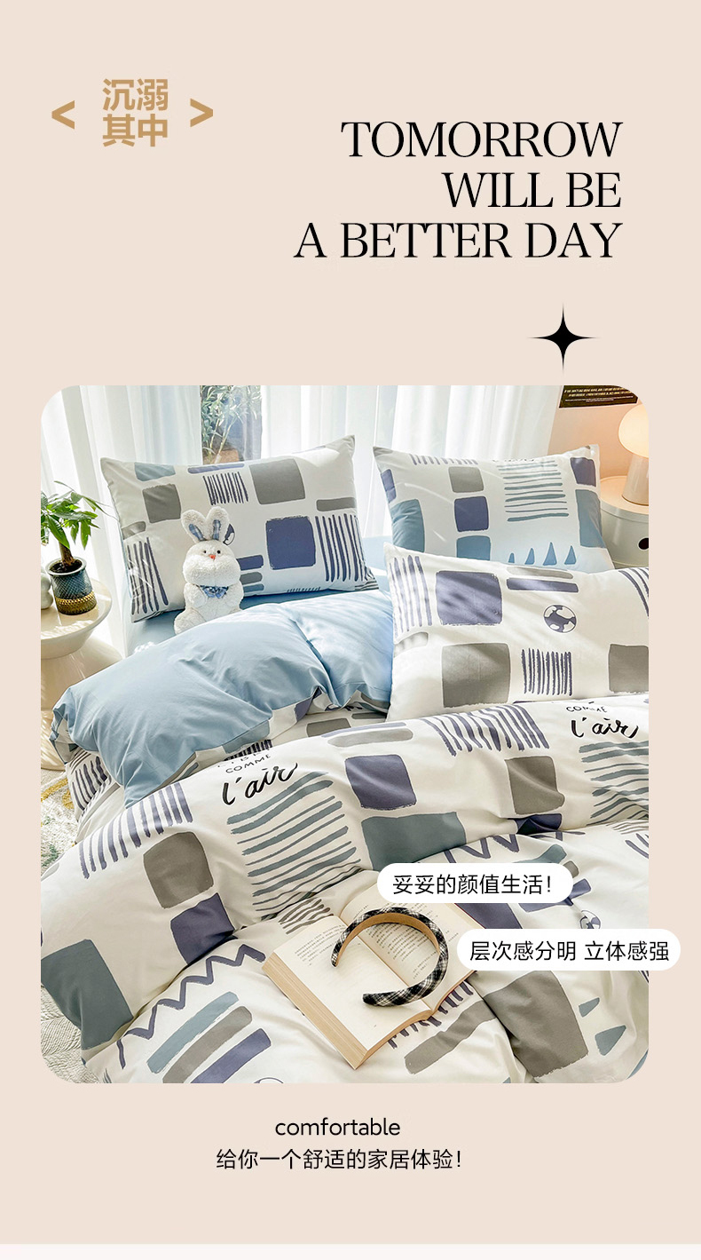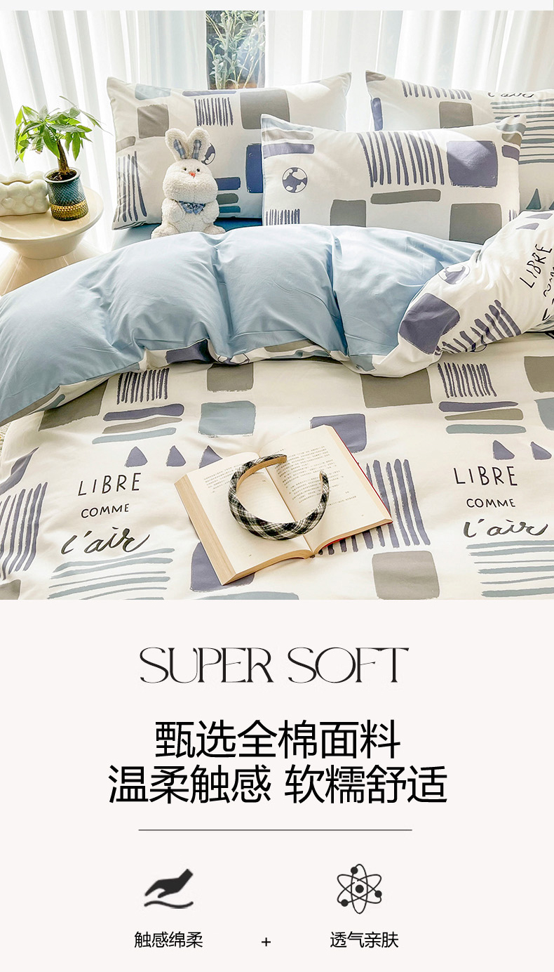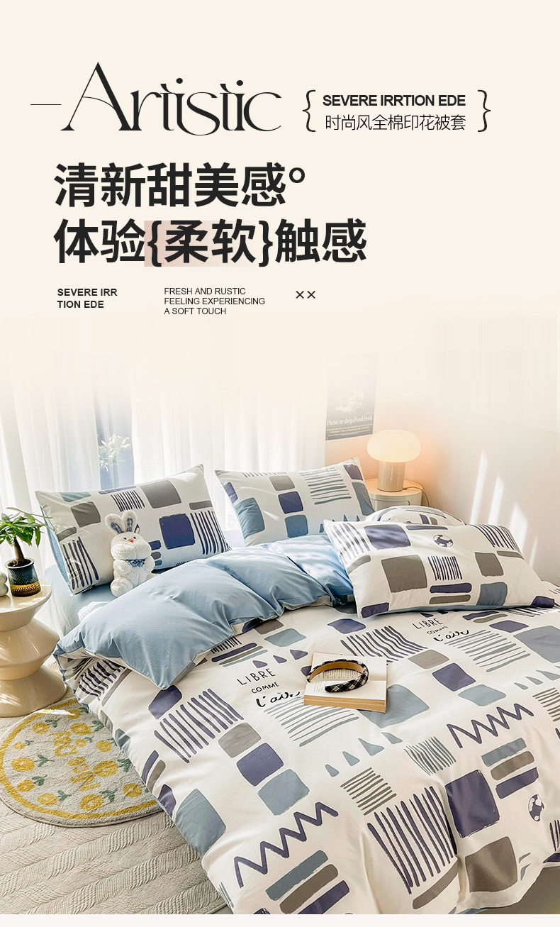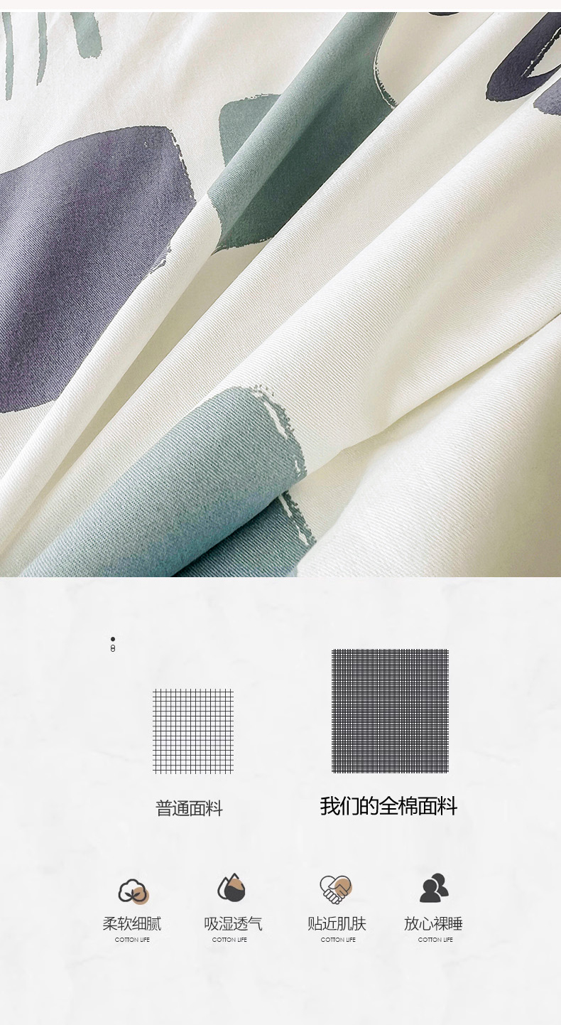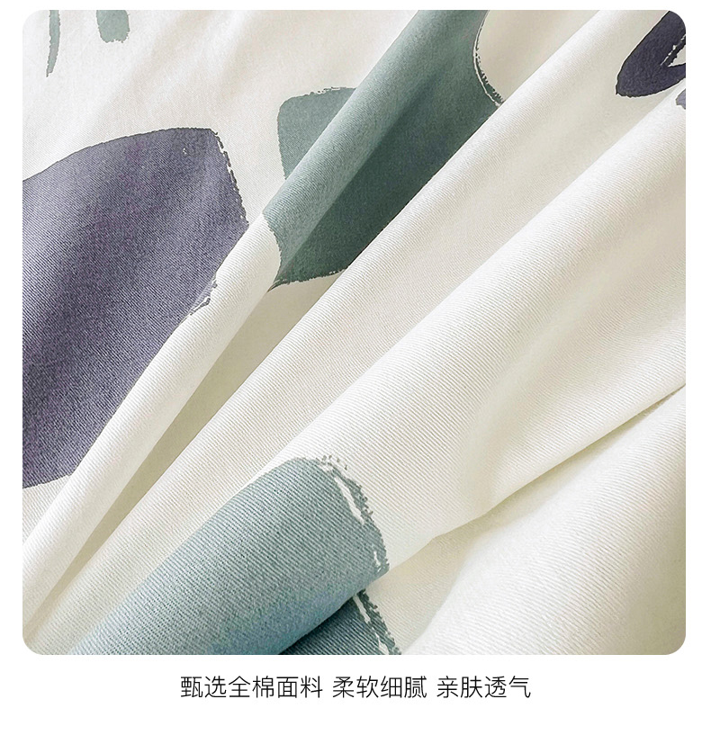 商品名称:倾慕家纺 2024新款时尚风全棉13070亲肤印花系列单被套 海盐薄荷